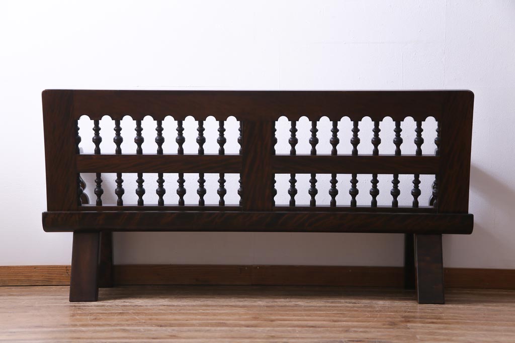 椅子・ベンチ> ベンチ > ビンテージ 松本民芸家具 厚みのある一枚板を座面に使ったスピンドルバックベンチ(長椅子)(定価約85万円)
