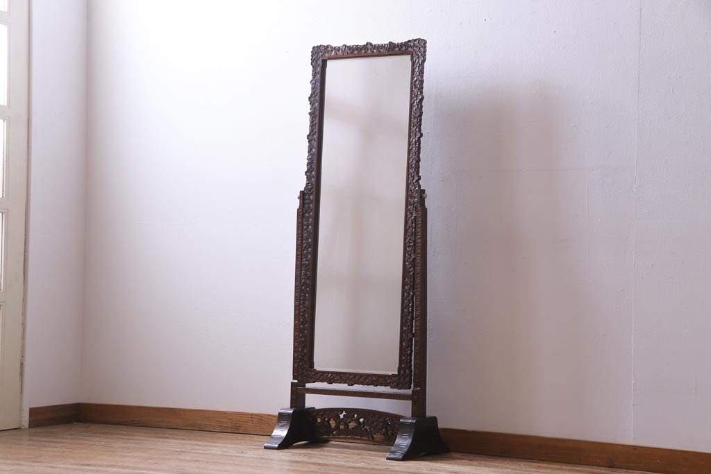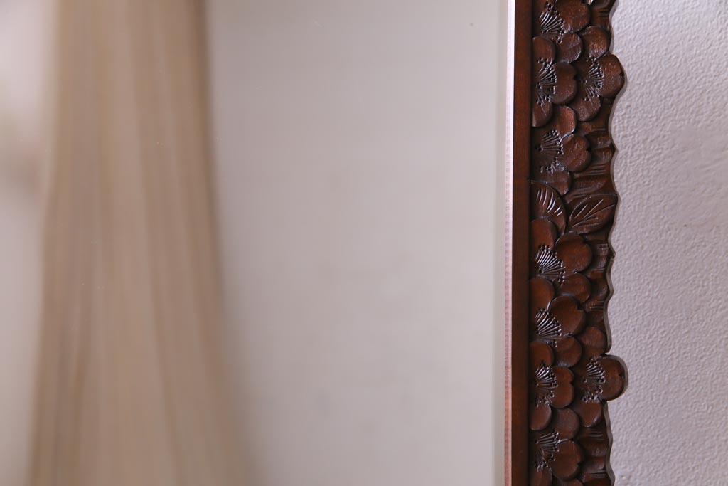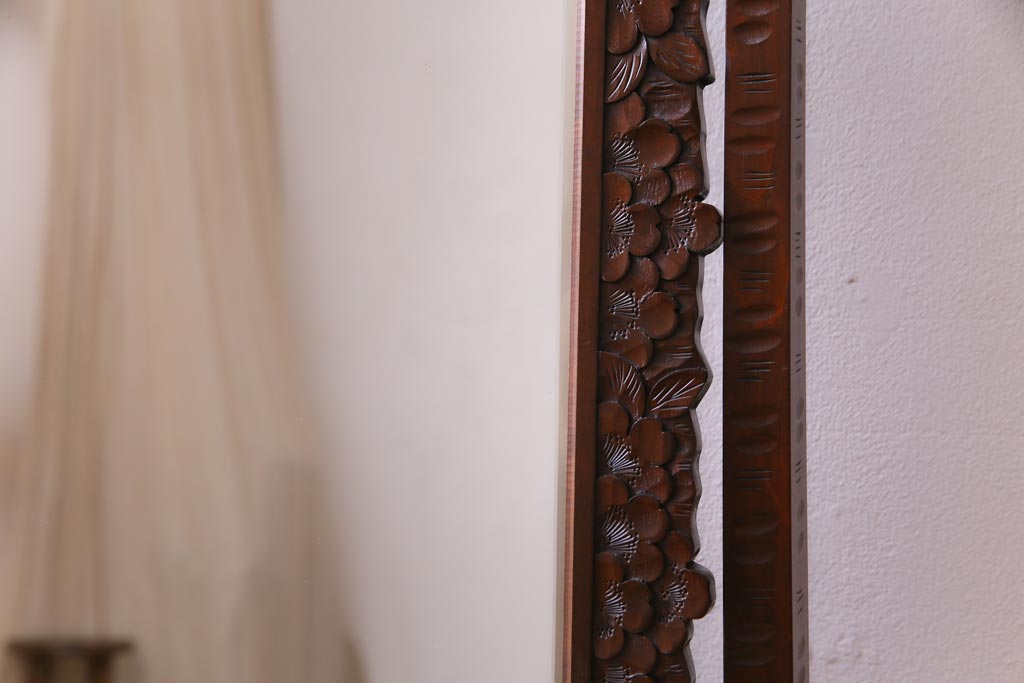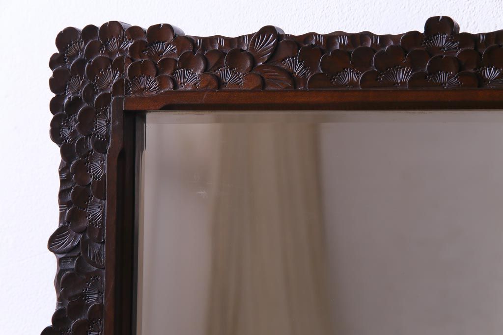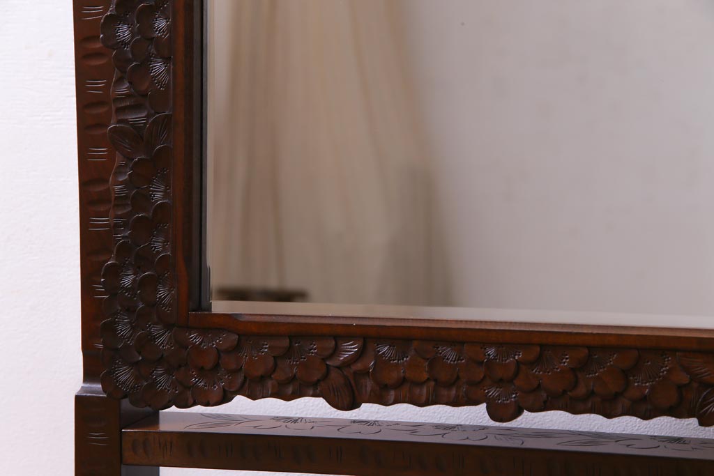 ラフジュ工房> 鏡 > アンティーク雑貨 中古 伝統工芸 軽井沢彫り 繊細な桜の意匠が施された姿見(鏡、ミラー)