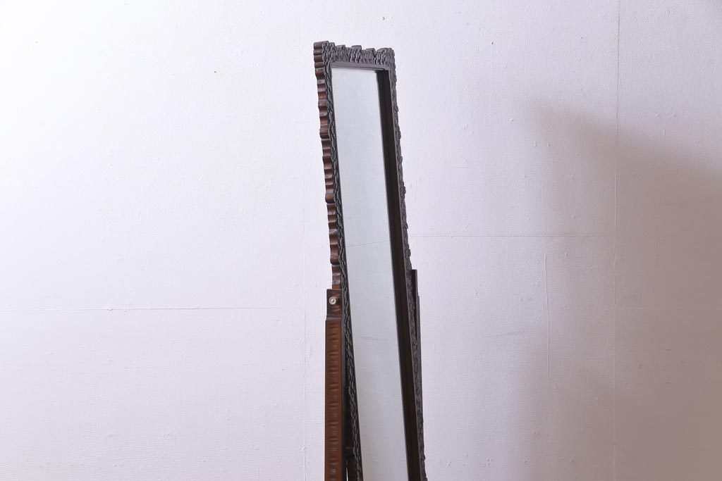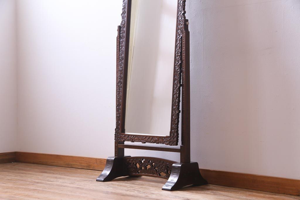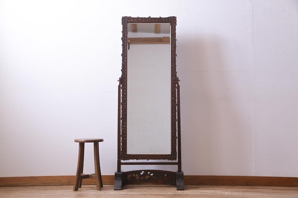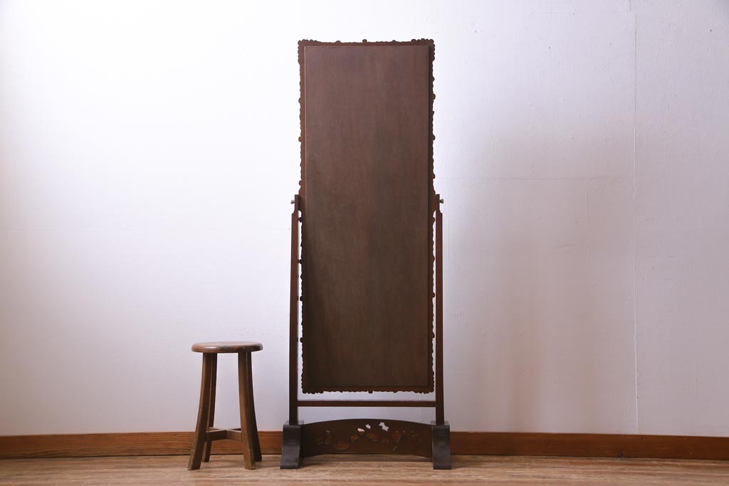 ラフジュ工房> 鏡> 姿見 > アンティーク雑貨 中古 伝統工芸 軽井沢彫り 繊細な桜の意匠が施された姿見(鏡、ミラー)