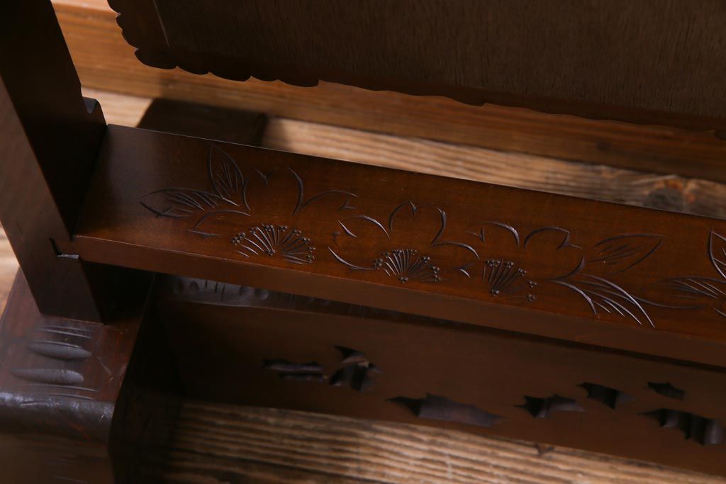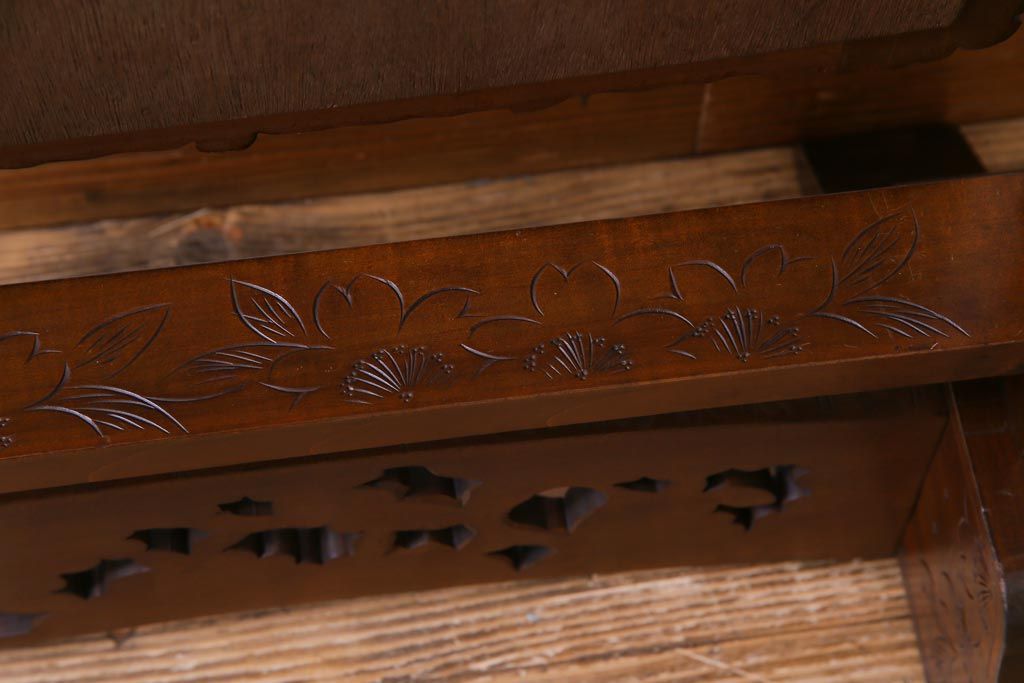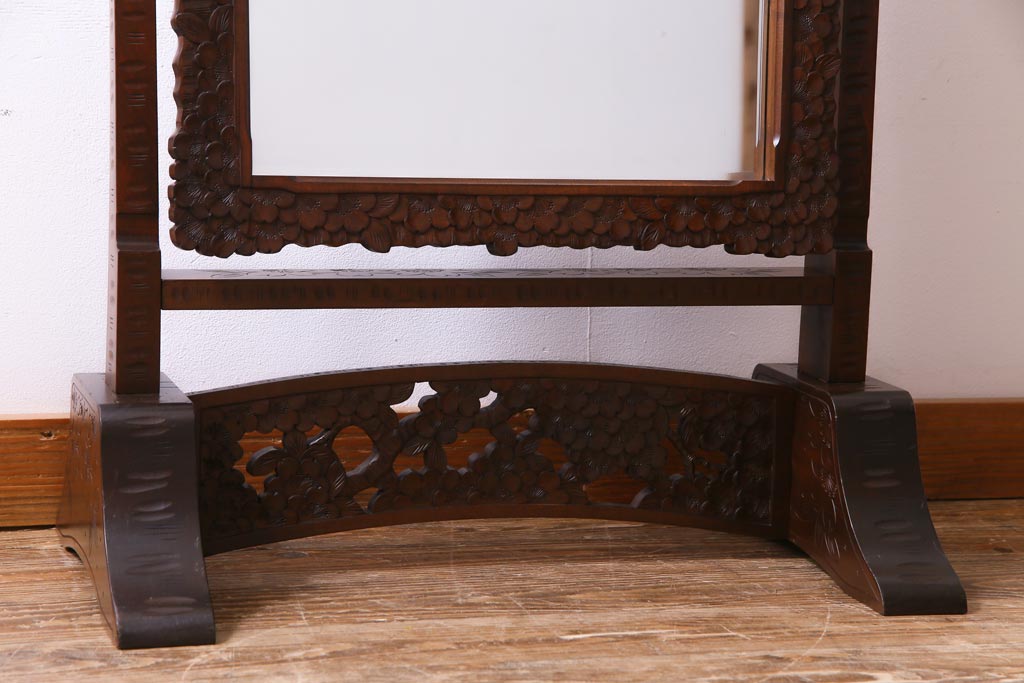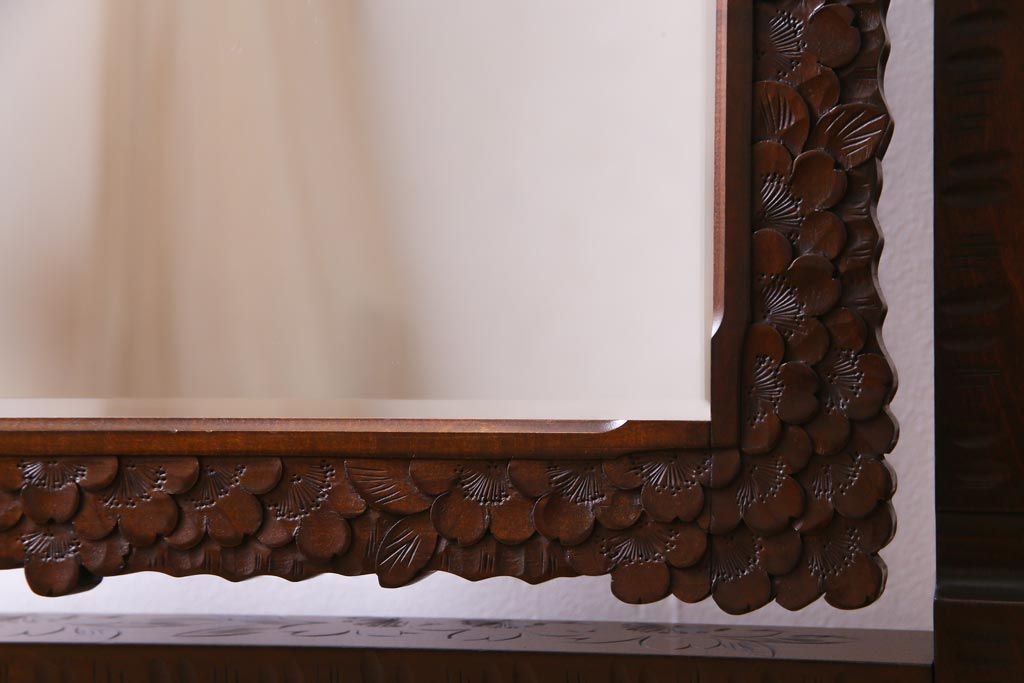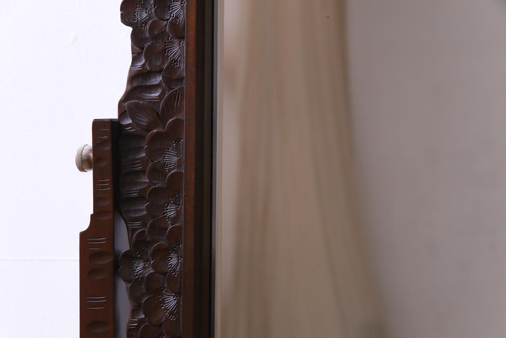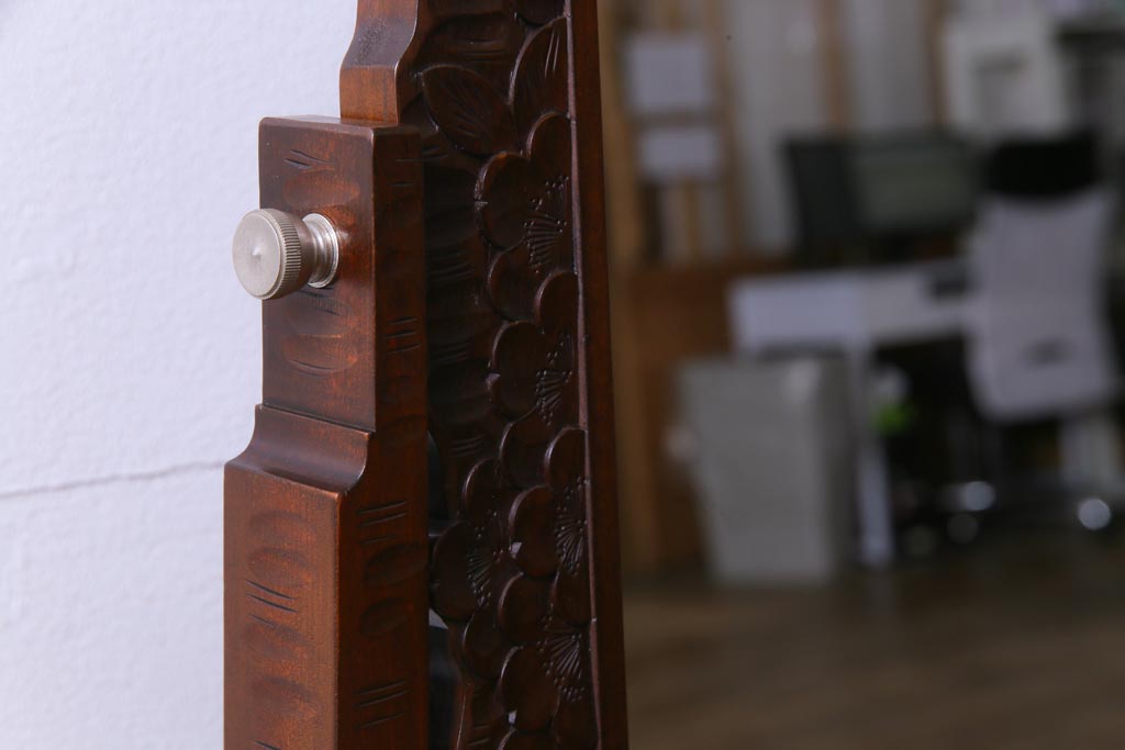 アンティーク雑貨 中古 伝統工芸 軽井沢彫り 繊細な桜の意匠が施された姿見(鏡、ミラー)