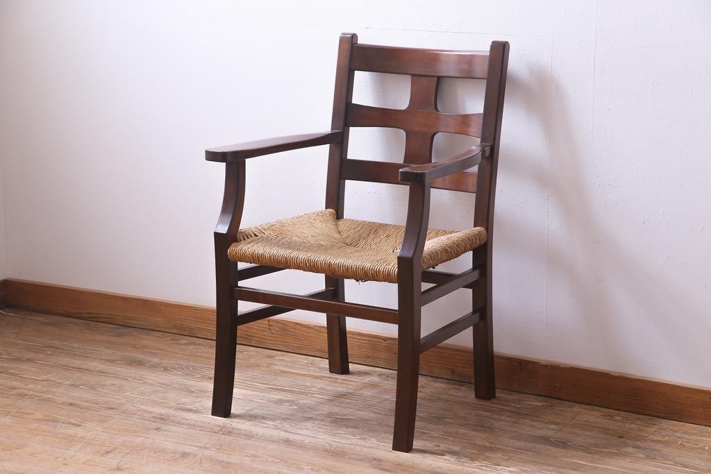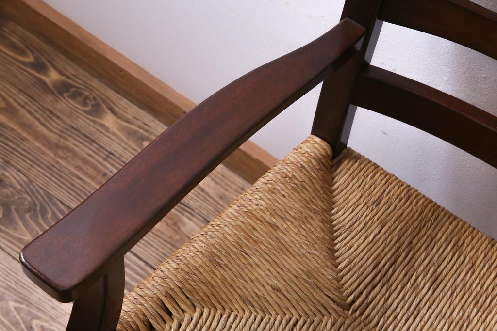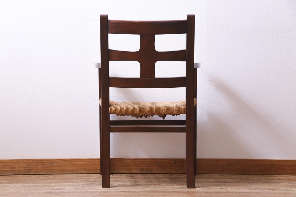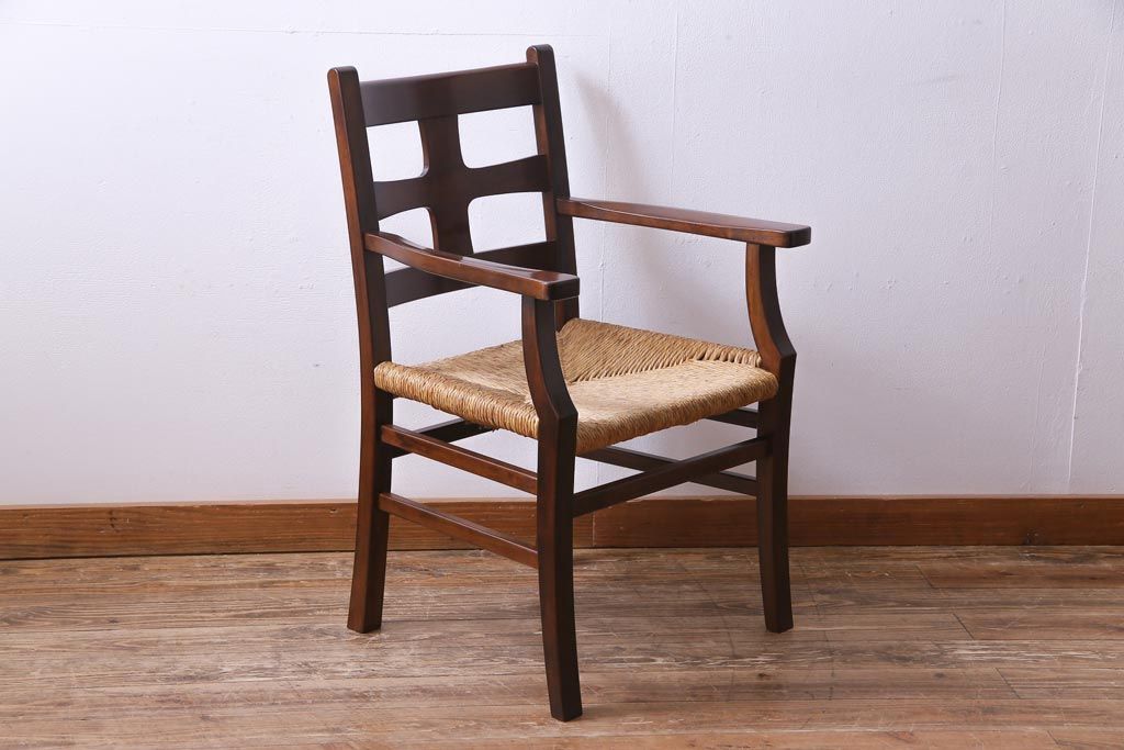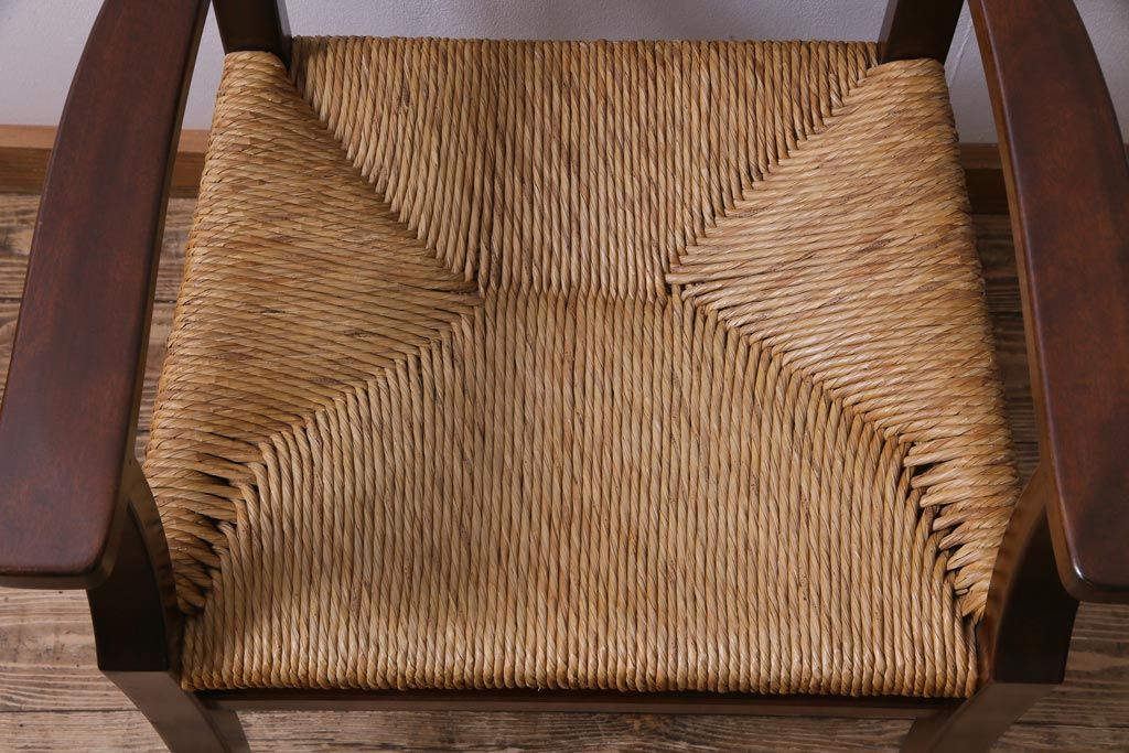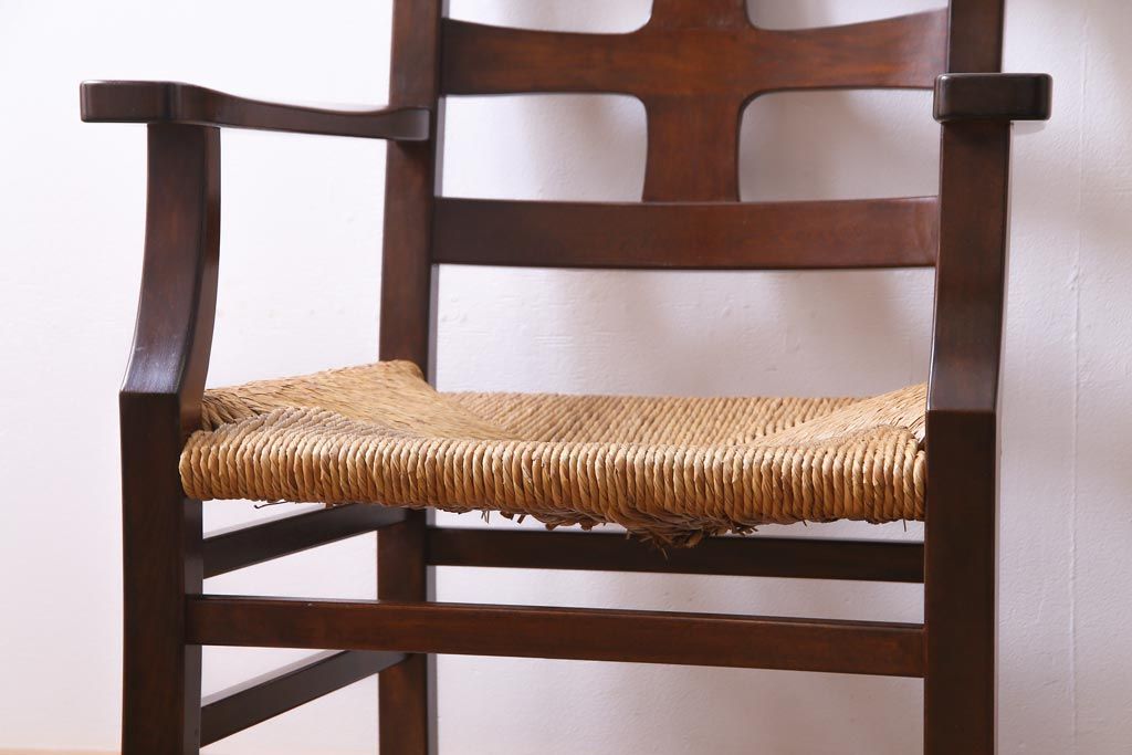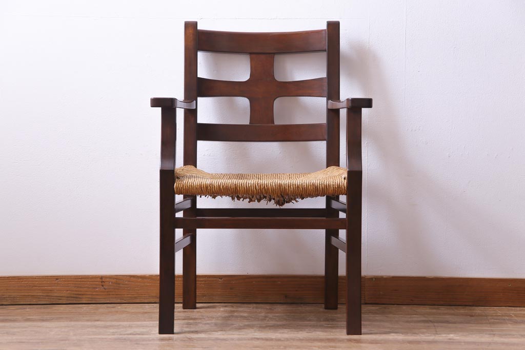 中古美品 松本民芸家具 ラッシ座面が目を引くSP十字アームチェア(ラッシチェア、椅子)(1)