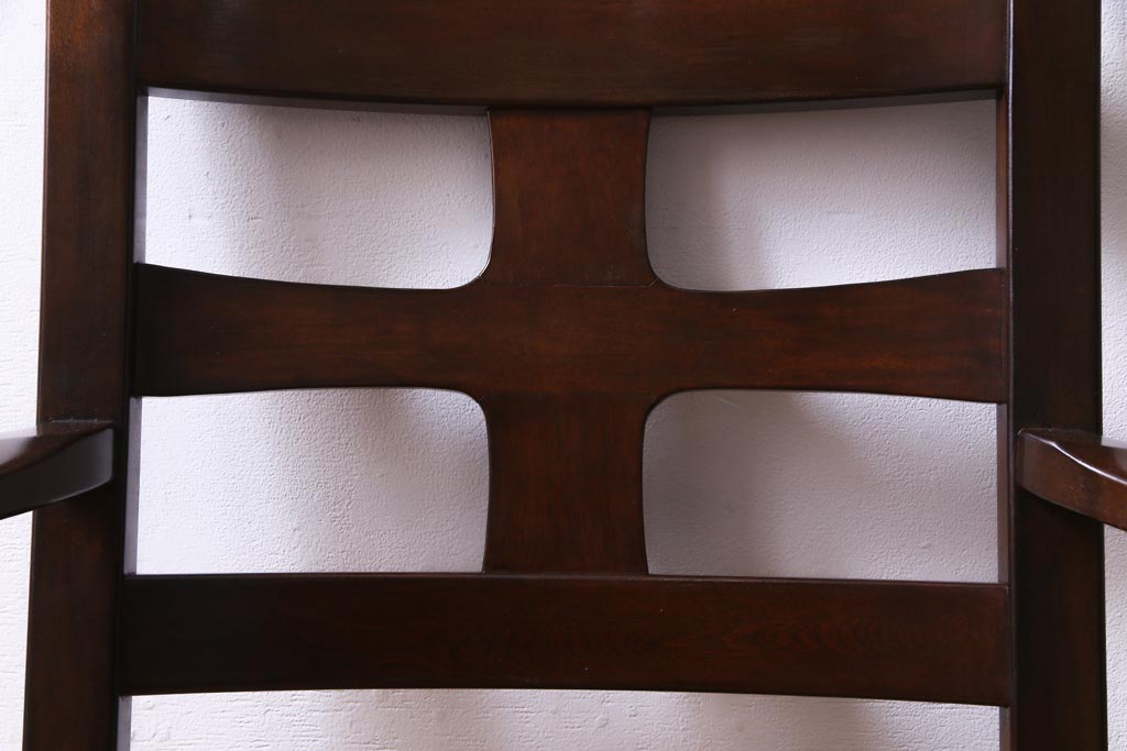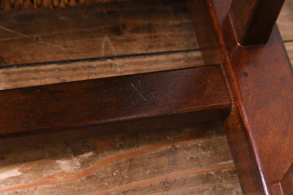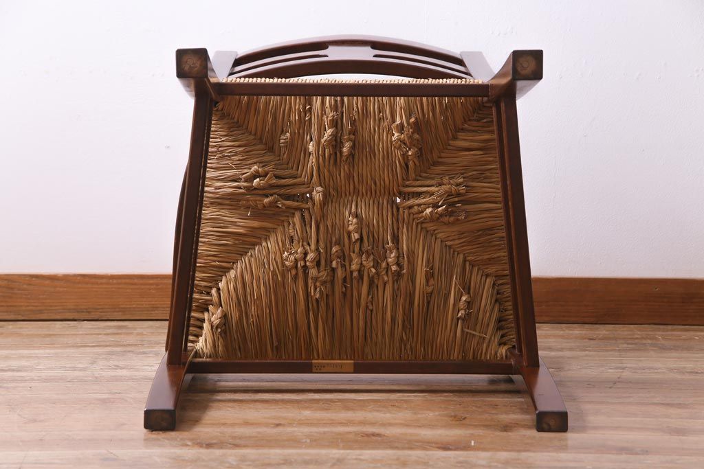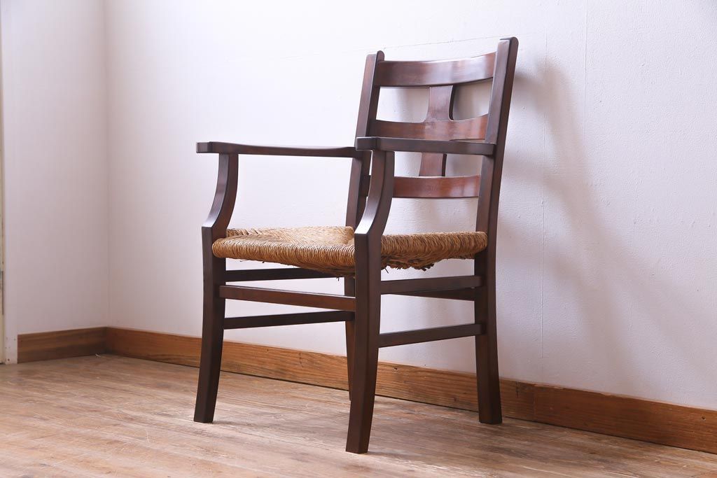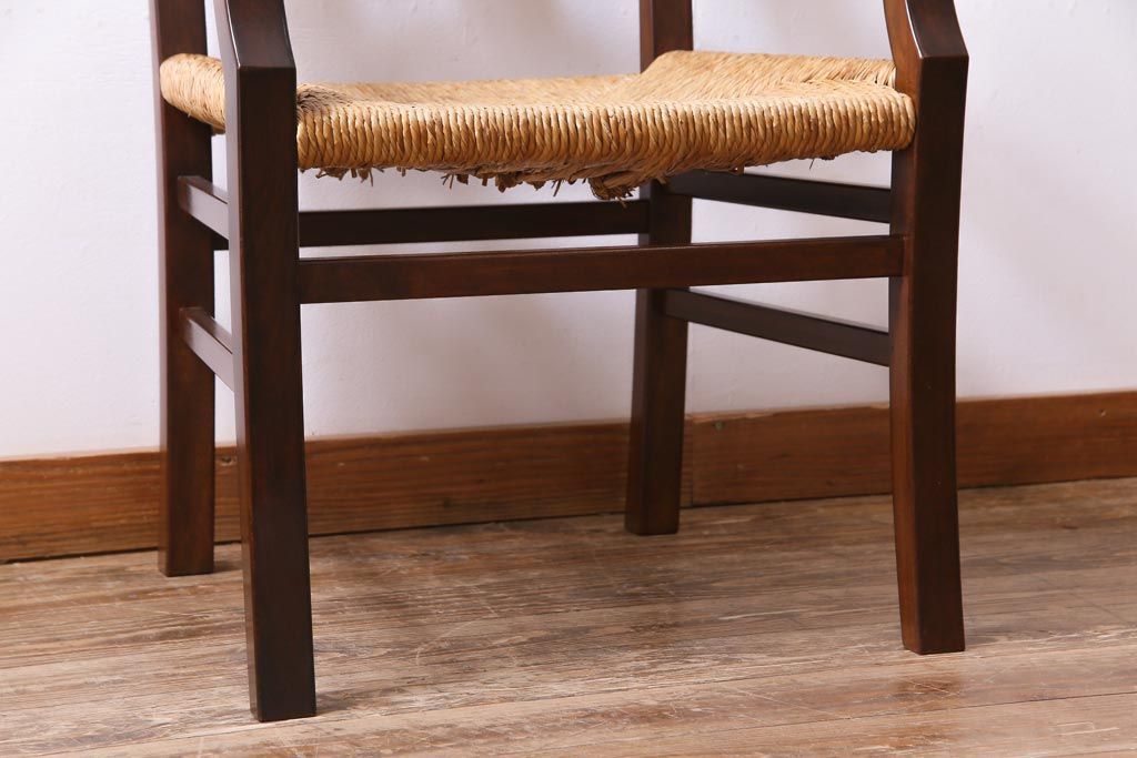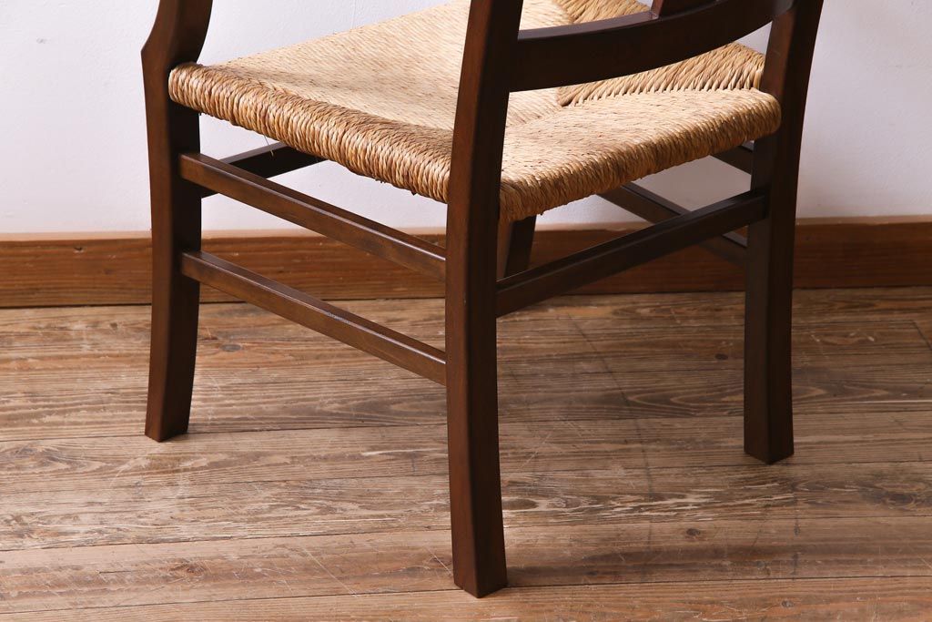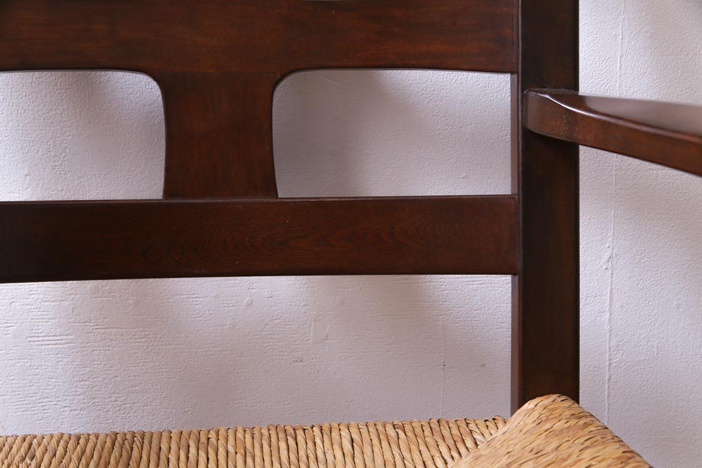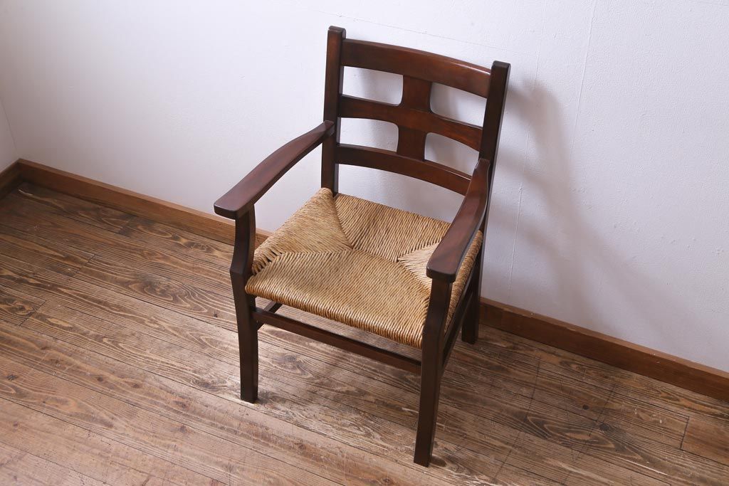 中古美品 松本民芸家具 ラッシ座面が目を引くSP十字アームチェア(ラッシチェア、椅子)(1)