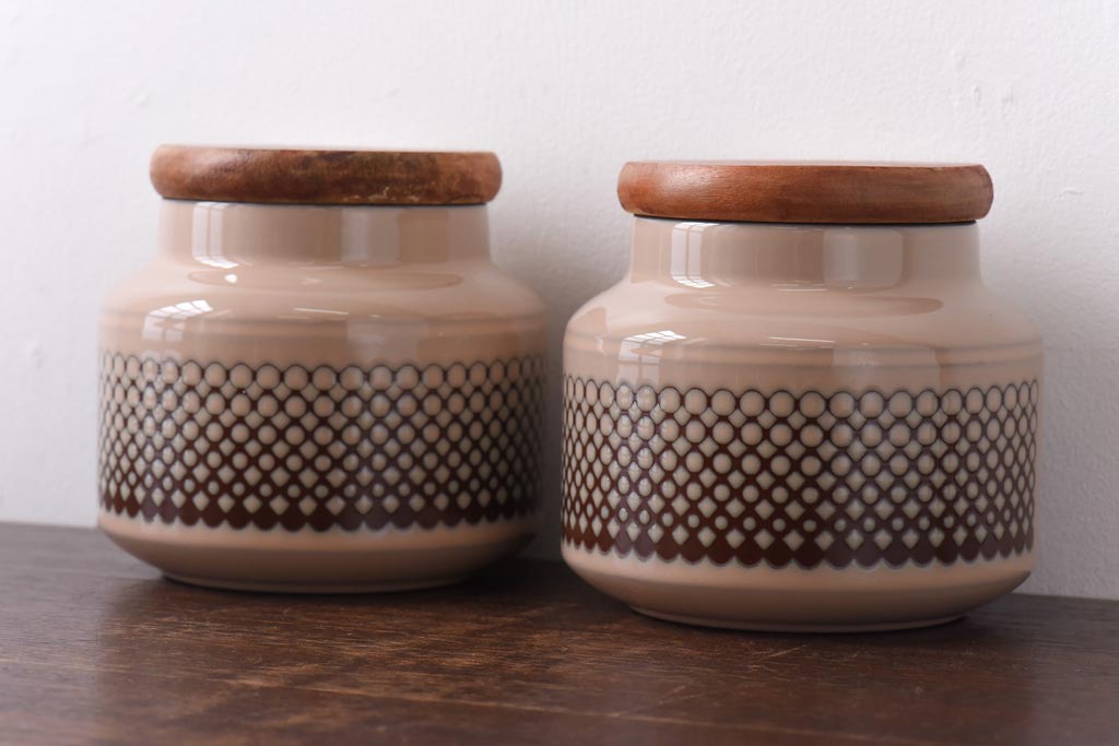 アンティーク雑貨 イギリスビンテージ HORNSEA(ホーンジー) CORAL(コーラル) キャニスター(保存容器、洋食器)2個セット