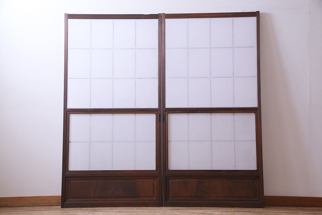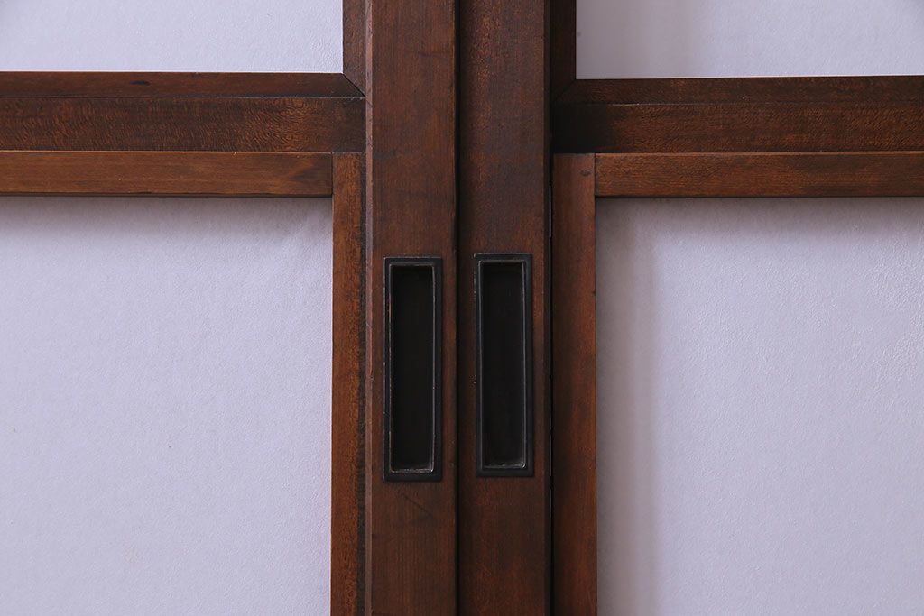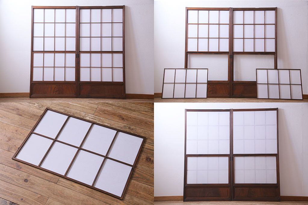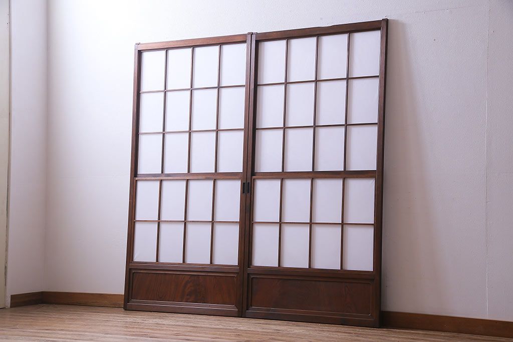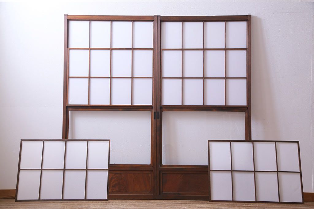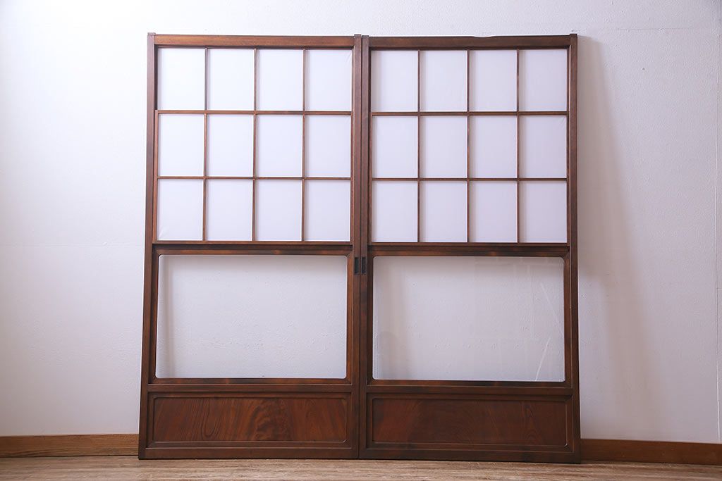 ドア・建具> 2枚・3枚セット > 昭和中期 和の風情あふれる佇まいが魅力の摺り上げ雪見障子戸2枚セット(引き戸、擦り上げ障子戸、擦上障子戸、建具)(1)