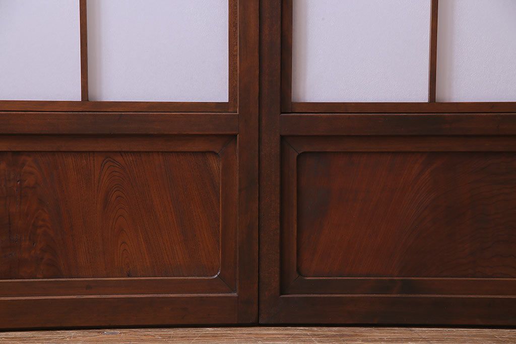 昭和中期 和の風情あふれる佇まいが魅力の摺り上げ雪見障子戸2枚セット(引き戸、擦り上げ障子戸、擦上障子戸、建具)(1)