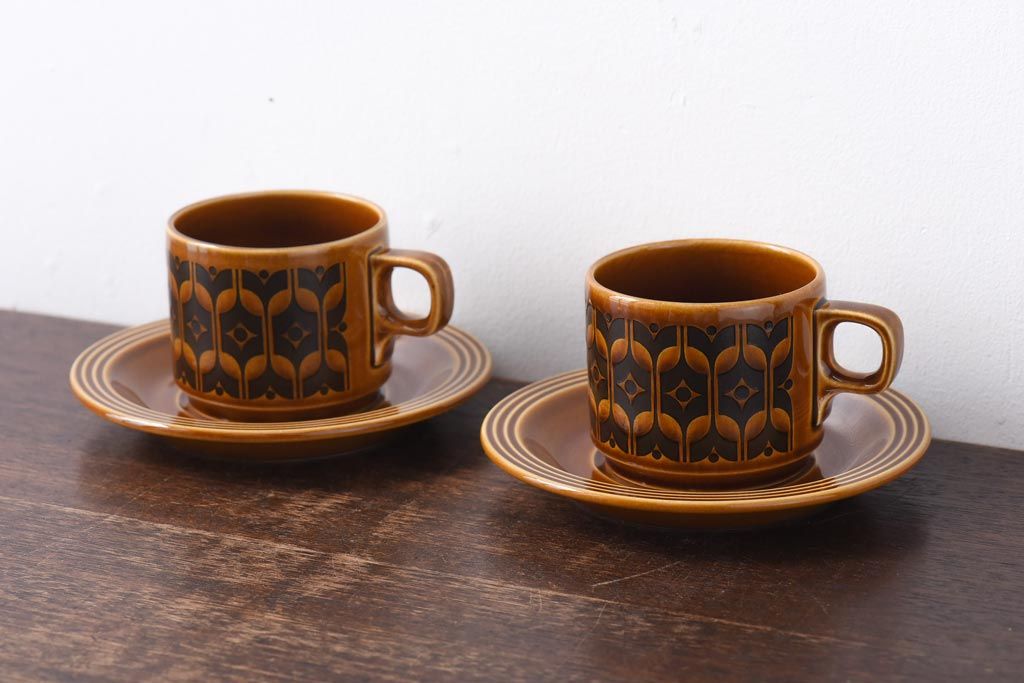 イギリスビンテージ HORNSEA(ホーンジー) HEIRLOOM(エアルーム) カップ&ソーサー2客セット(洋食器)(2)