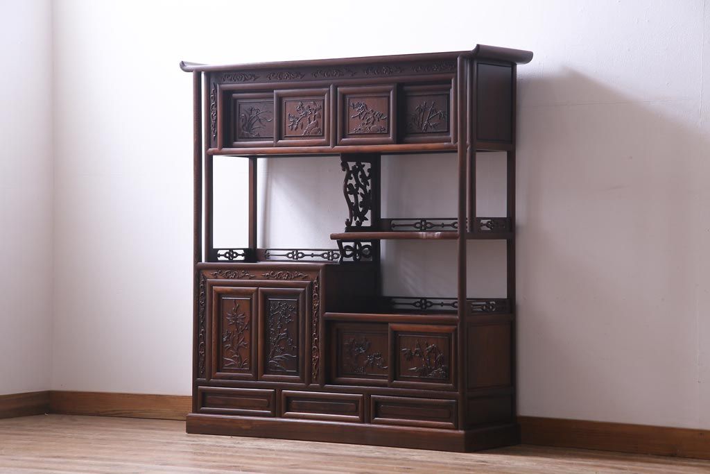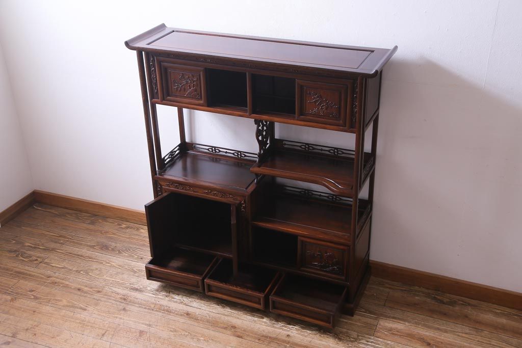 民芸家具 鉄刀木(タガヤサン) 異国情緒あふれる飾り棚(茶棚、収納棚)