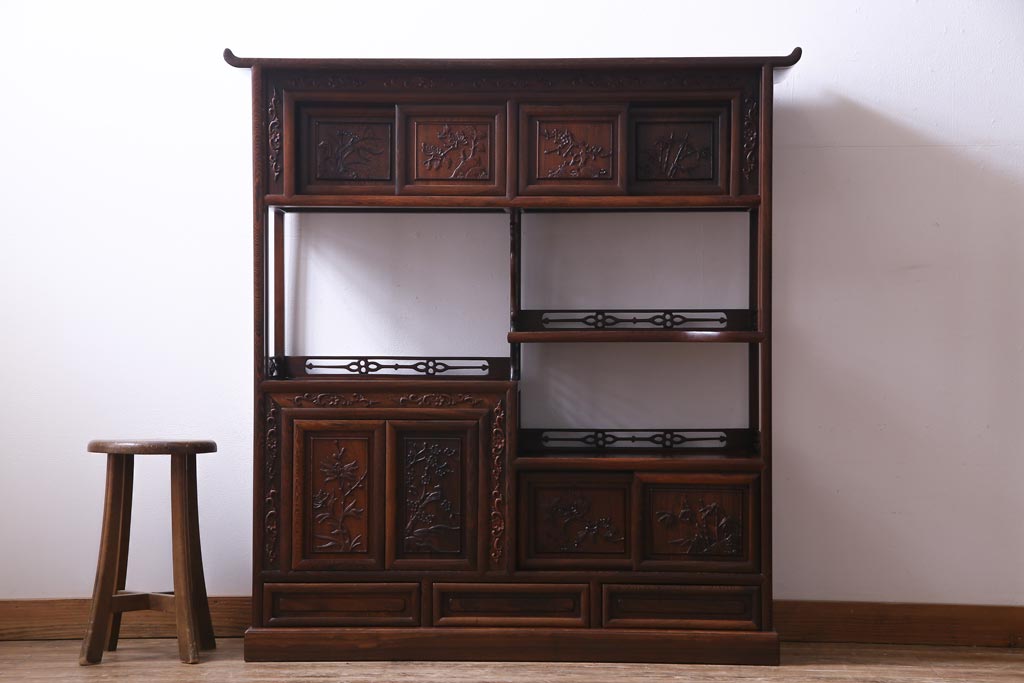 ラフジュ工房> オープンラック・シェルフ> ディスプレイラック > 民芸家具 鉄刀木(タガヤサン) 異国情緒あふれる飾り棚(茶棚、収納棚)