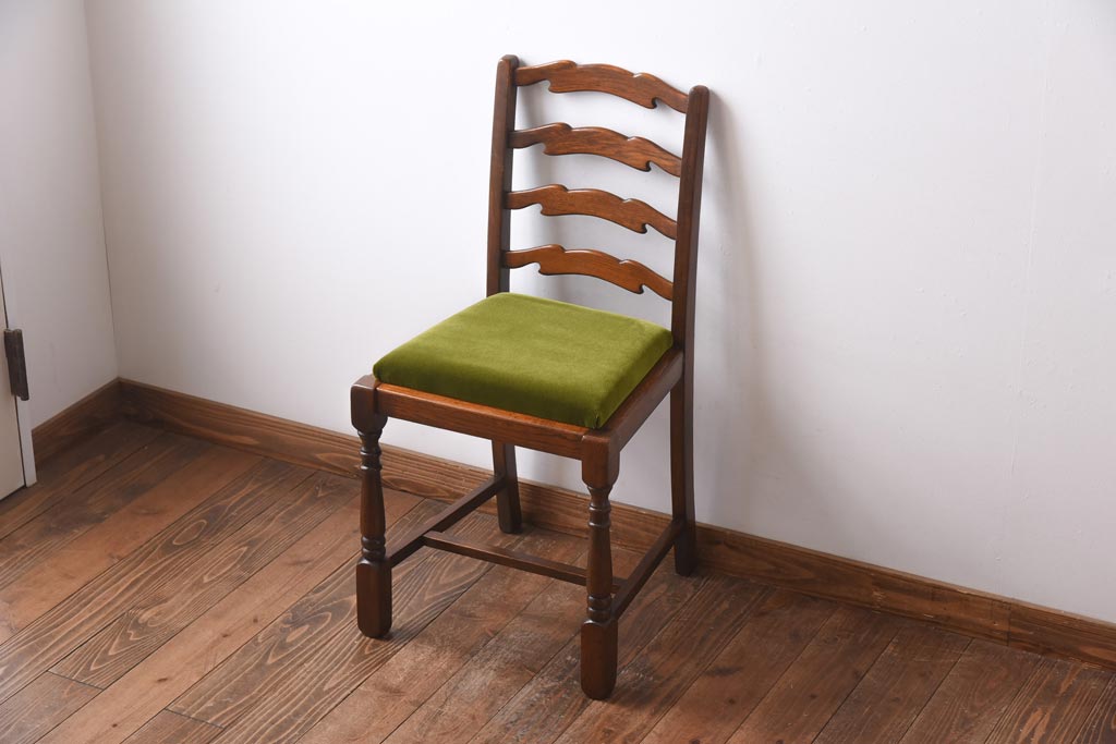 アンティーク家具 イギリスアンティーク 背もたれが特徴的なオーク材製のダイニングチェア(ワークチェア、椅子)(1)