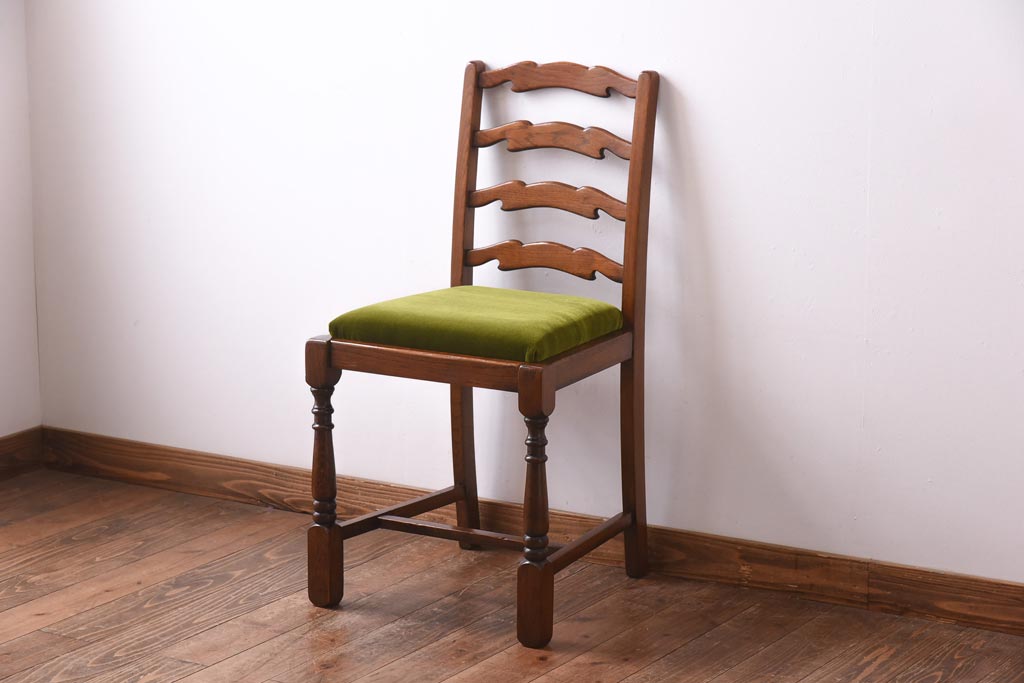 アンティーク家具 イギリスアンティーク 背もたれが特徴的なオーク材製のダイニングチェア(ワークチェア、椅子)(2)