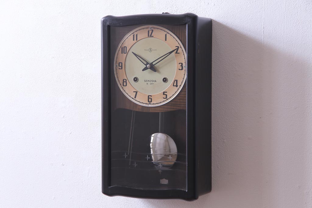 アンティーク雑貨 昭和レトロ SEIKO(セイコー) 14DAY 手巻き式 古い趣が魅力の振り子時計(柱時計・掛け時計)
