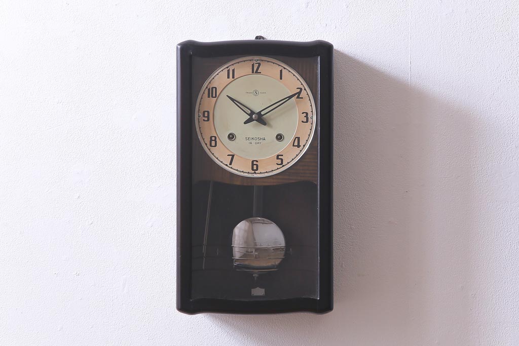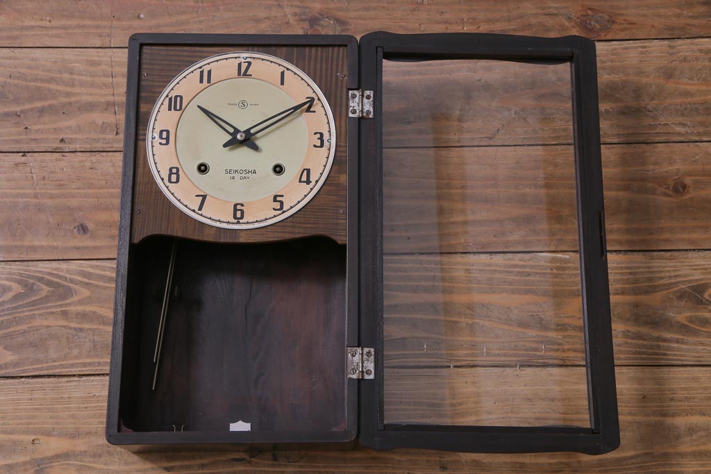 時計> 掛け時計 > アンティーク雑貨 昭和レトロ SEIKO(セイコー) 14DAY 手巻き式 古い趣が魅力の振り子時計(柱時計・掛け時計)