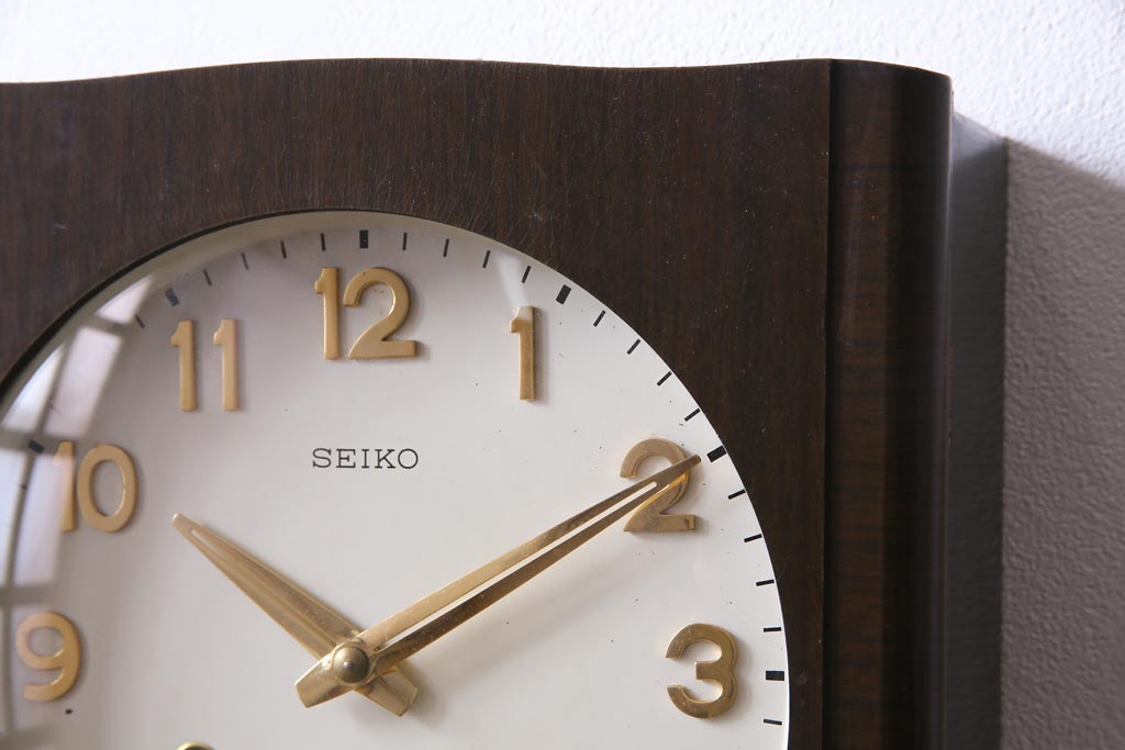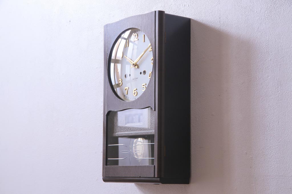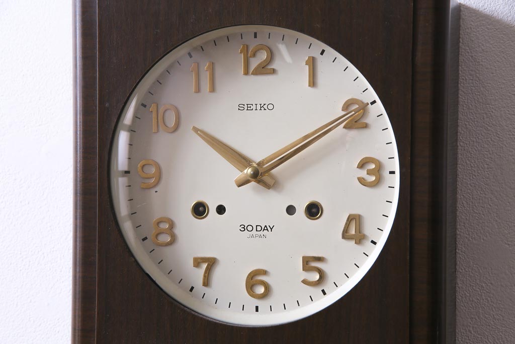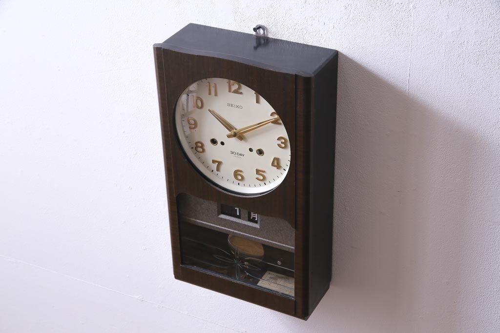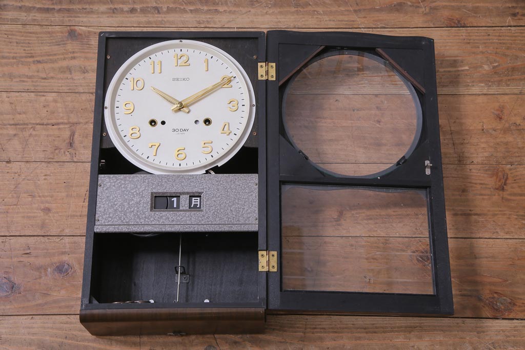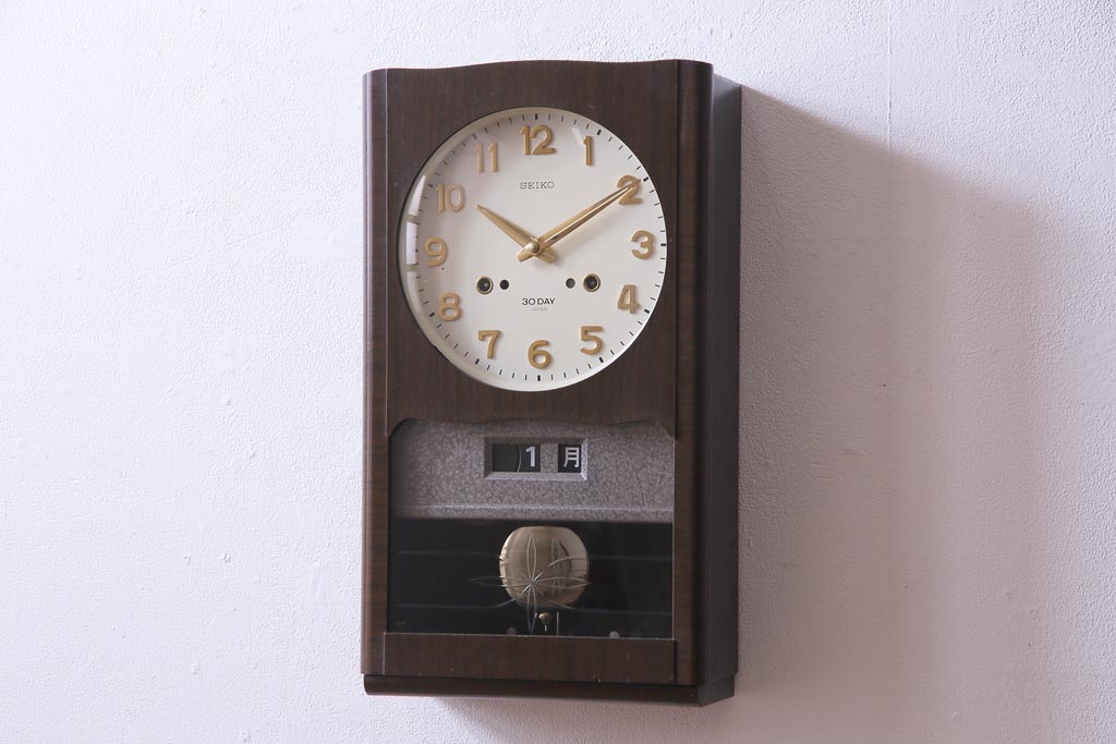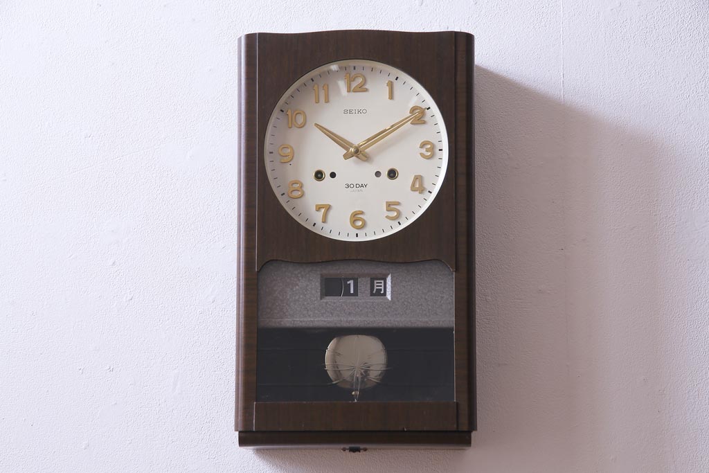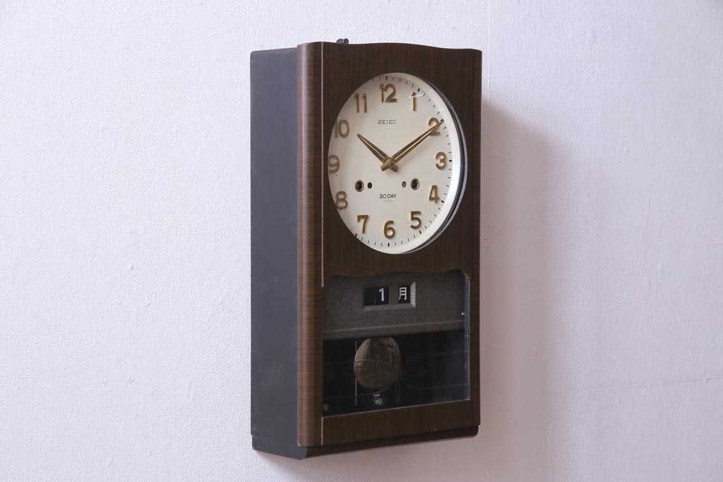 アンティーク雑貨 昭和レトロ SEIKO(セイコー)製 4PC 手巻き式振り子時計 1ヵ月巻掛時計(柱時計、壁掛け時計)