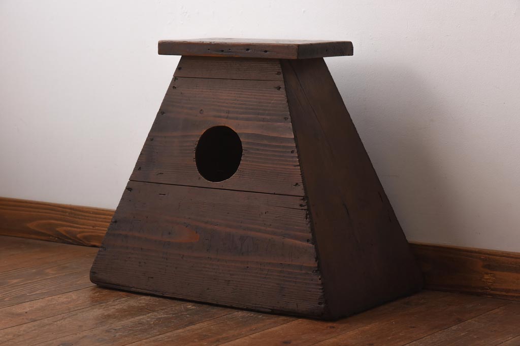 アンティーク雑貨 古民具 古い木の質感が魅力の踏み台(飾り台、花台)(1)
