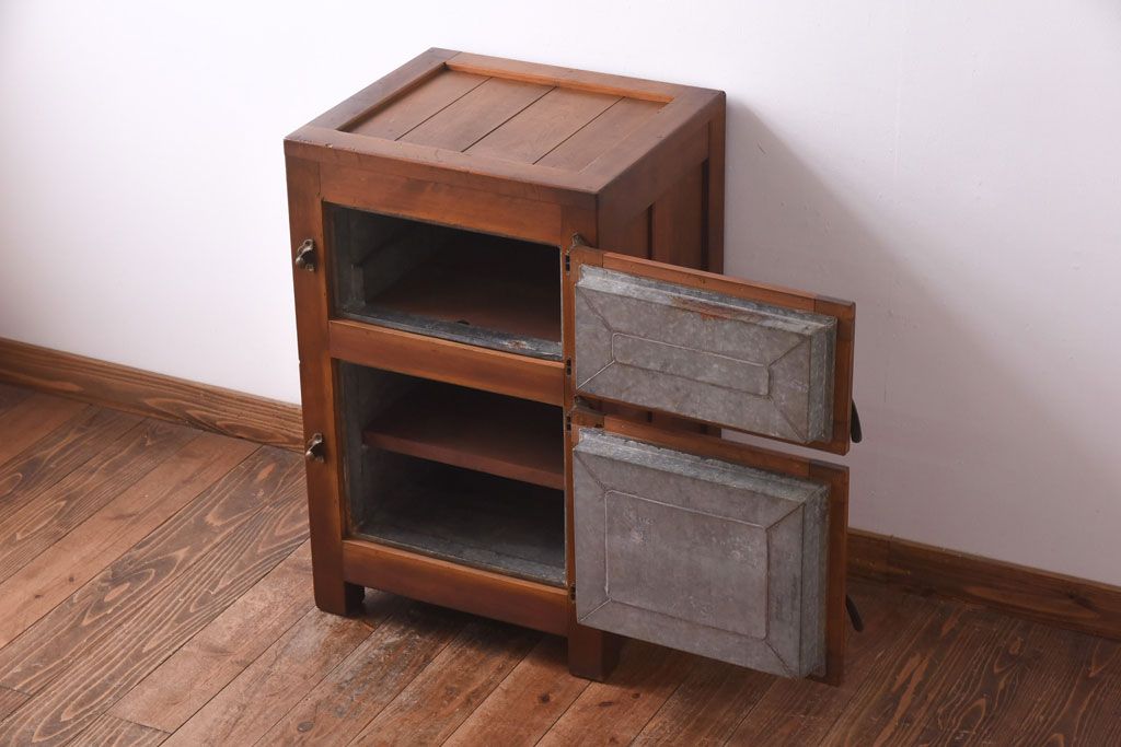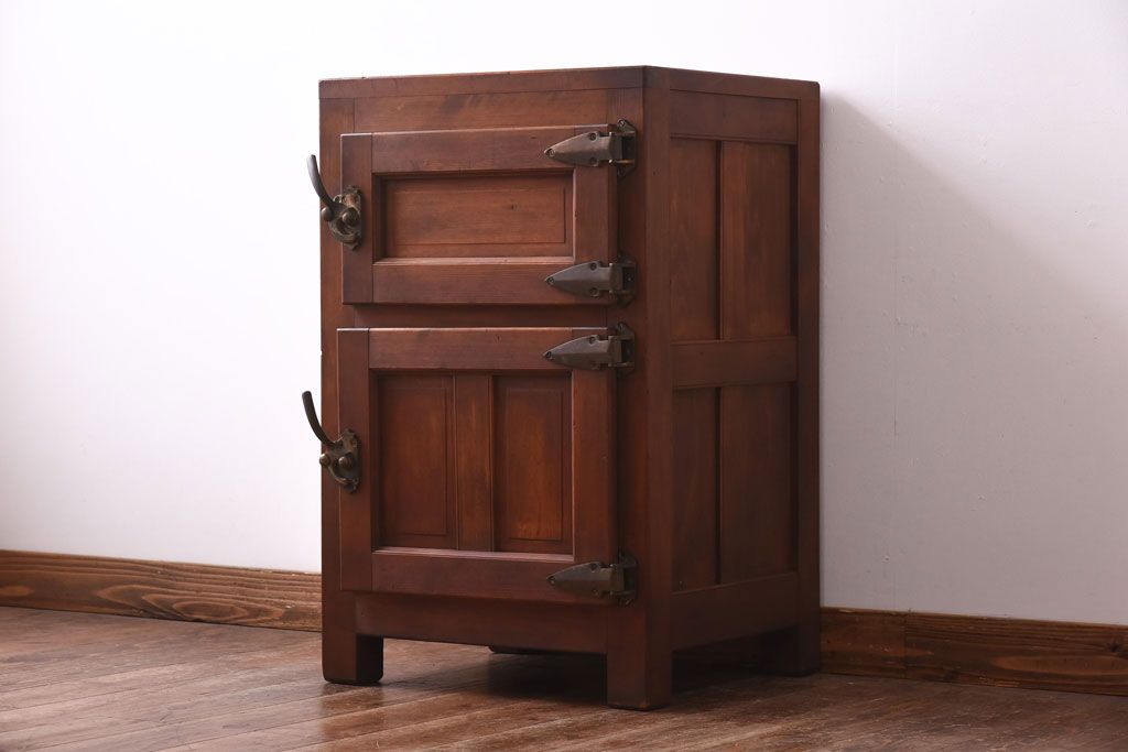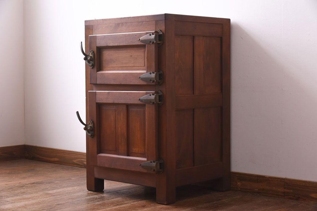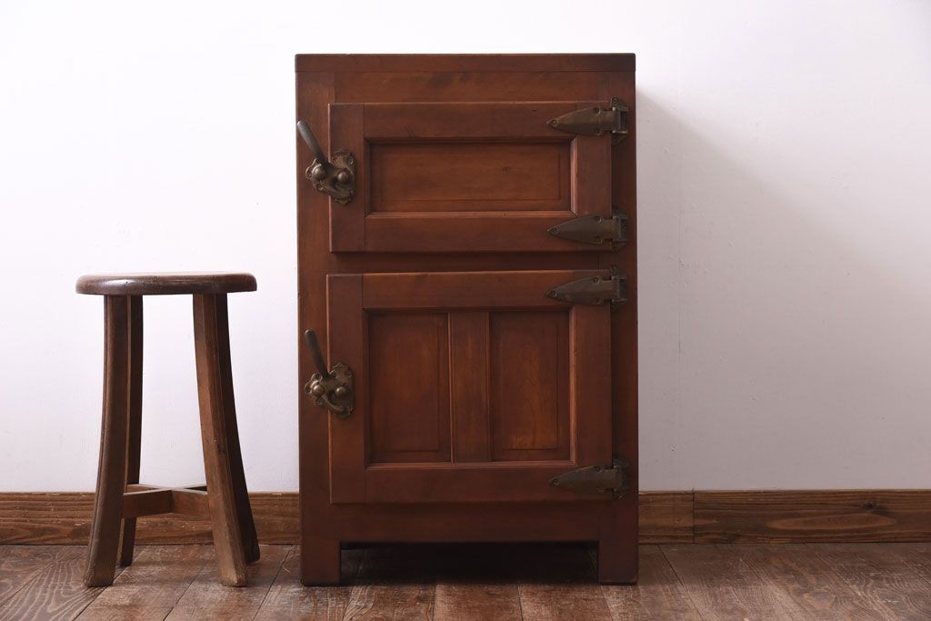 レトロ家具 昭和レトロ リメイク 収納できる小振りな木製冷蔵庫(収納棚、ディスプレイ)