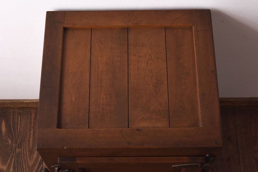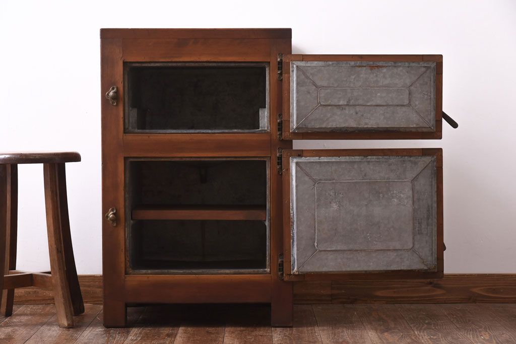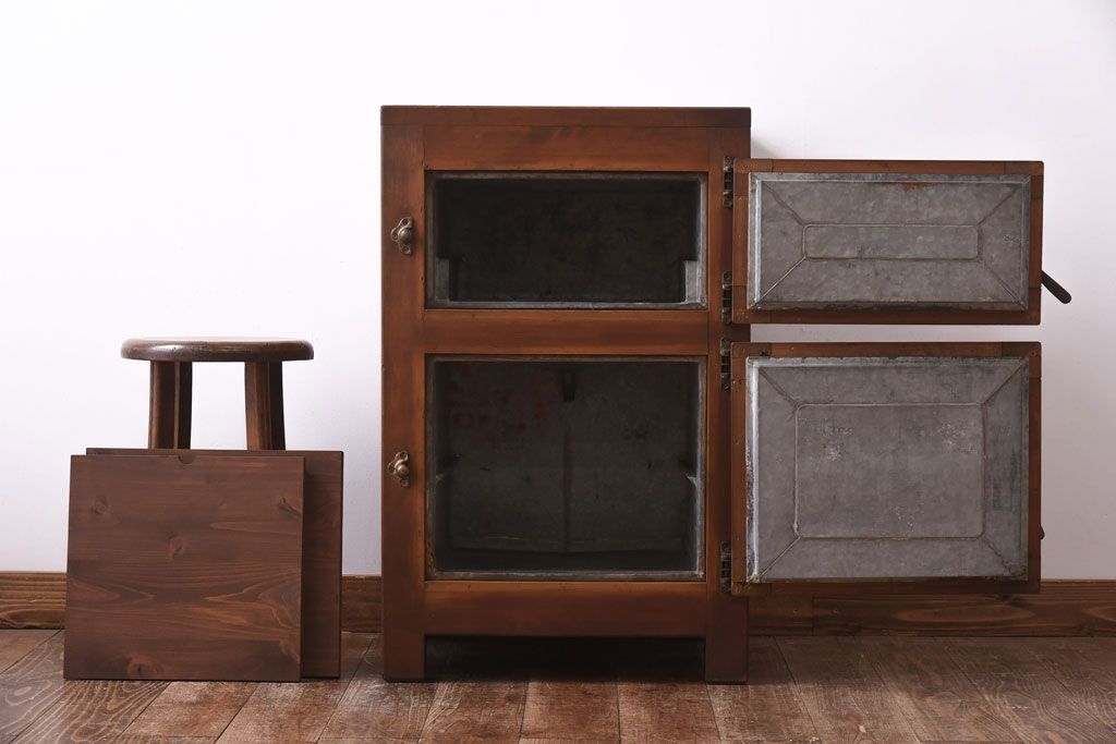 ラフジュ工房> 古家具 > レトロ家具 昭和レトロ リメイク 収納できる小振りな木製冷蔵庫(収納棚、ディスプレイ)