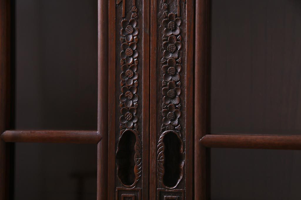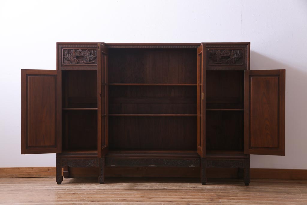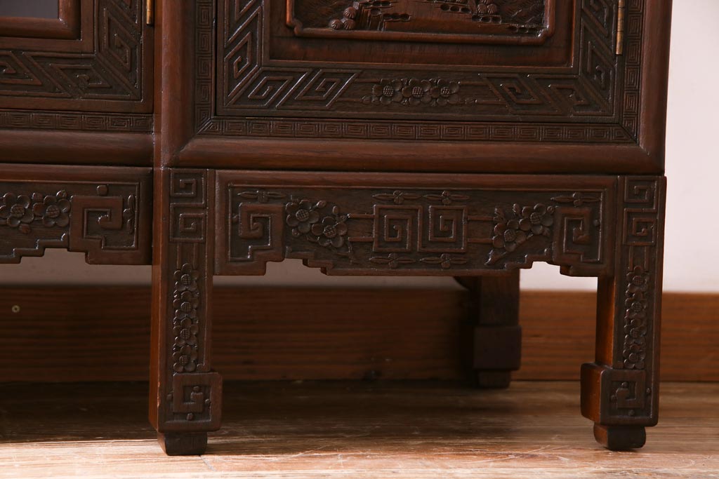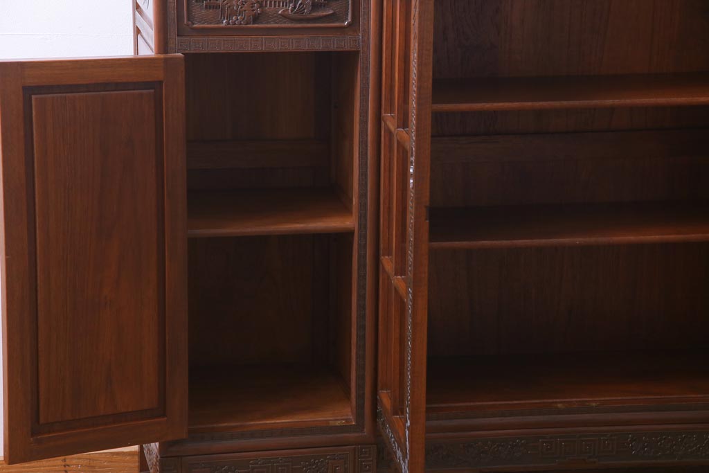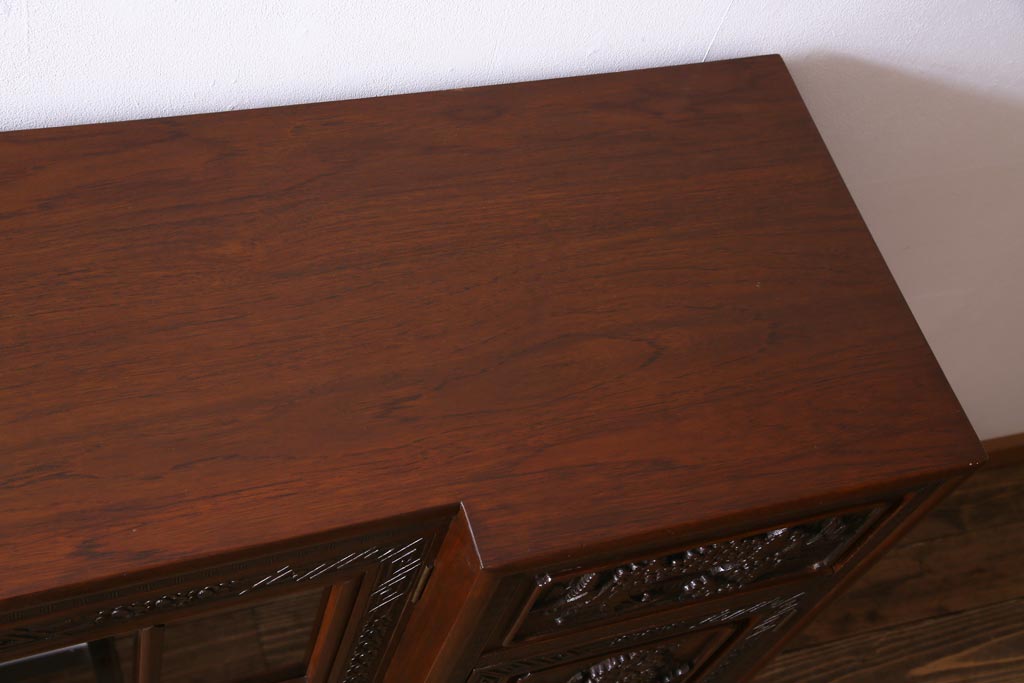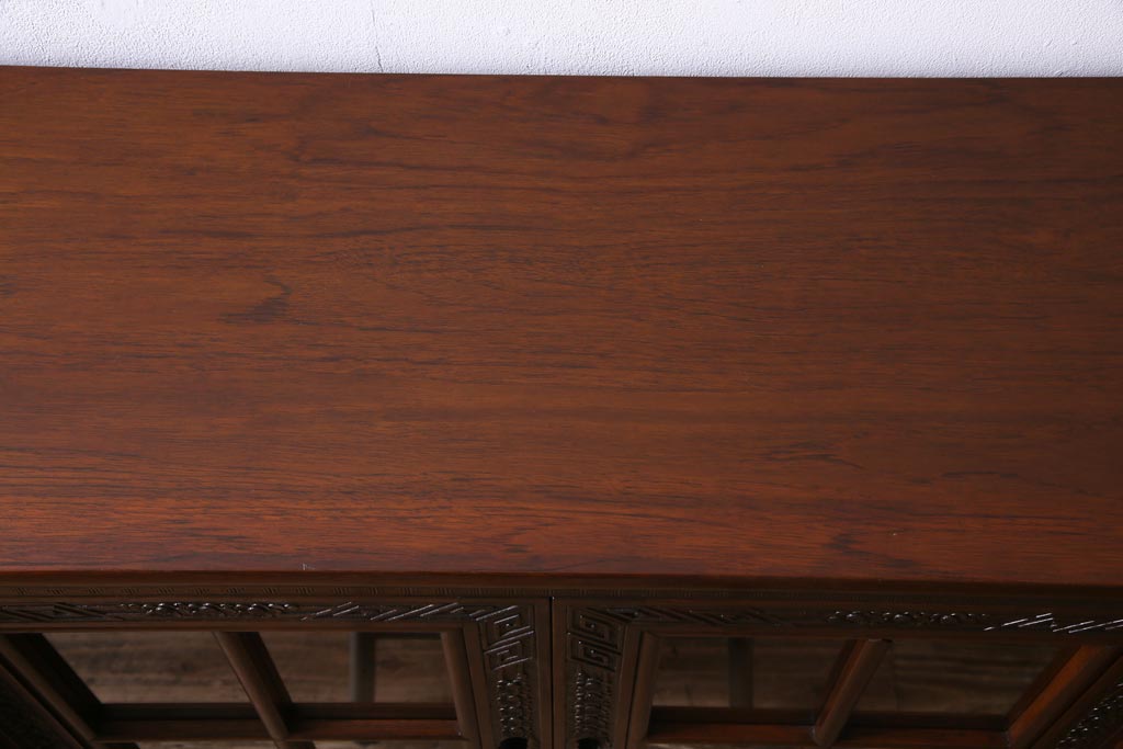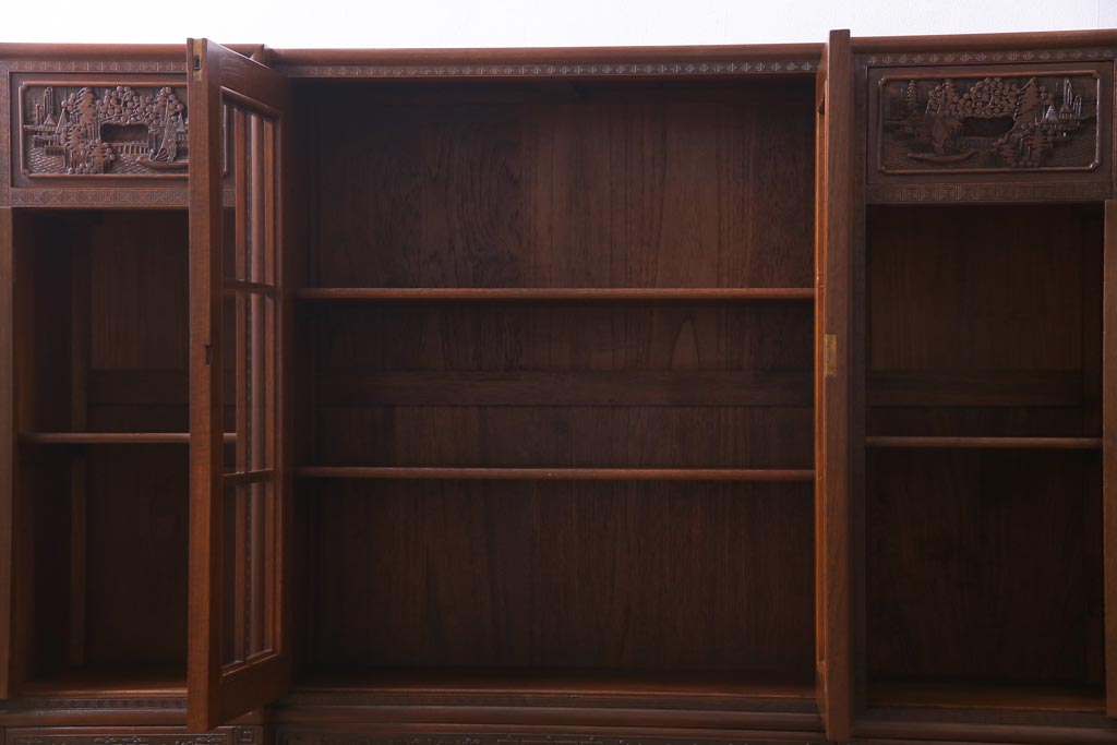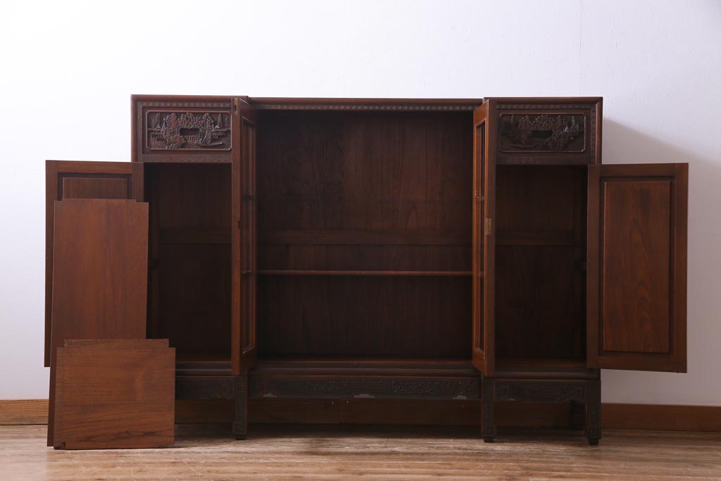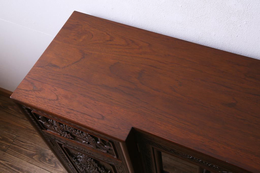 中古 クルミ材 手彫りの豪華な意匠が存在感を放つサイドボード(キャビネット、収納棚)