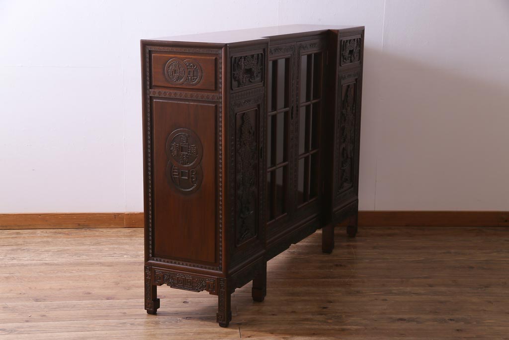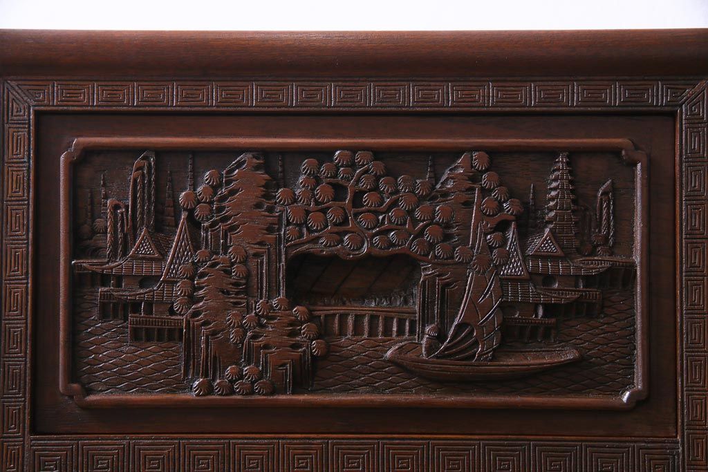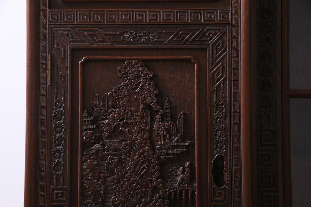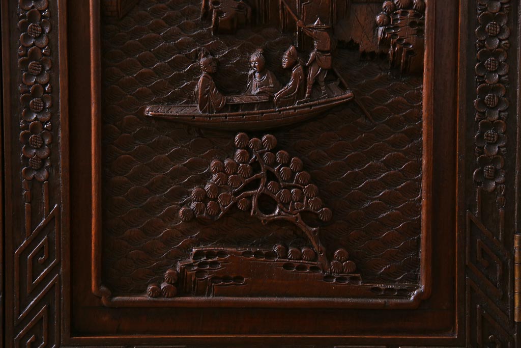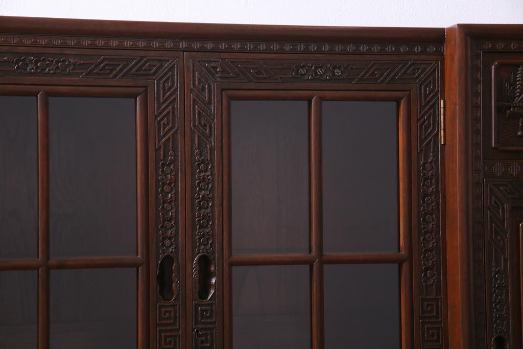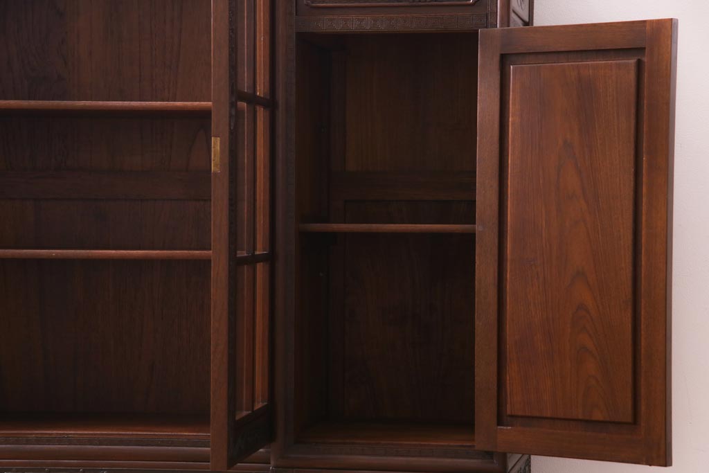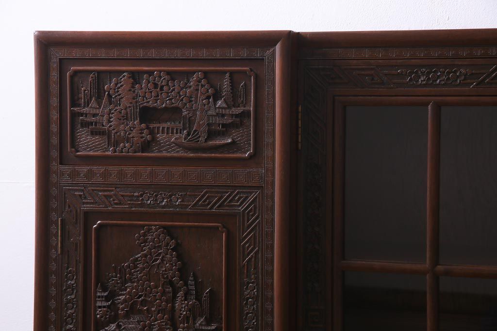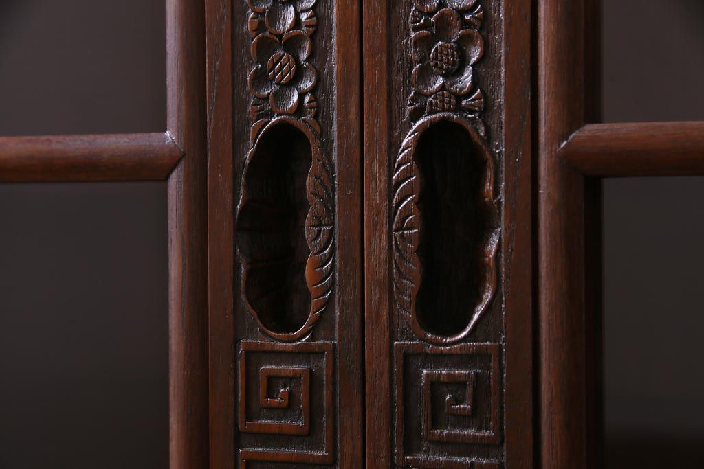 中古 クルミ材 手彫りの豪華な意匠が存在感を放つサイドボード(キャビネット、収納棚)