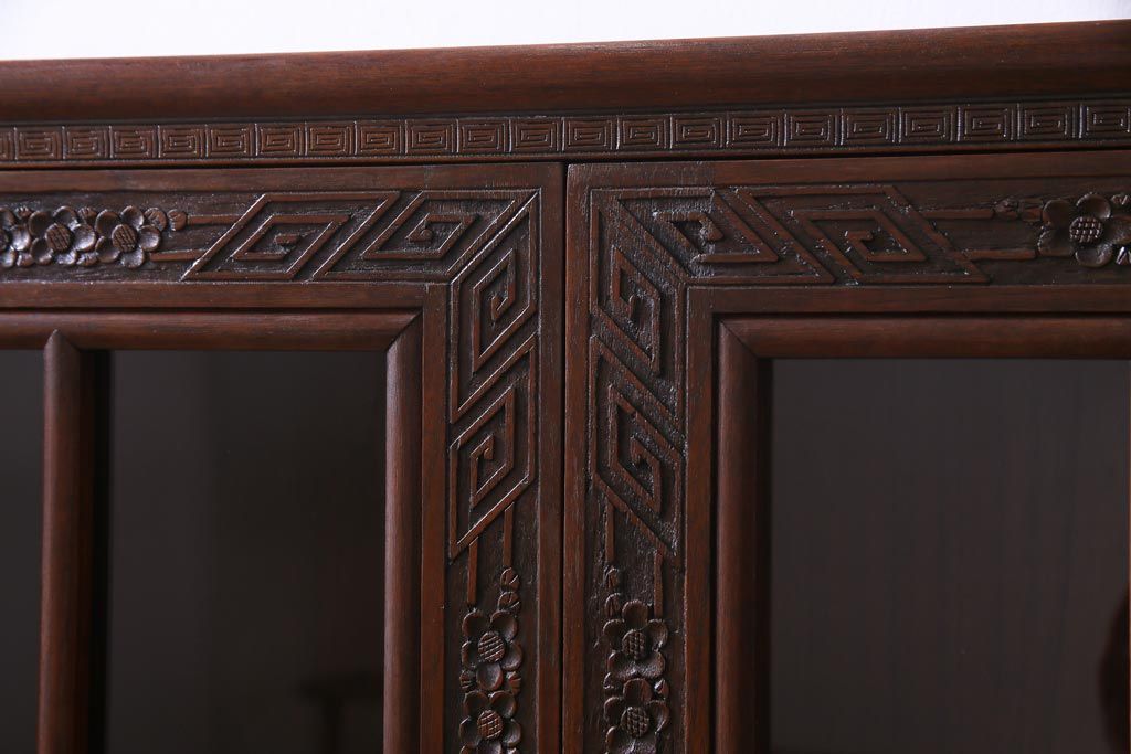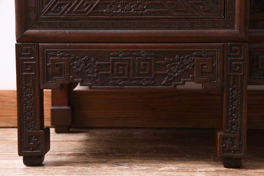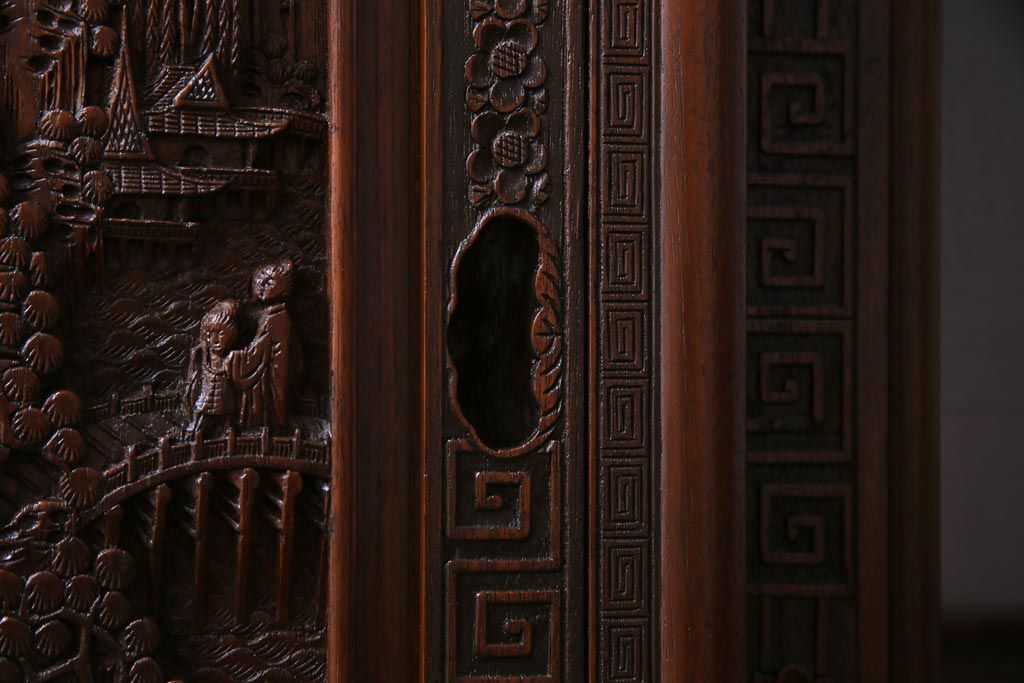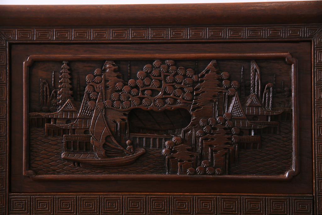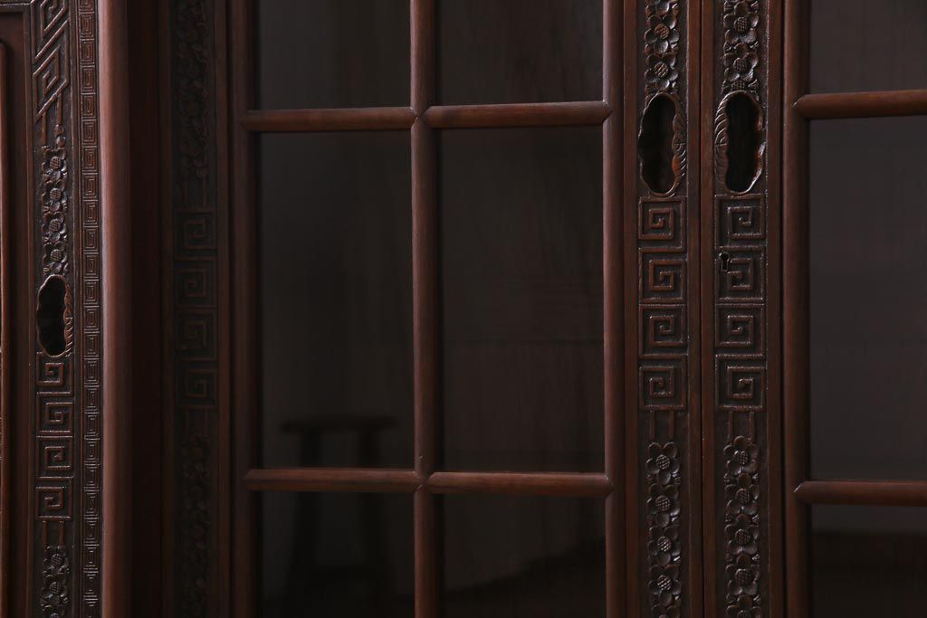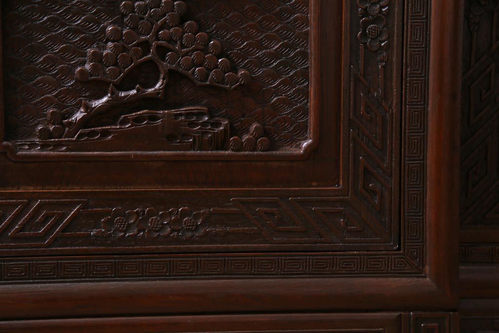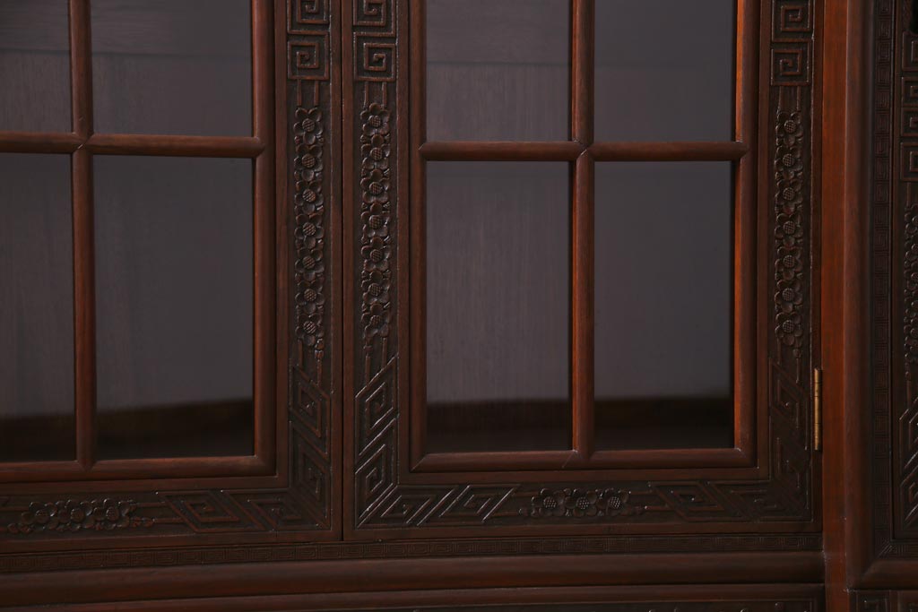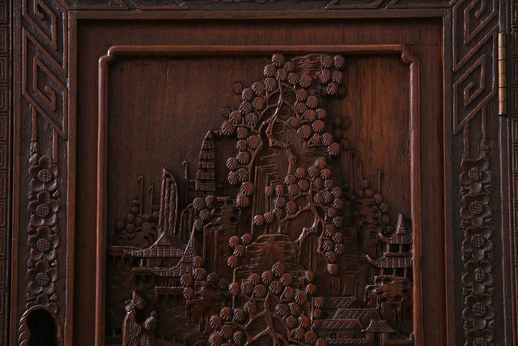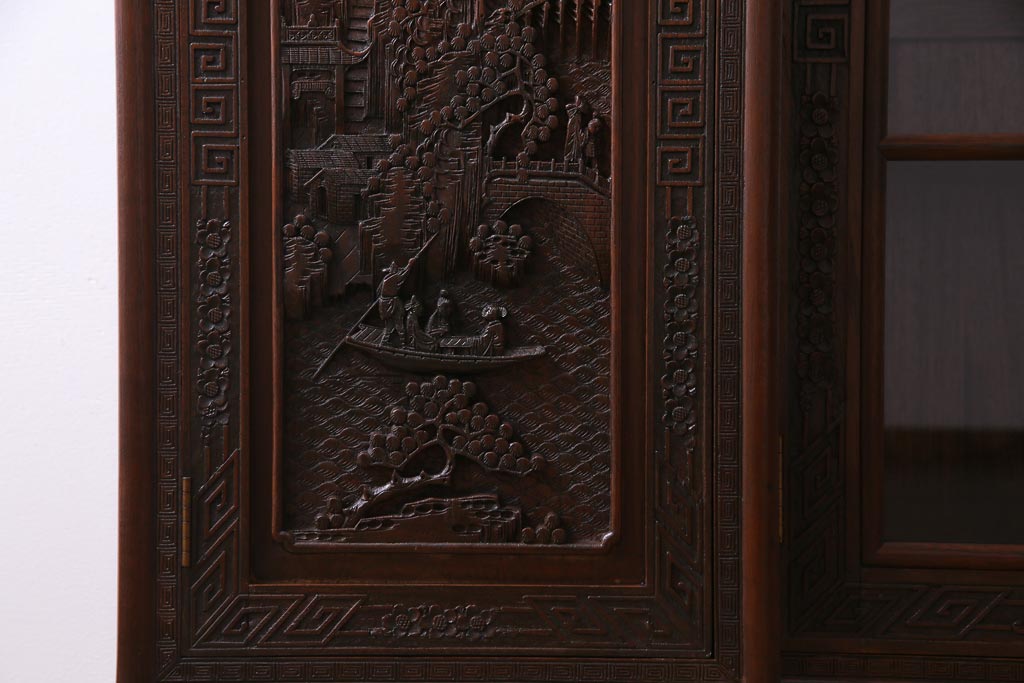 中古 クルミ材 手彫りの豪華な意匠が存在感を放つサイドボード(キャビネット、収納棚)