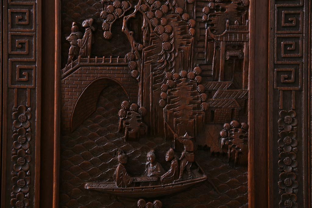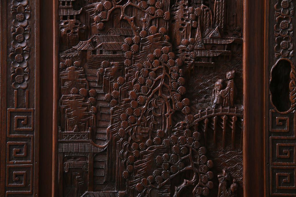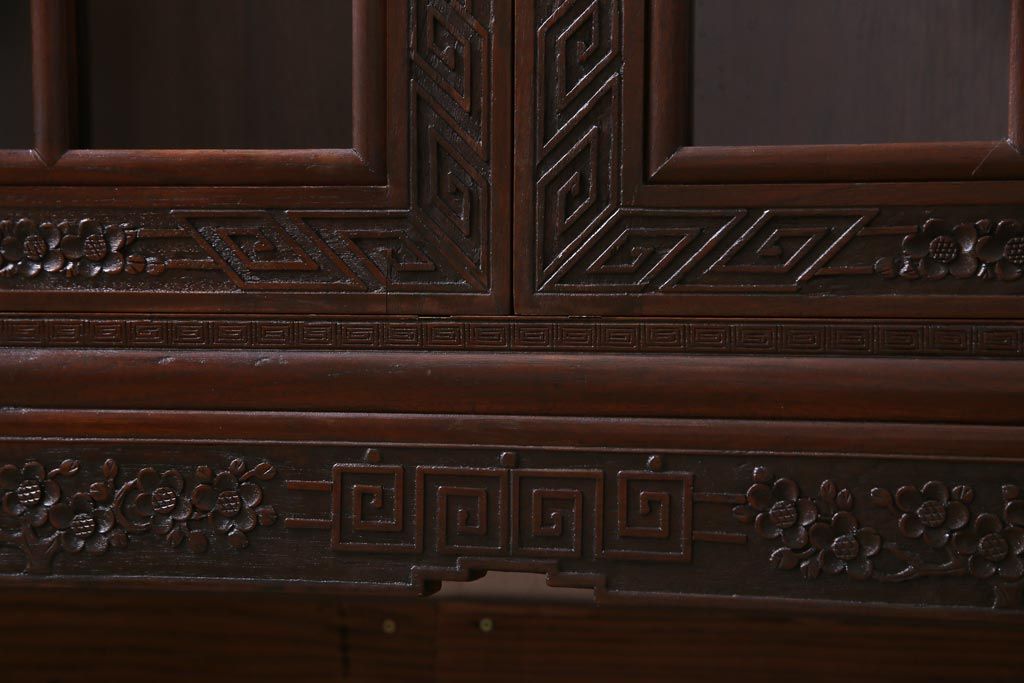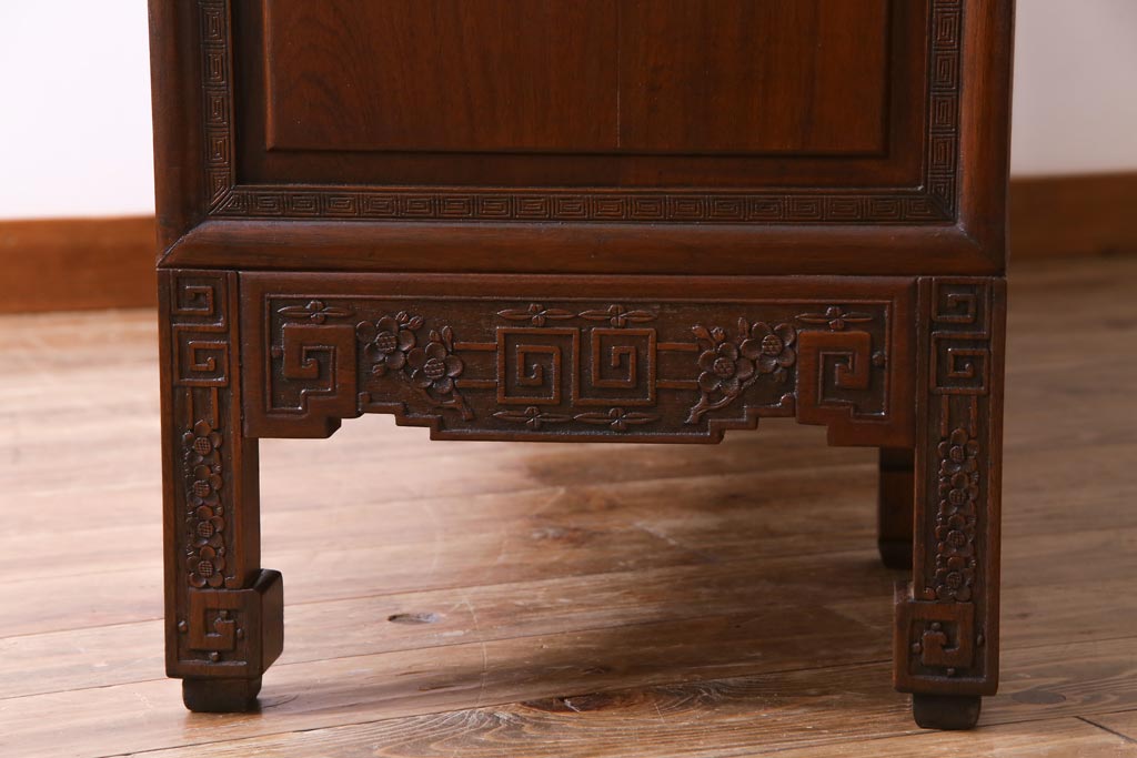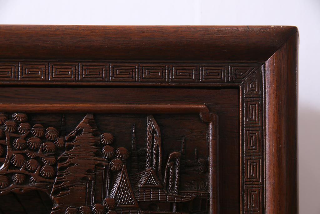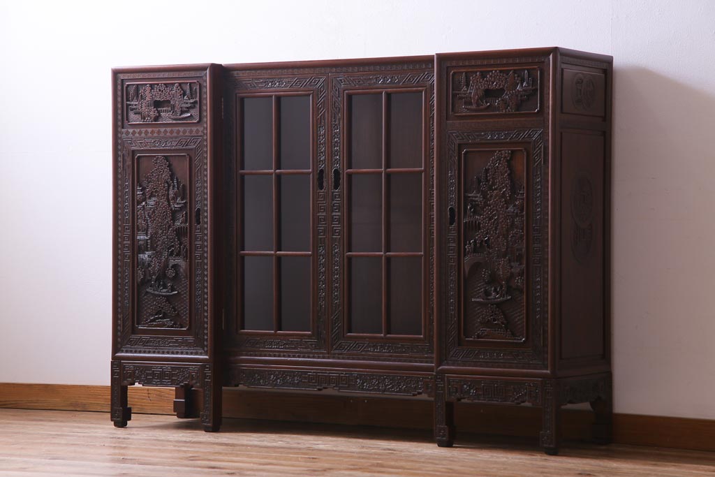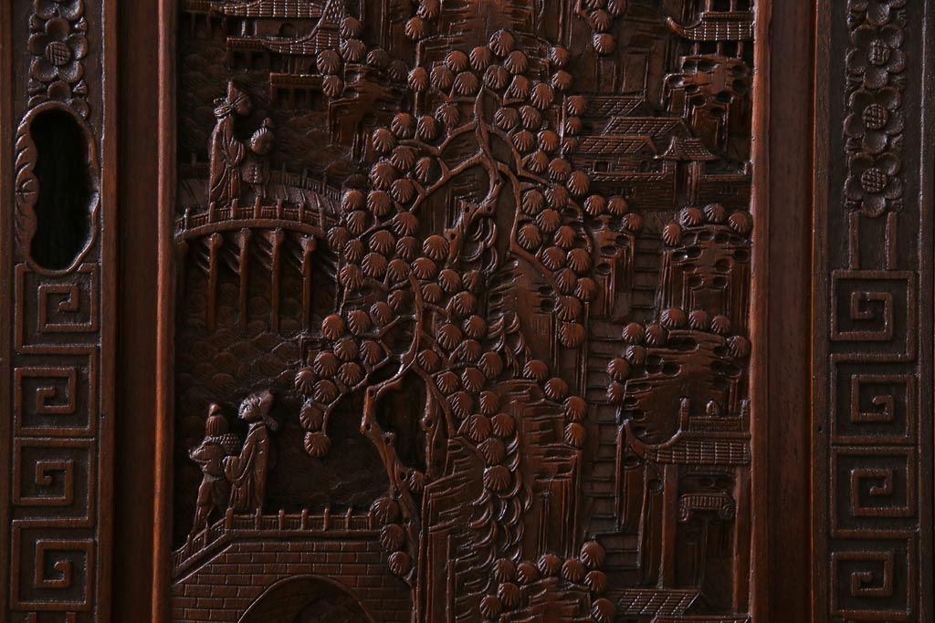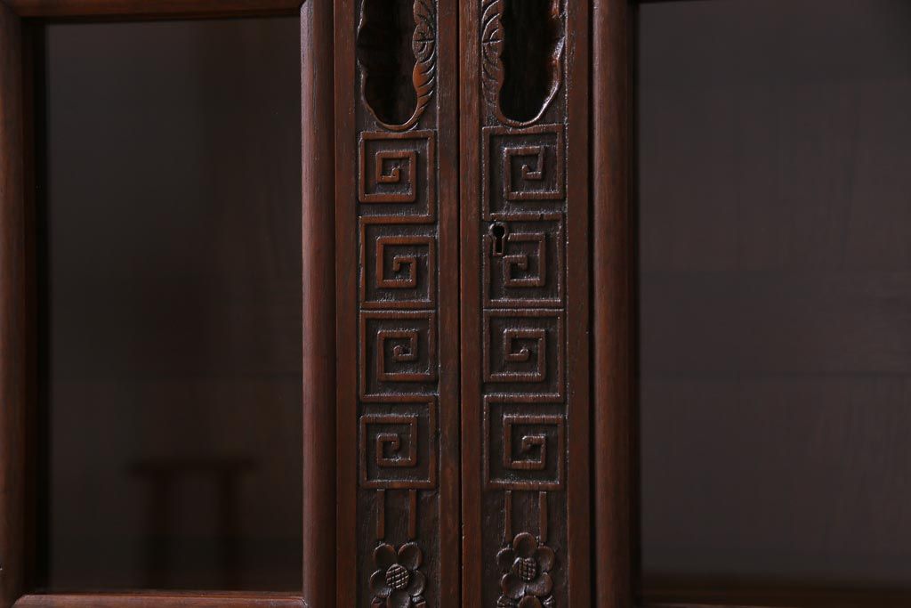 中古 クルミ材 手彫りの豪華な意匠が存在感を放つサイドボード(キャビネット、収納棚)