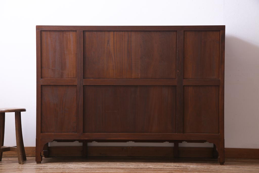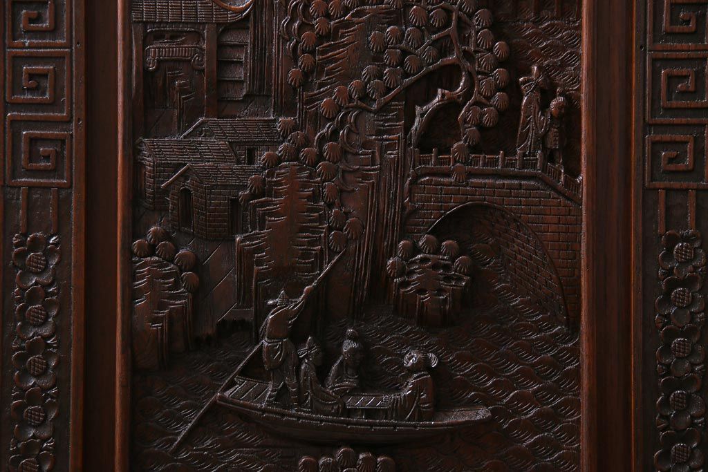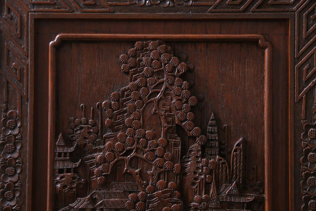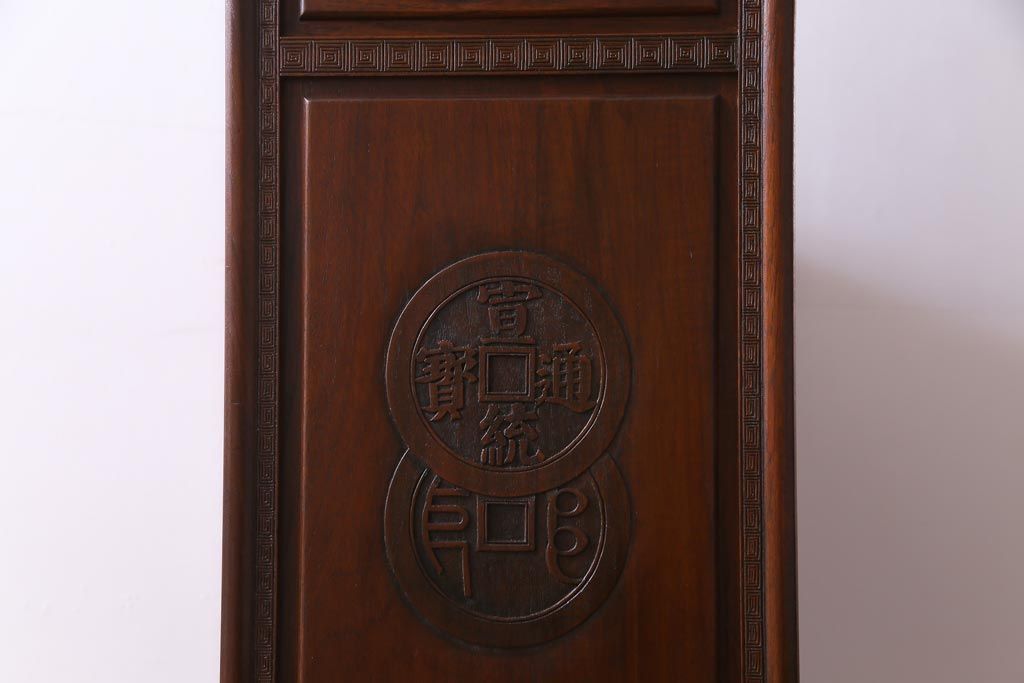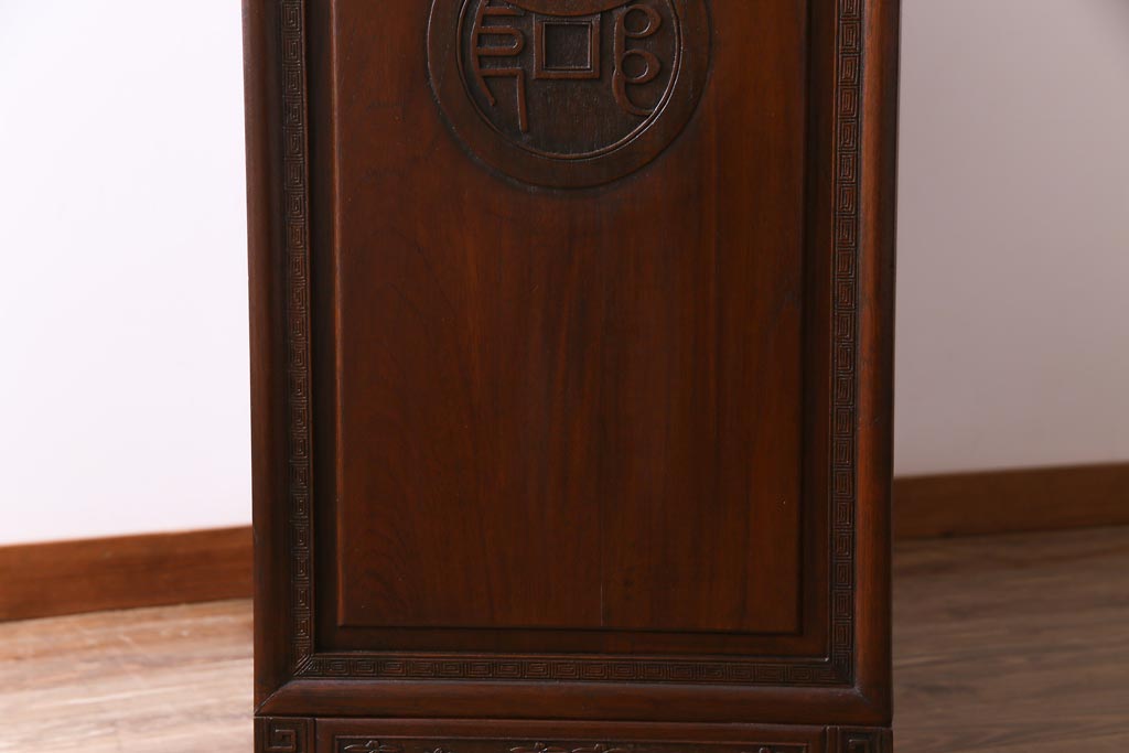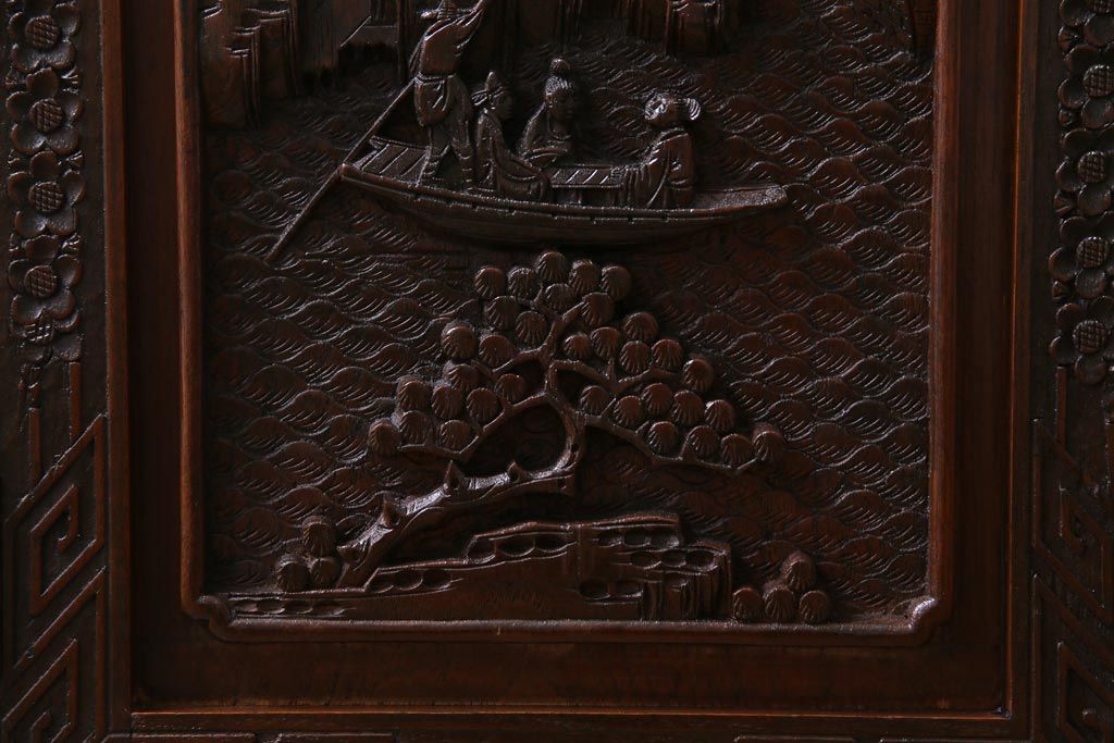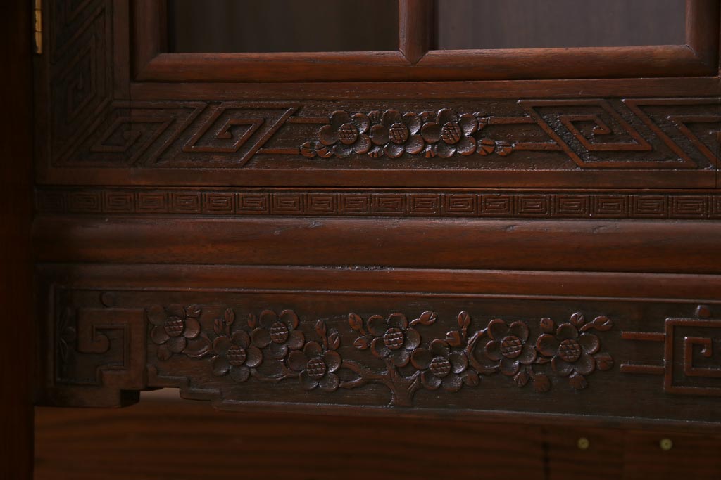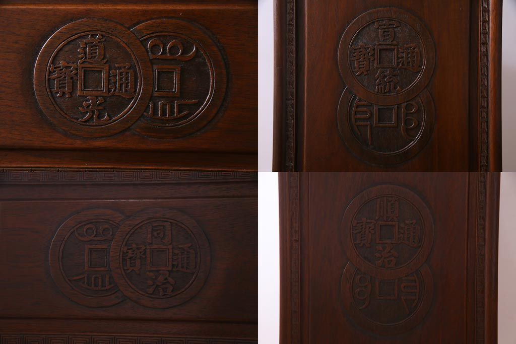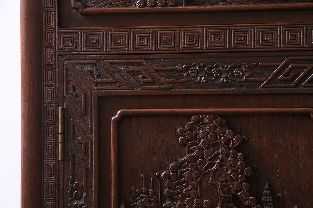 中古 クルミ材 手彫りの豪華な意匠が存在感を放つサイドボード(キャビネット、収納棚)