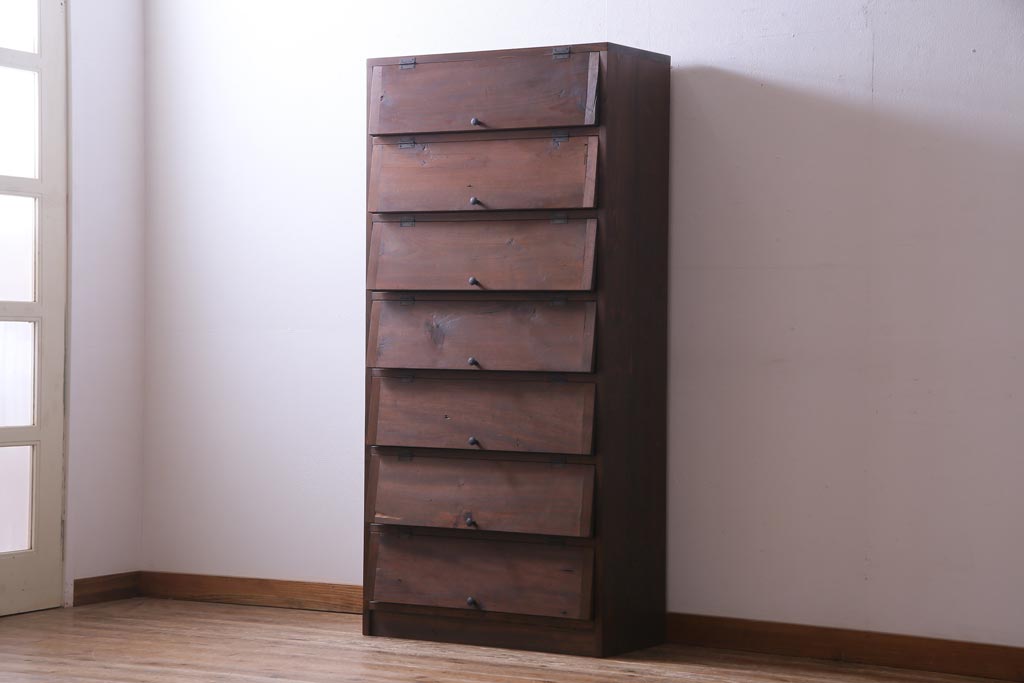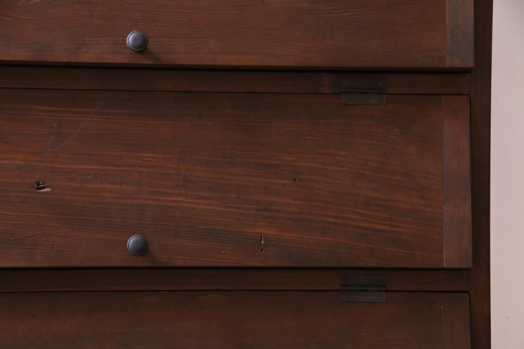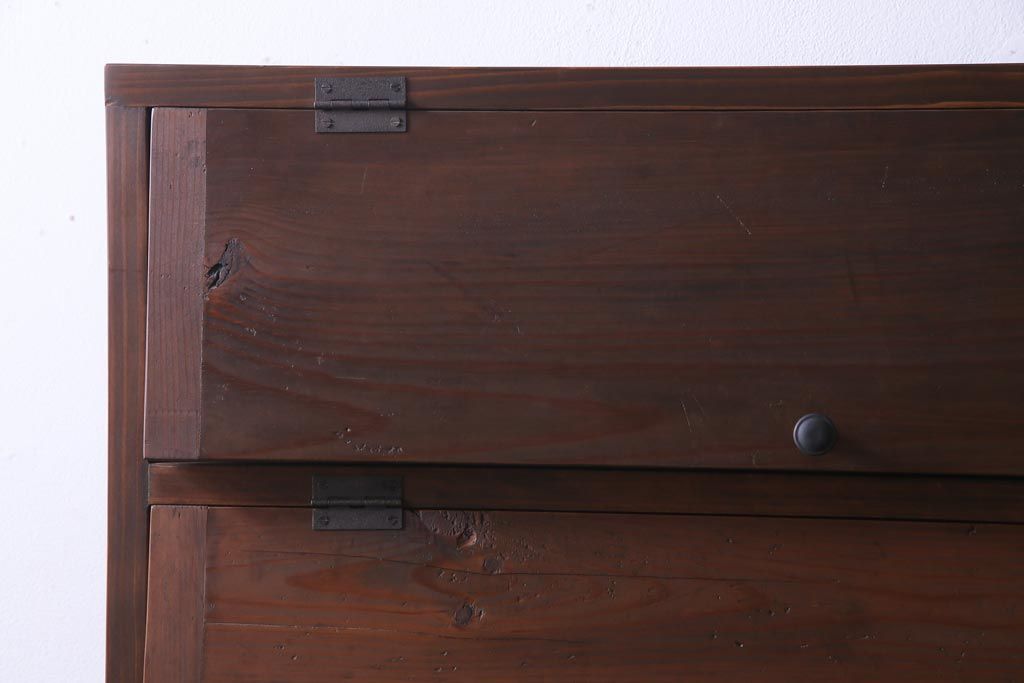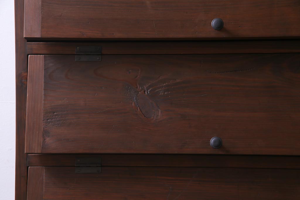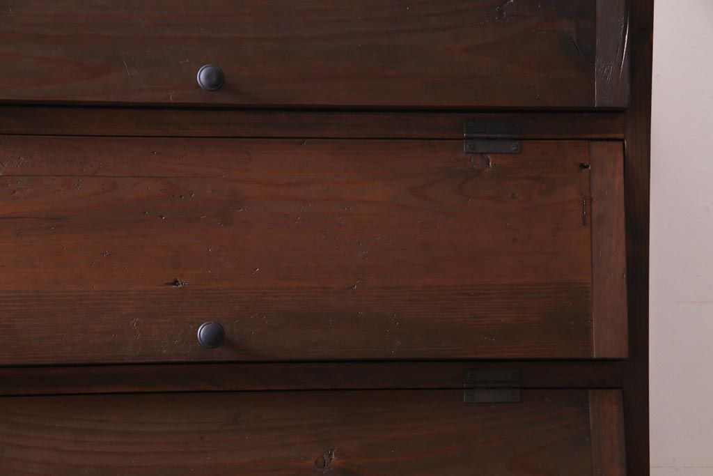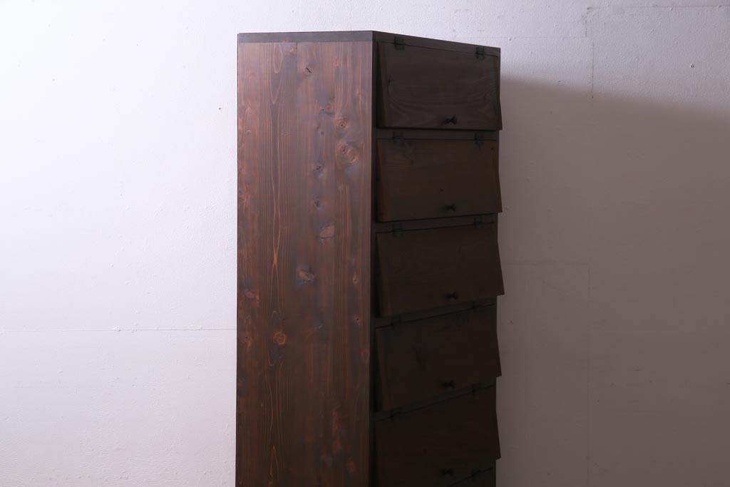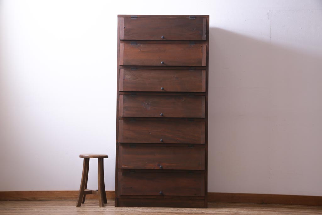 アンティーク家具 リメイク品 前面松材 古材の風合いが味わい深いパタパタ扉のキャビネット(7段タイプ)(戸棚、下駄箱、収納棚)(1)