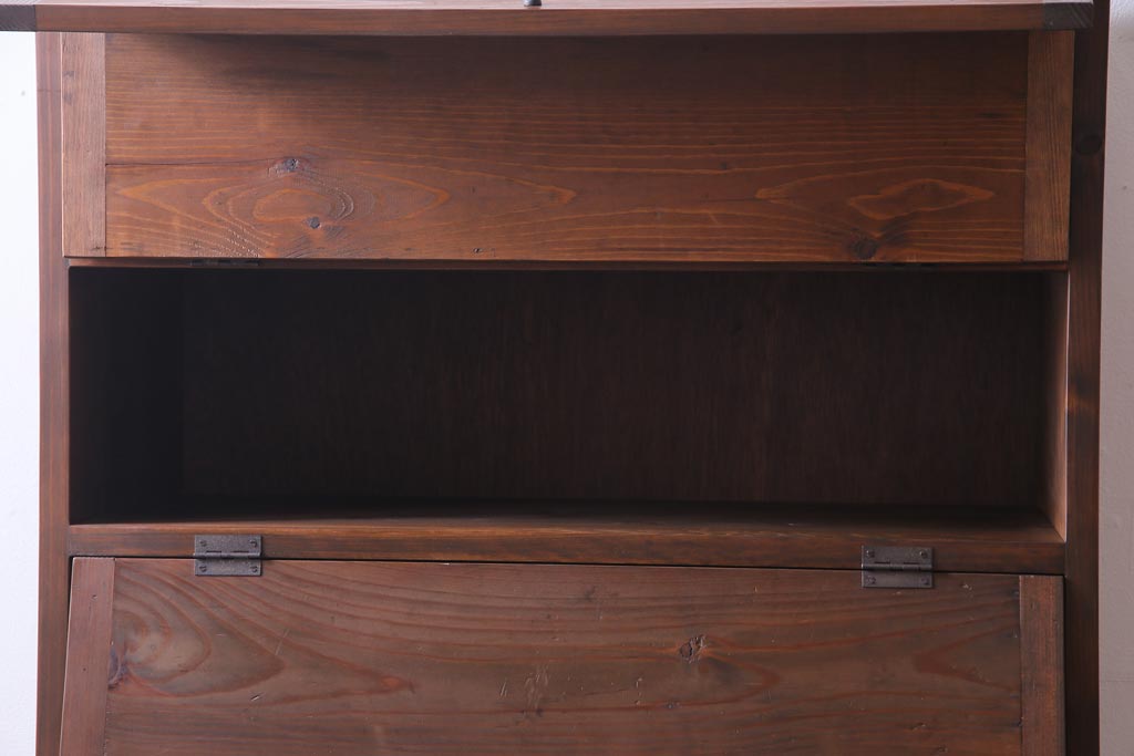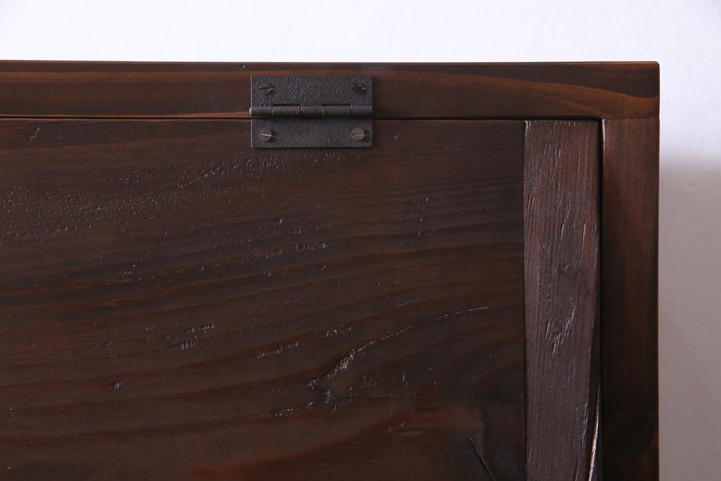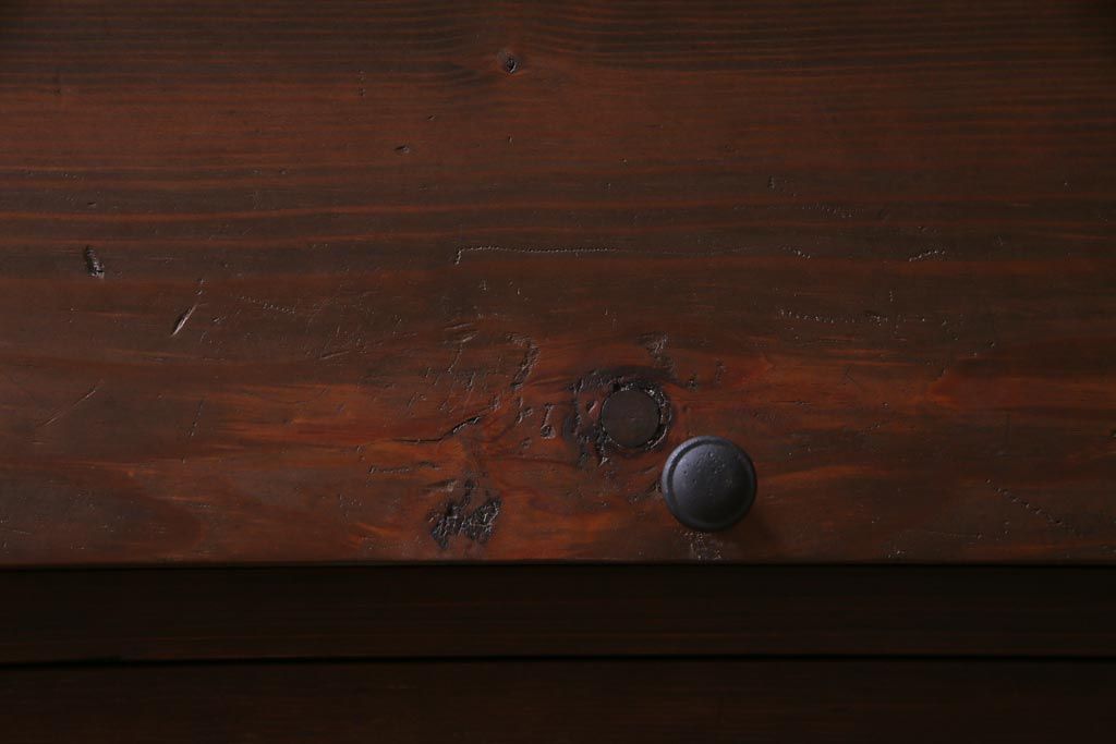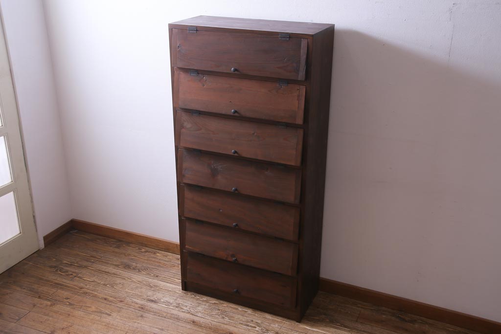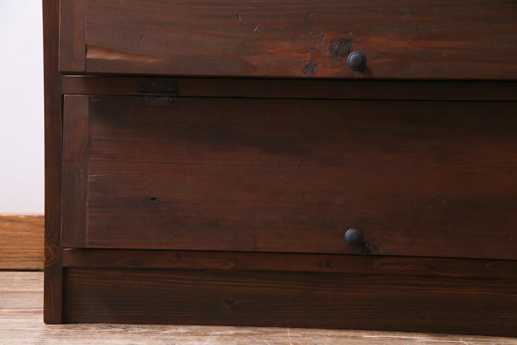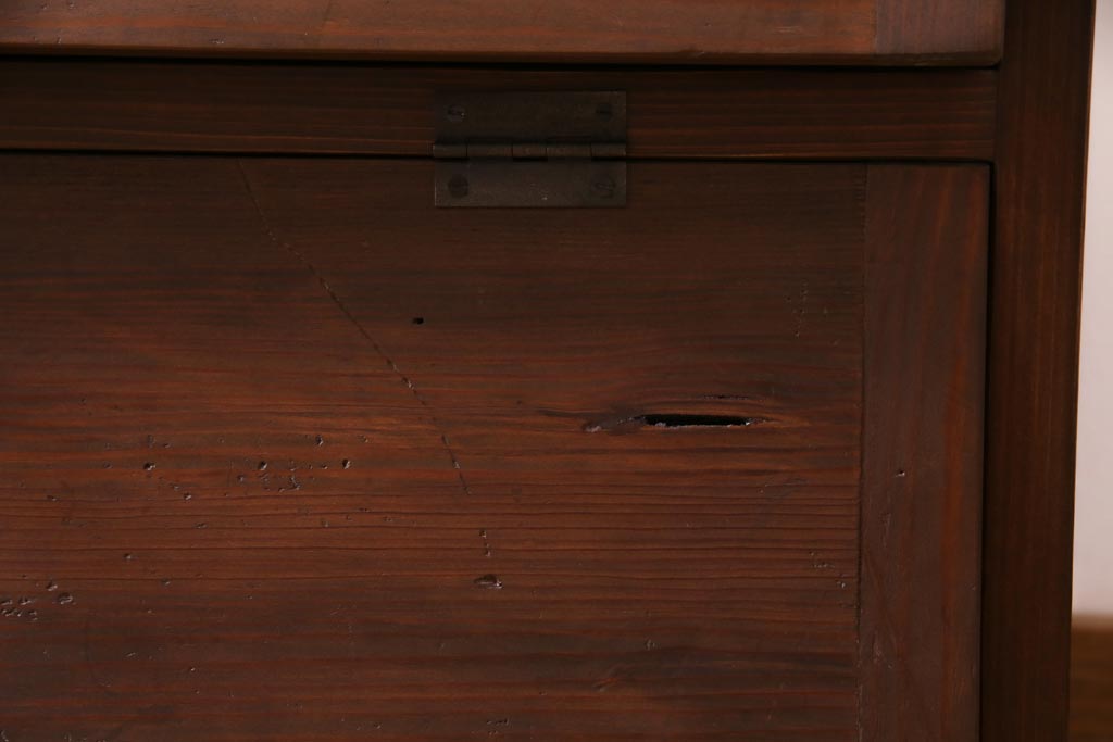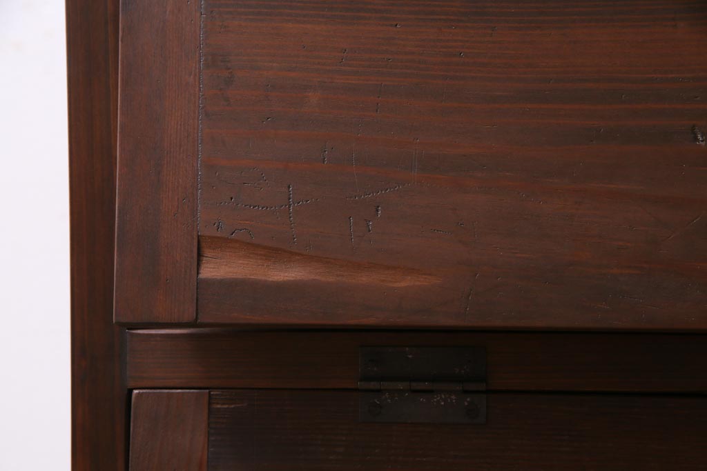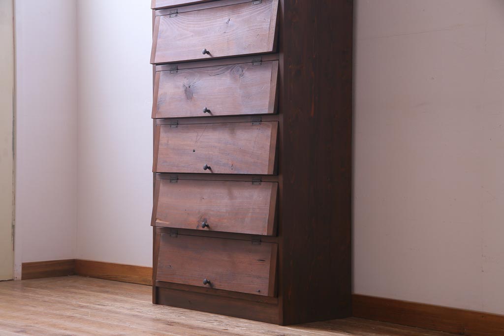 アンティーク家具 リメイク品 前面松材 古材の風合いが味わい深いパタパタ扉のキャビネット(7段タイプ)(戸棚、下駄箱、収納棚)(1)