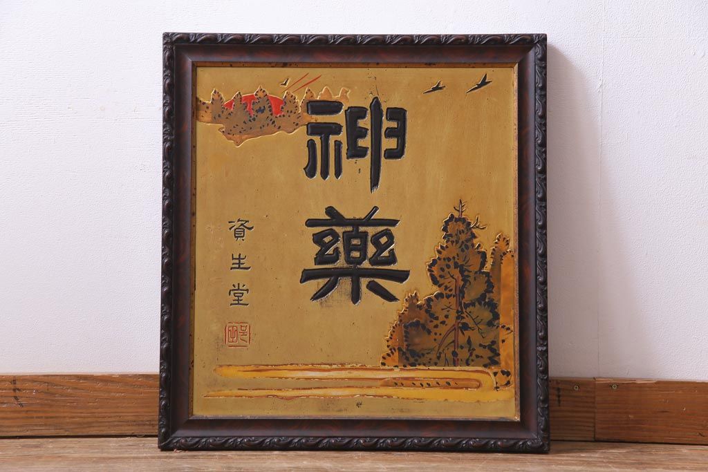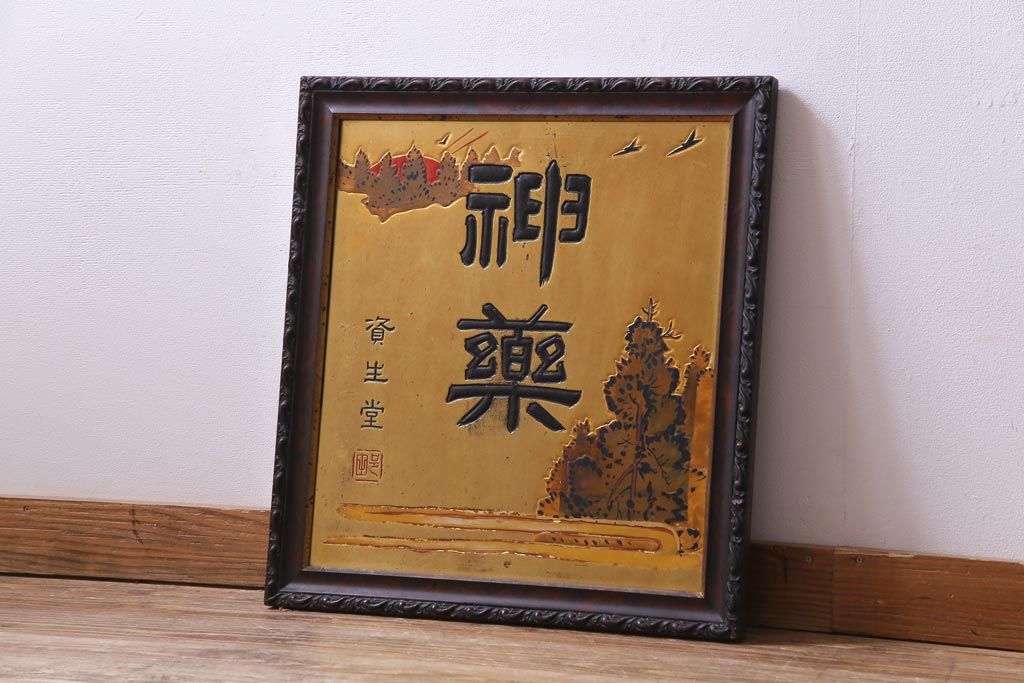 アンティーク雑貨 和製アンティーク 戦前 資生堂 味わいのある木製看板(企業看板)