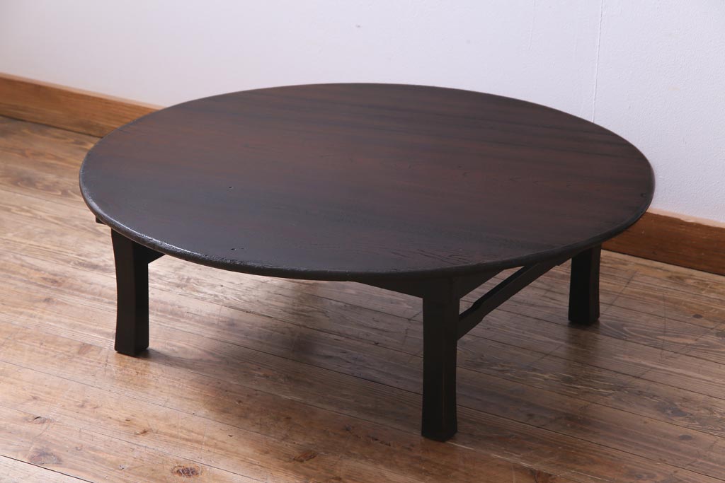 レトロ家具 昭和レトロ 栓材製 懐かしさあふれる佇まいが魅力の丸ちゃぶ台(座卓、ローテーブル)(1)