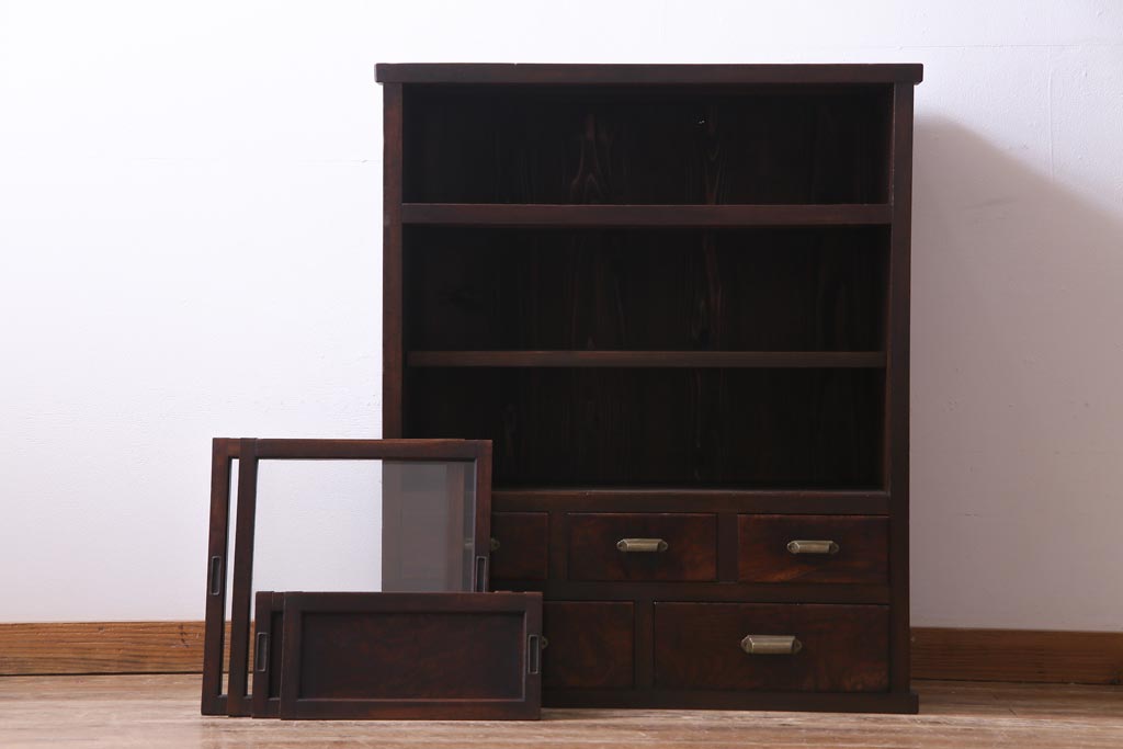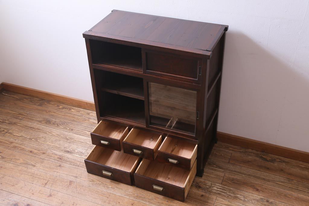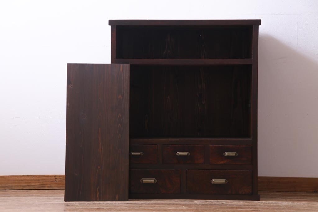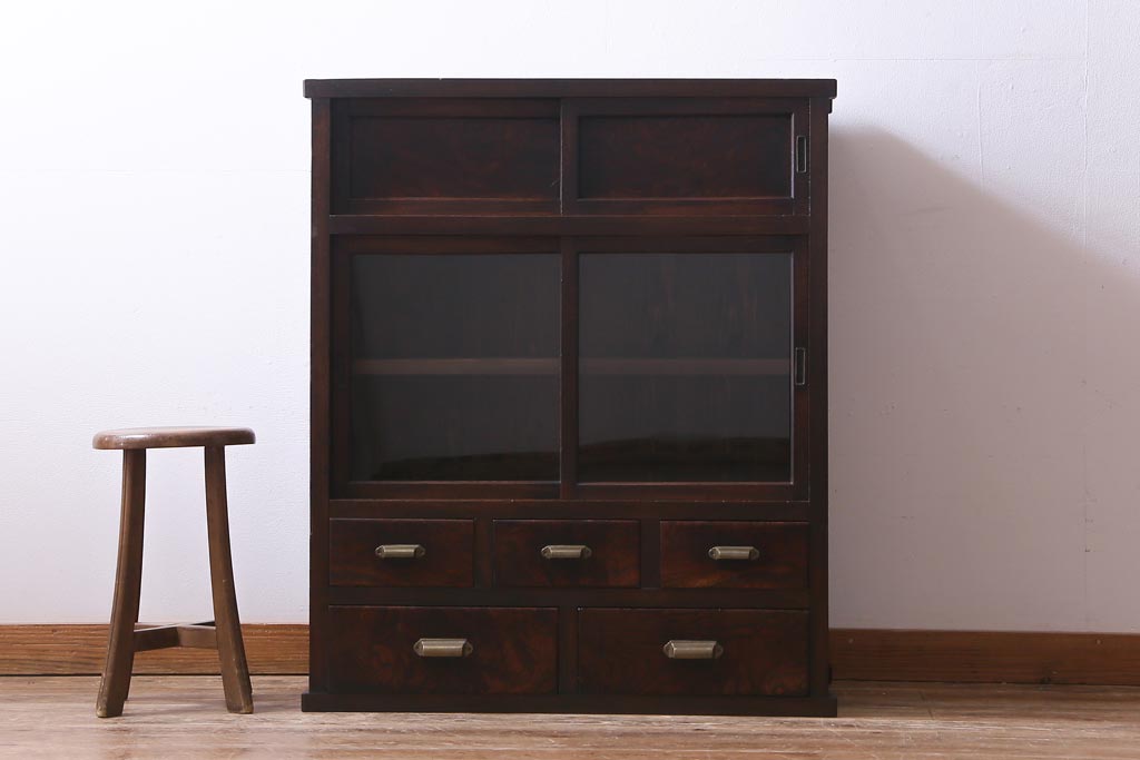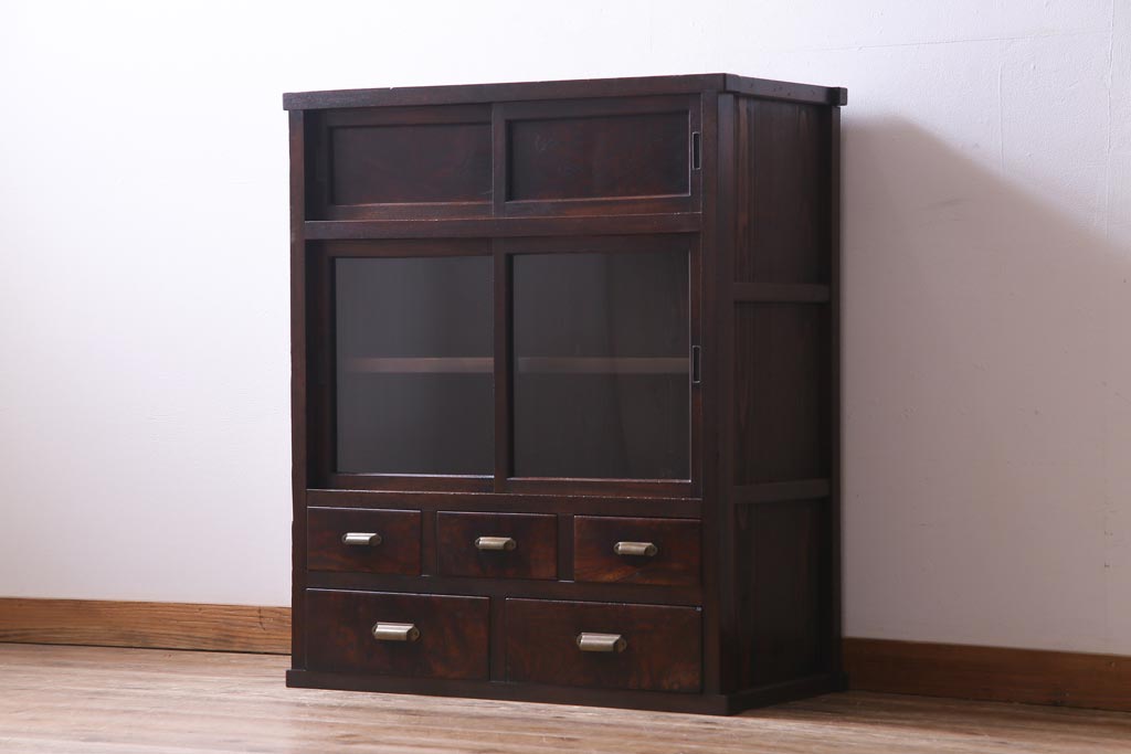 レトロ家具 和製アンティーク 前面ケヤキ材 レトロな佇まいが魅力の戸棚(収納棚、リビングボード)