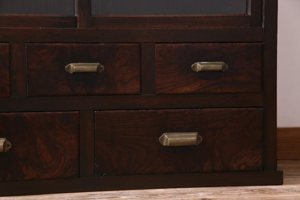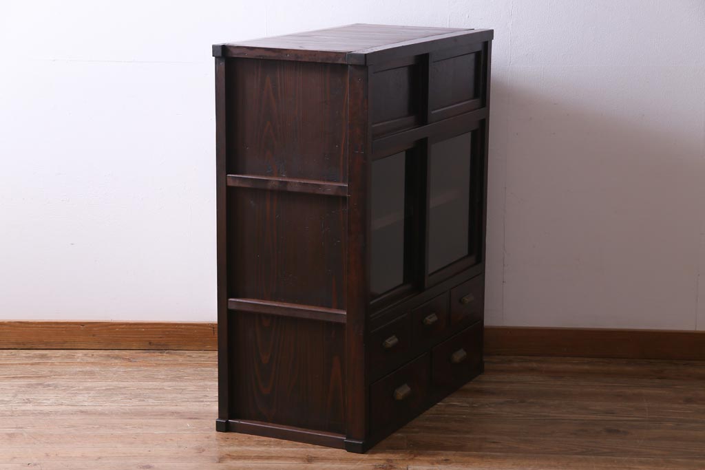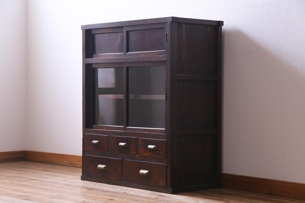 ラフジュ工房> キャビネット・戸棚> 食器棚・カップボード > レトロ家具 和製アンティーク 前面ケヤキ材 レトロな佇まいが魅力の戸棚(収納棚、リビングボード)