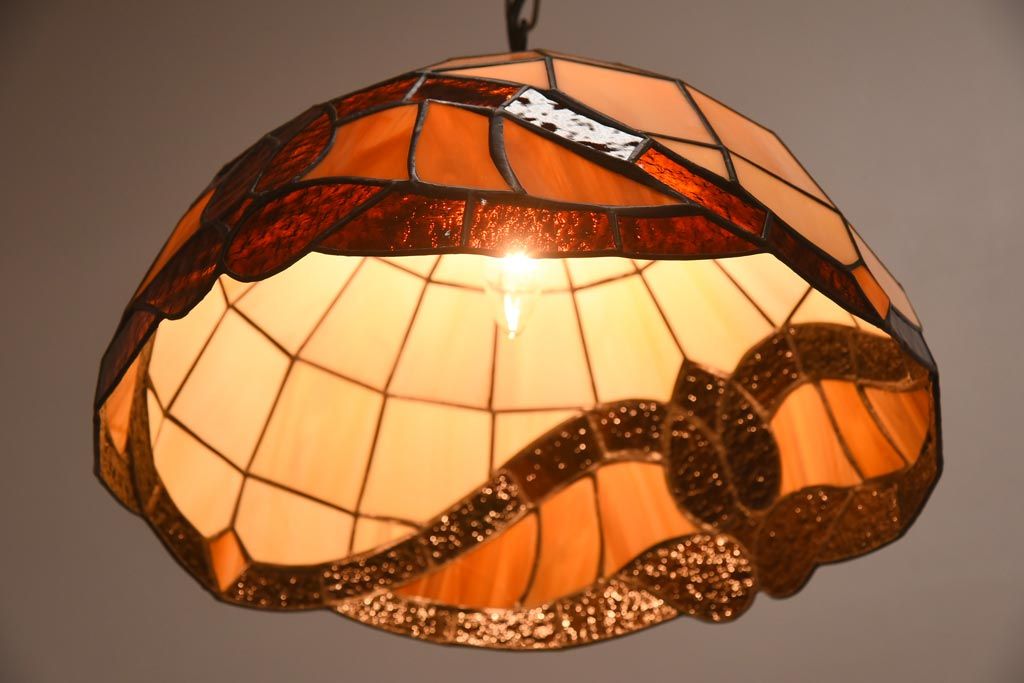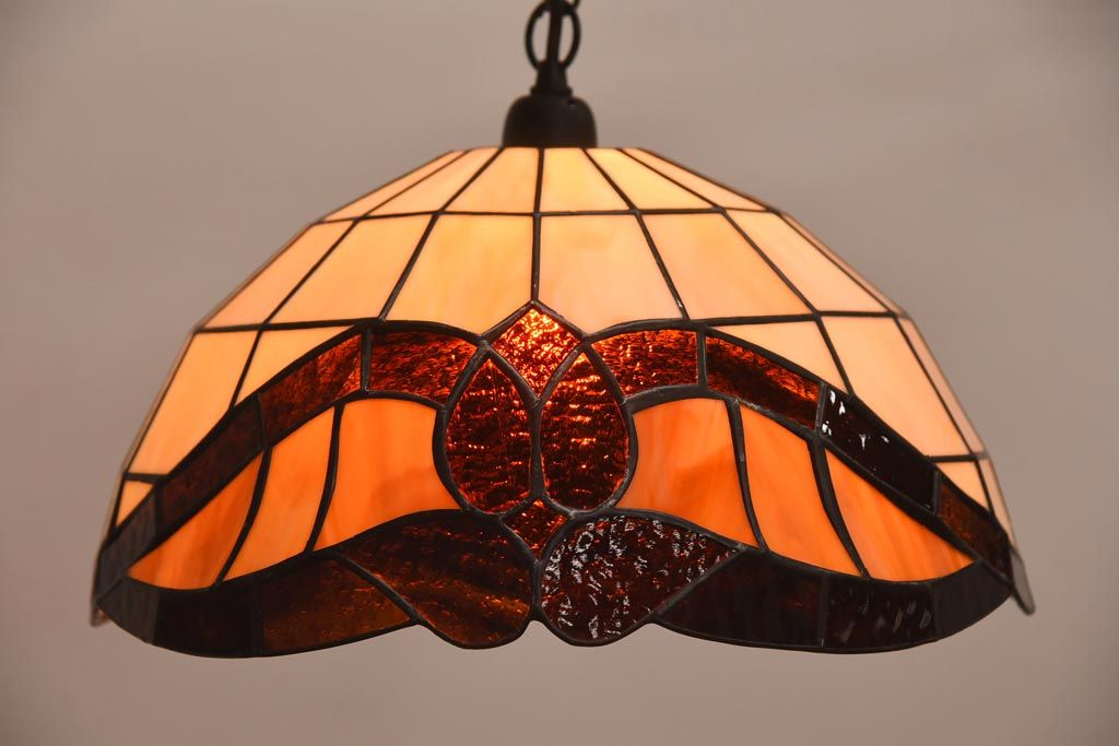 日本製 温かな色味が魅力的なステンドグラスシェードのペンダントライト(天井照明)