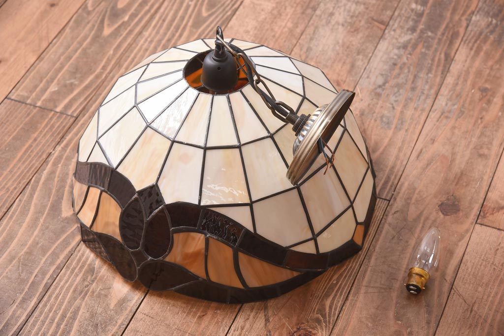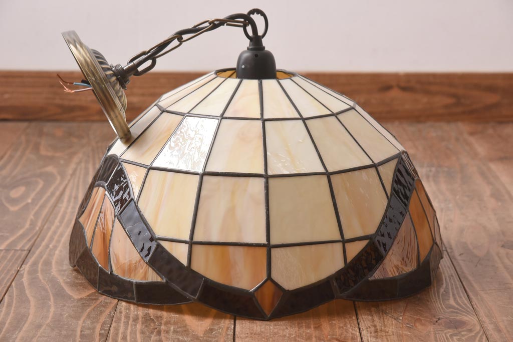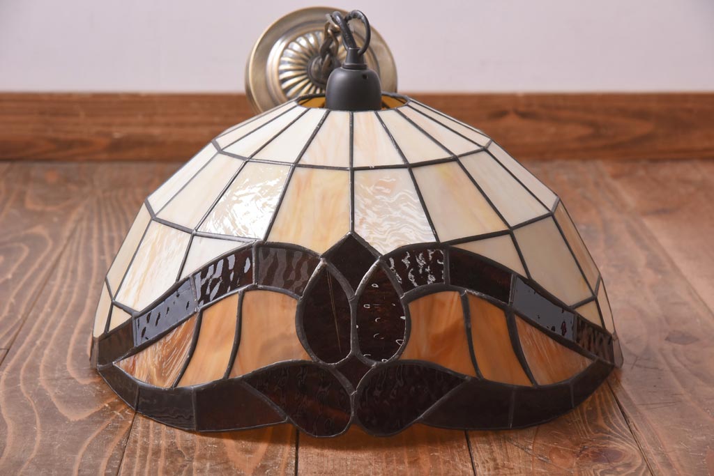 日本製 温かな色味が魅力的なステンドグラスシェードのペンダントライト(天井照明)です。