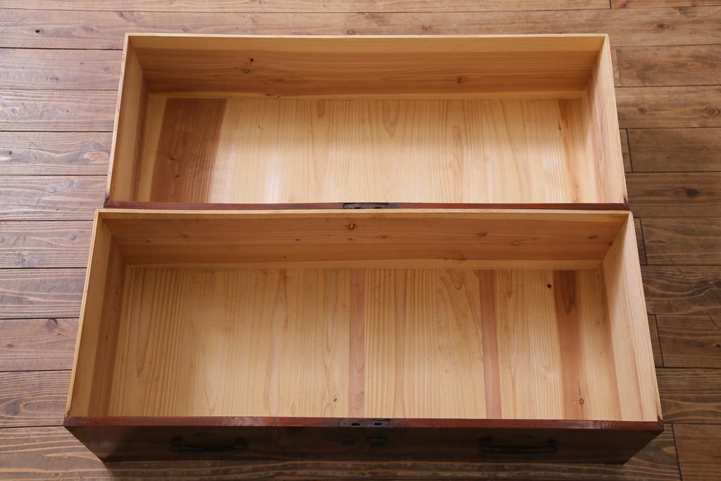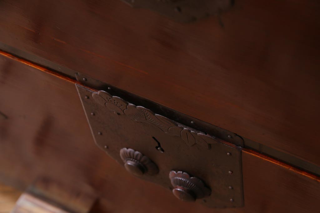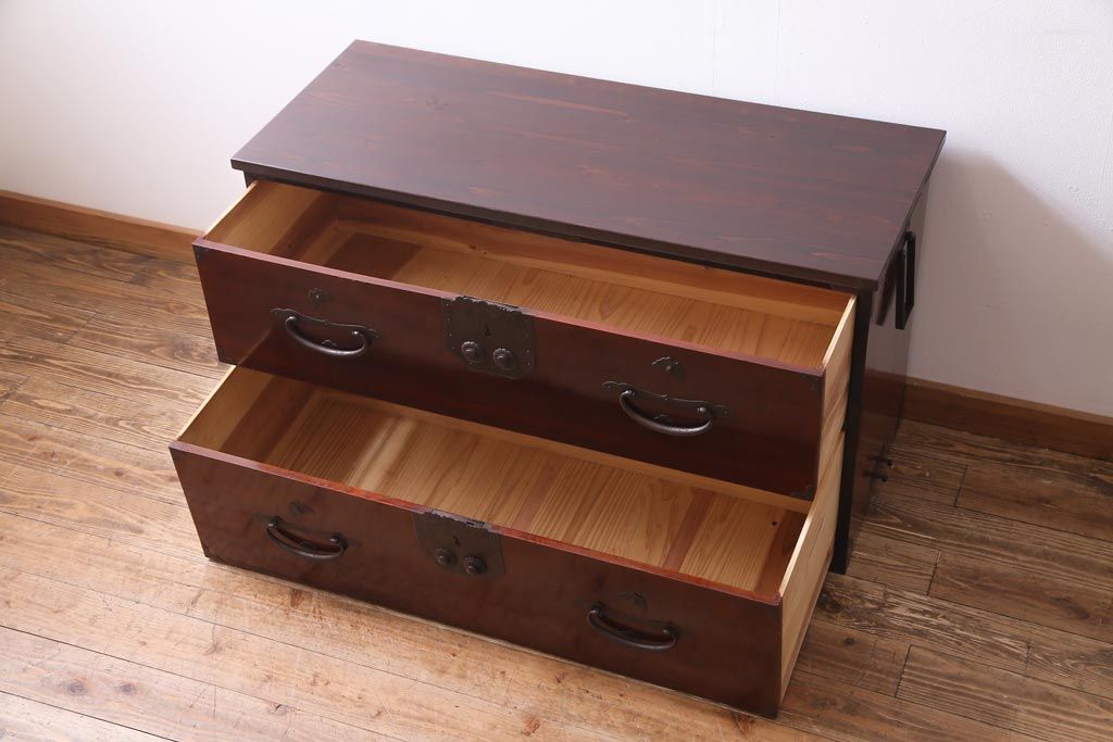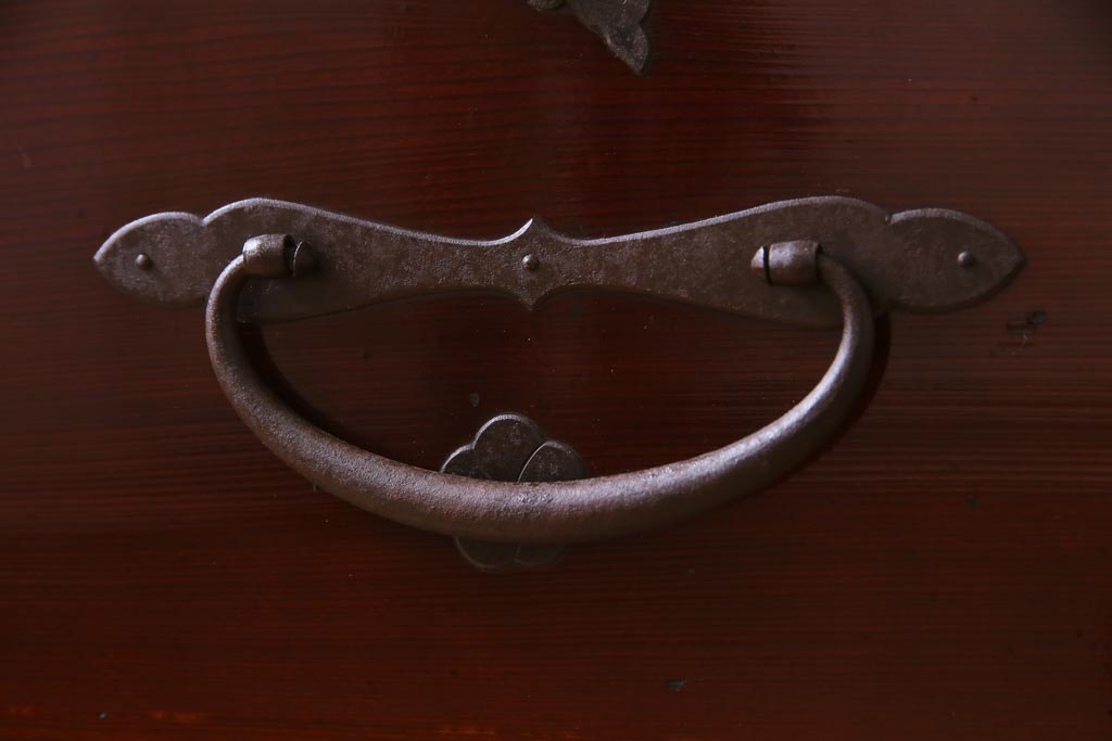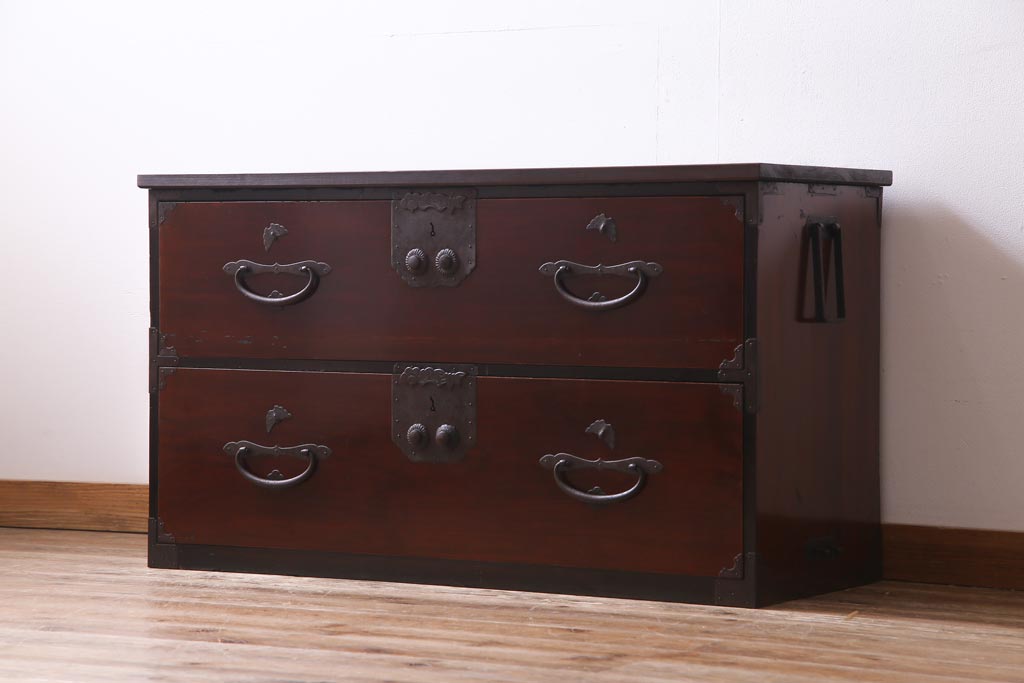 和箪笥> 衣装箪笥 > アンティーク家具 和製アンティーク 漆塗り 蝶の飾り金具が印象的な箪笥ローボード(衣装箪笥)