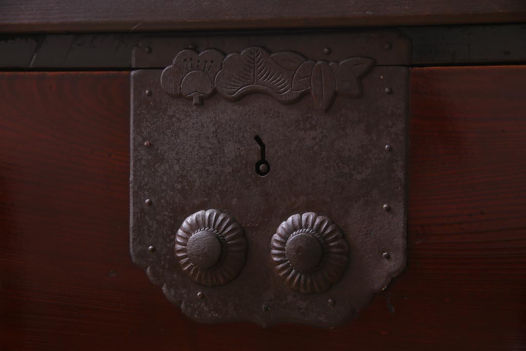 アンティーク家具 和製アンティーク 漆塗り 蝶の飾り金具が印象的な箪笥ローボード(衣装箪笥)