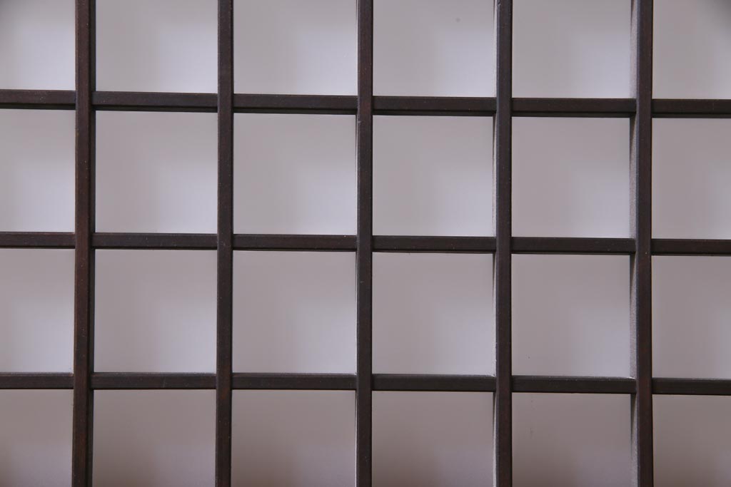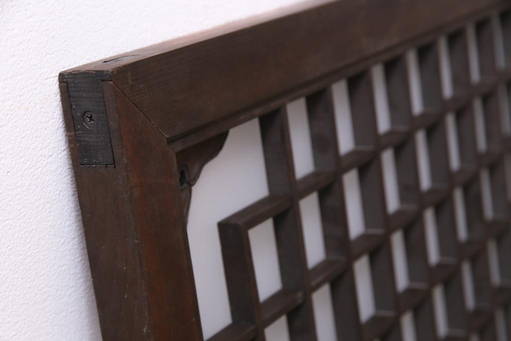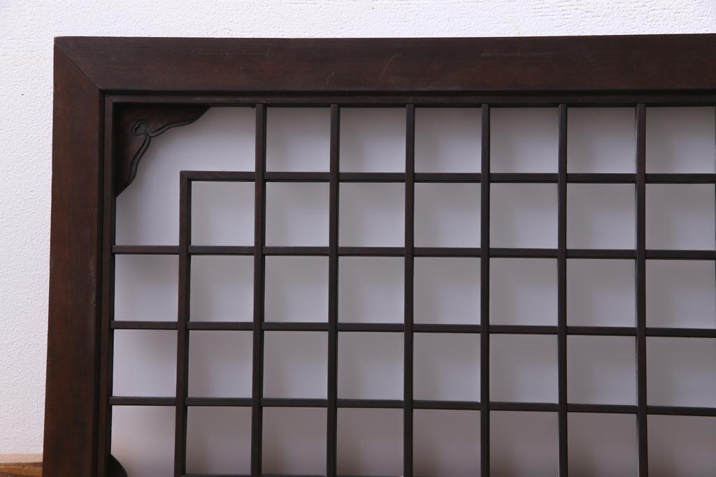 和製アンティーク 大正昭和初期 すりガラス入り 上品な印象与える格子欄間(明り取り、ディスプレイ)です。