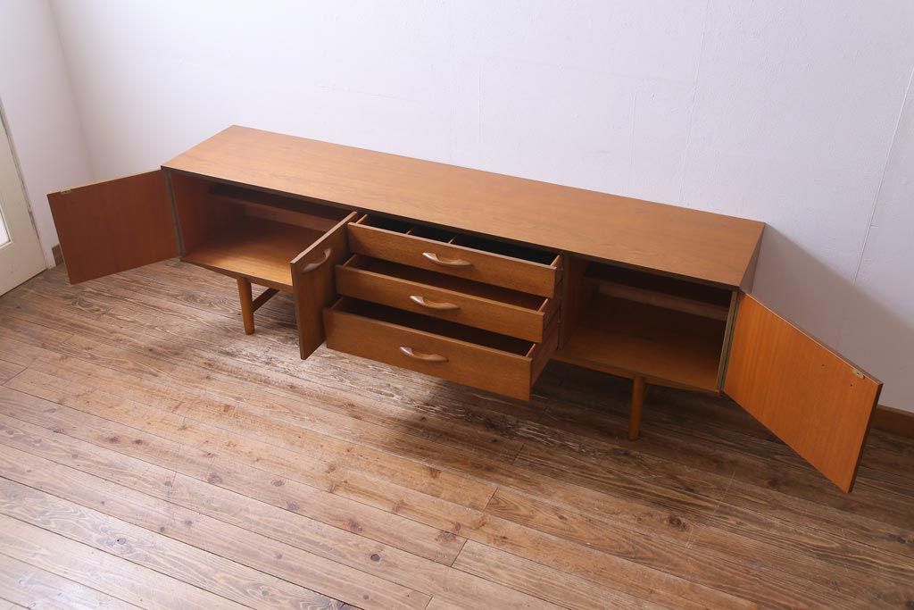 ヴィンテージ家具 北欧ビンテージ AVALON チーク材 シンプルで飽きの来ないデザインのリビングボード(サイドボード)