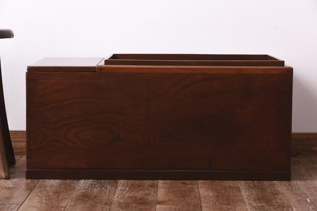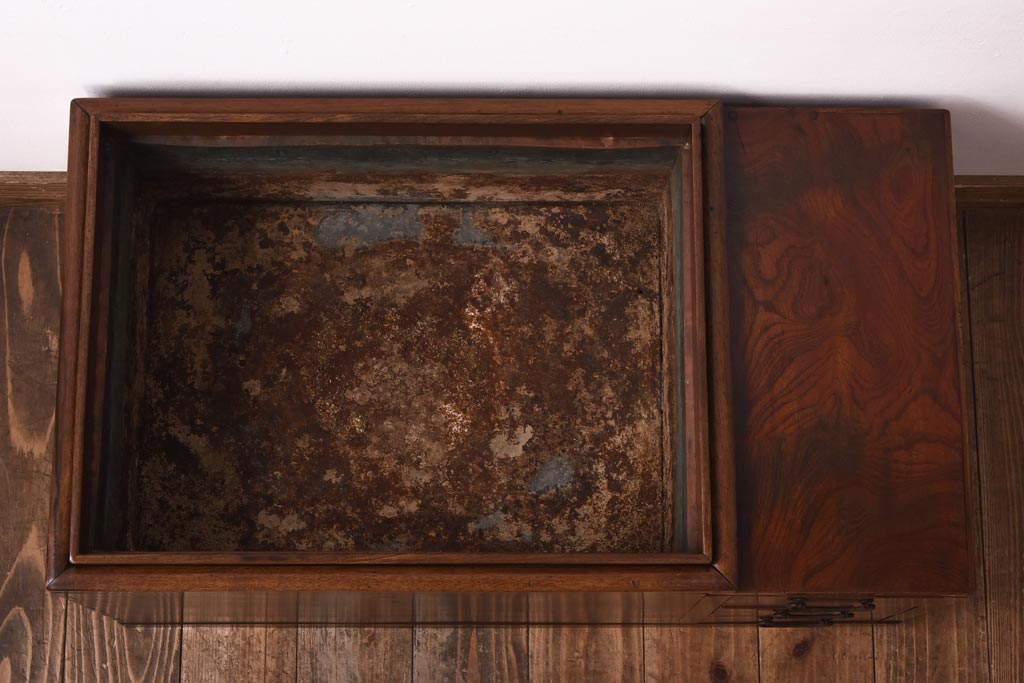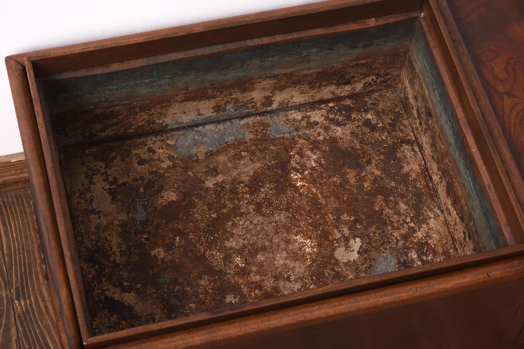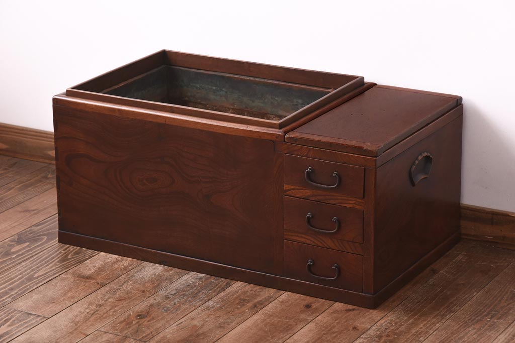 アンティーク雑貨 和製アンティーク ケヤキ材 猫板付き 上品な漆塗りが施された長火鉢