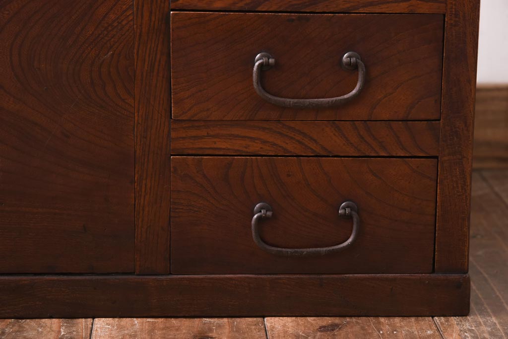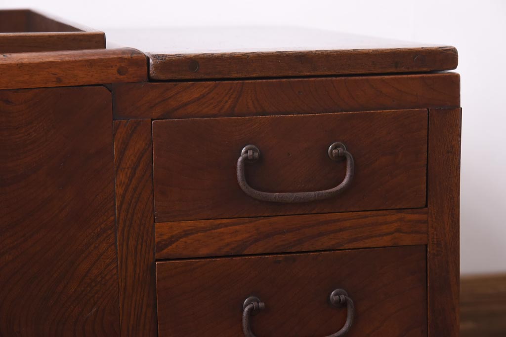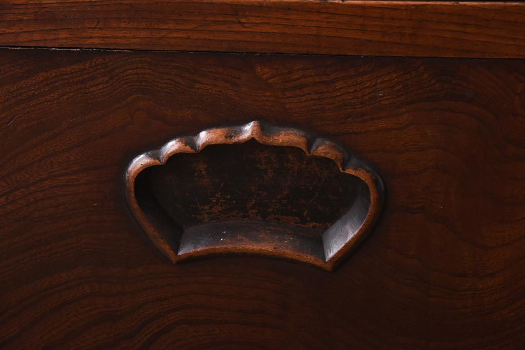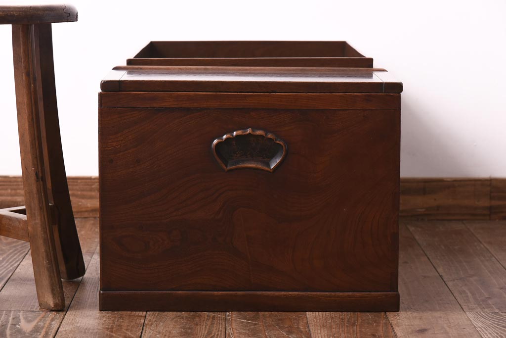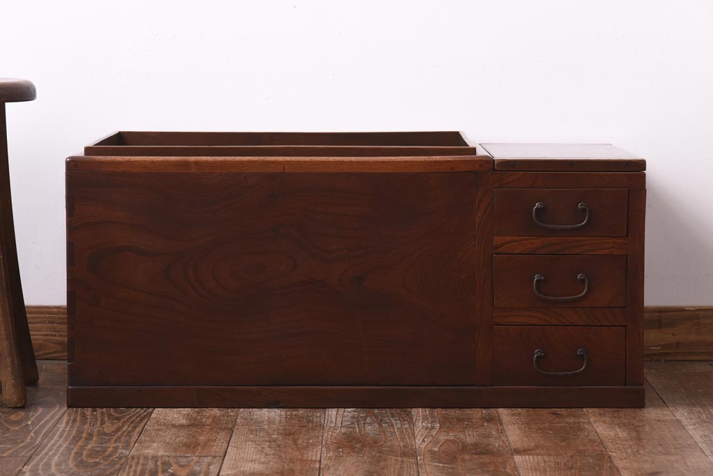 アンティーク雑貨 和製アンティーク ケヤキ材 猫板付き 上品な漆塗りが施された長火鉢