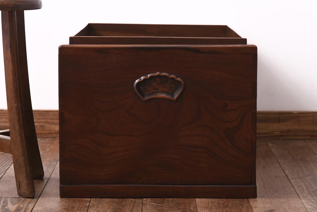 和製アンティーク ケヤキ材 猫板付き 上品な漆塗りが施された長火鉢です。