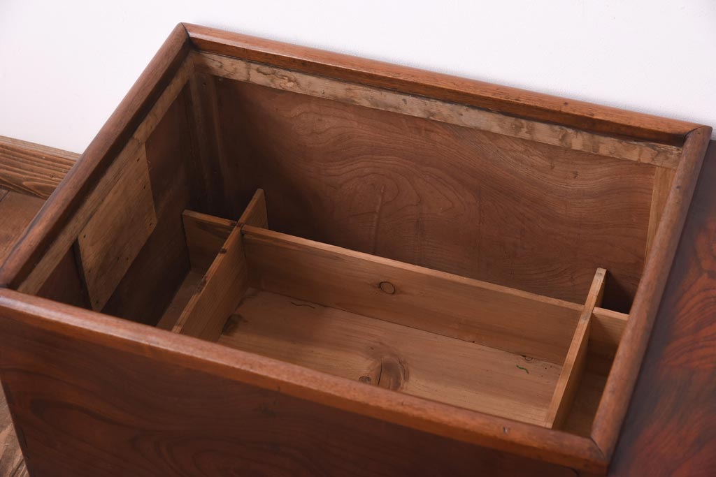 火鉢> 長火鉢 > アンティーク雑貨 和製アンティーク ケヤキ材 猫板付き 上品な漆塗りが施された長火鉢