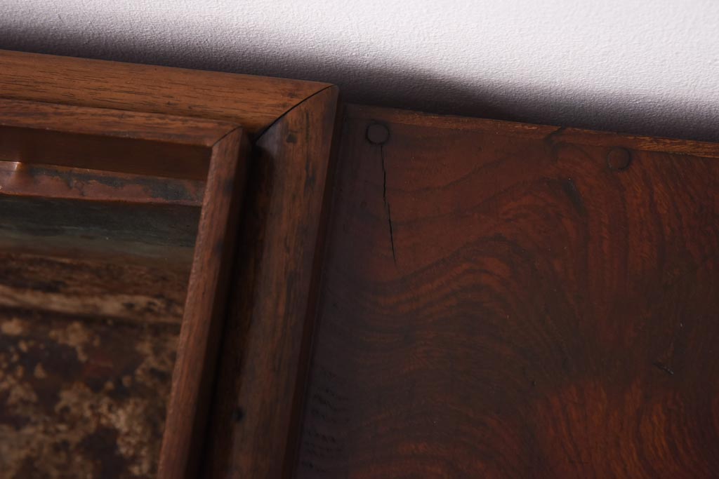 火鉢> 木製火鉢 > アンティーク雑貨 和製アンティーク ケヤキ材 猫板付き 上品な漆塗りが施された長火鉢