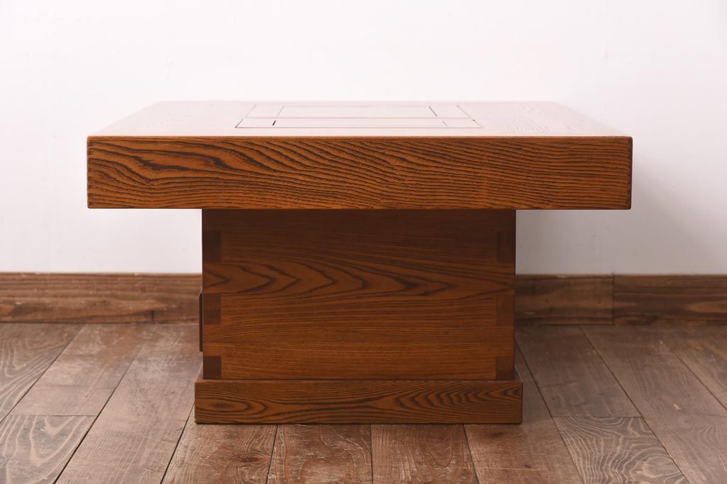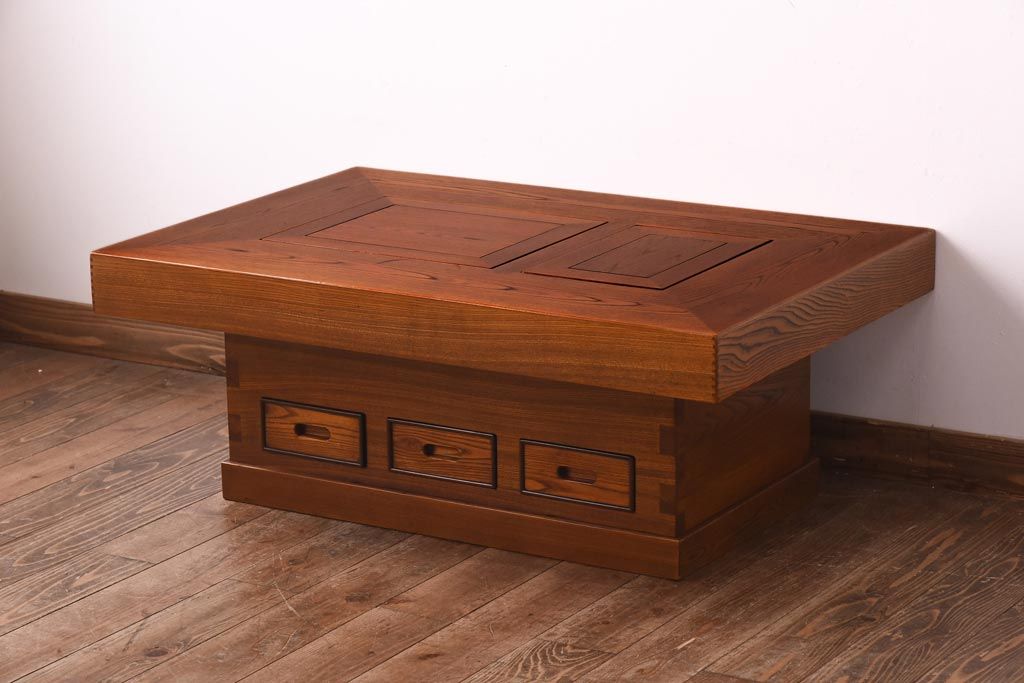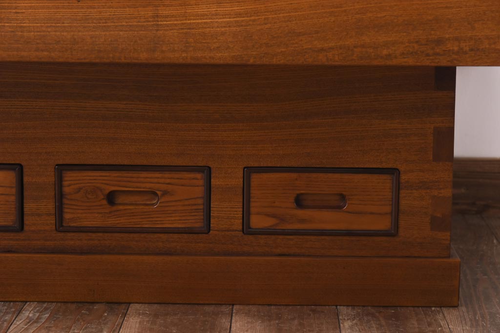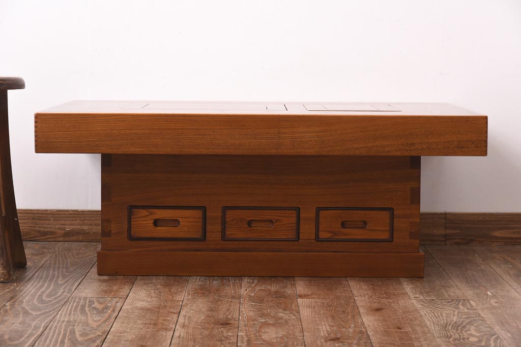 中古 民芸家具 総ケヤキ材 和の趣漂う関西火鉢(囲炉裏、長火鉢)です。