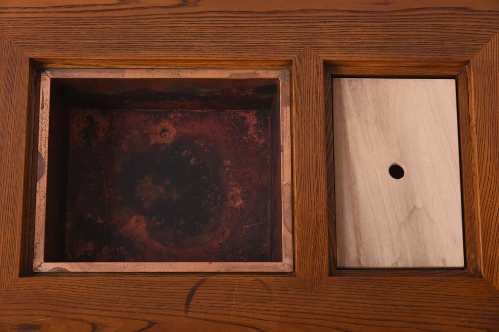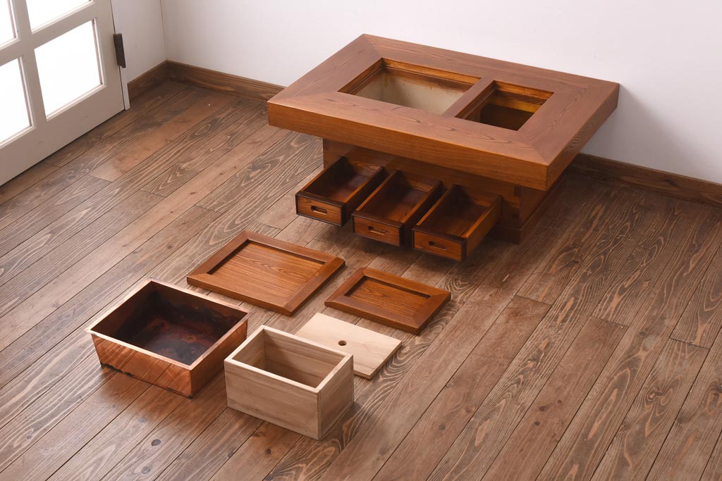 火鉢> 木製火鉢 > アンティーク雑貨 中古 民芸家具 総ケヤキ材 和の趣漂う関西火鉢(囲炉裏、長火鉢)