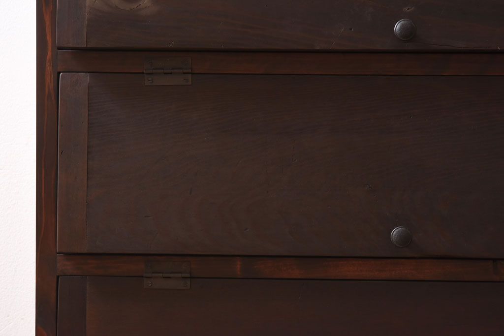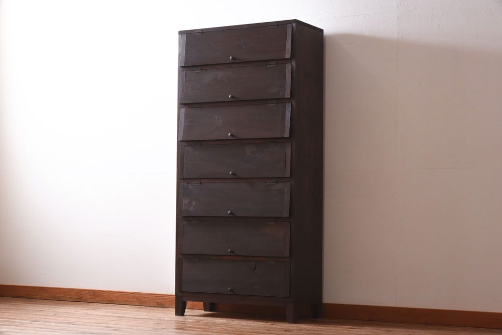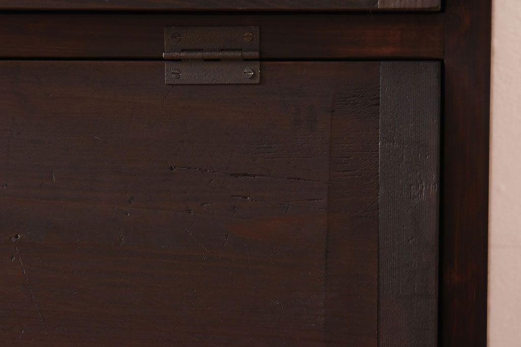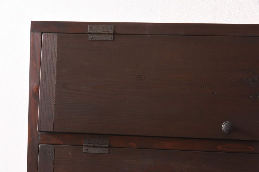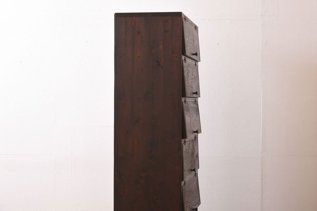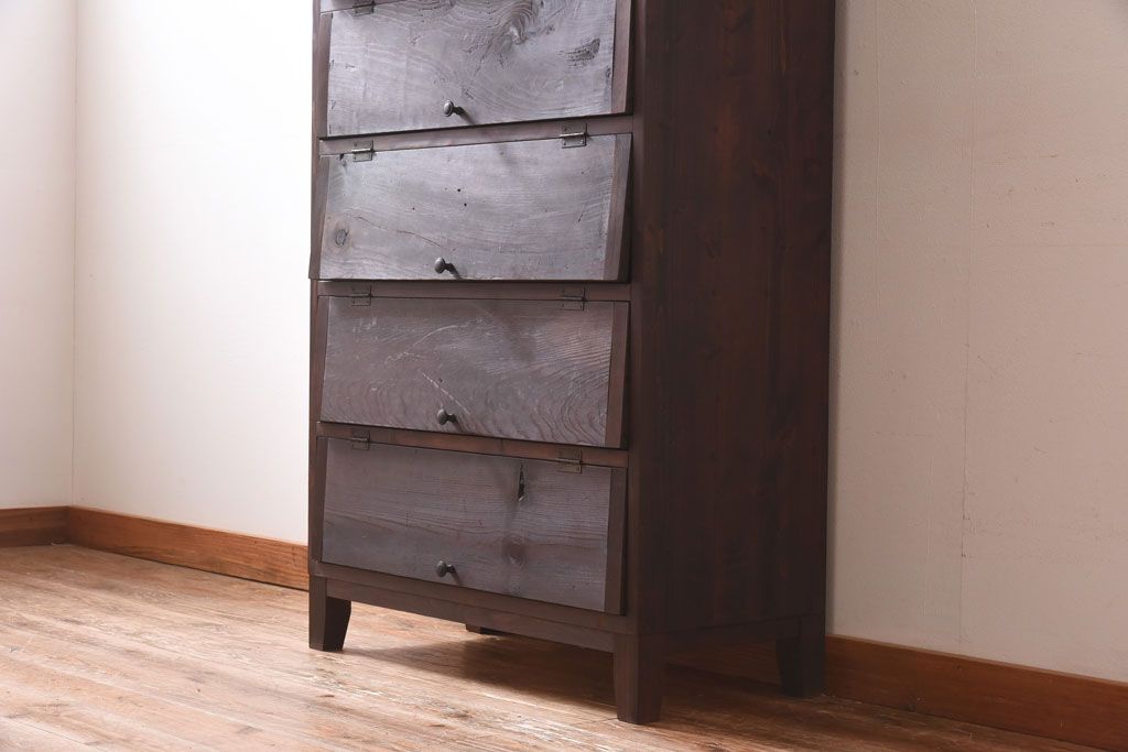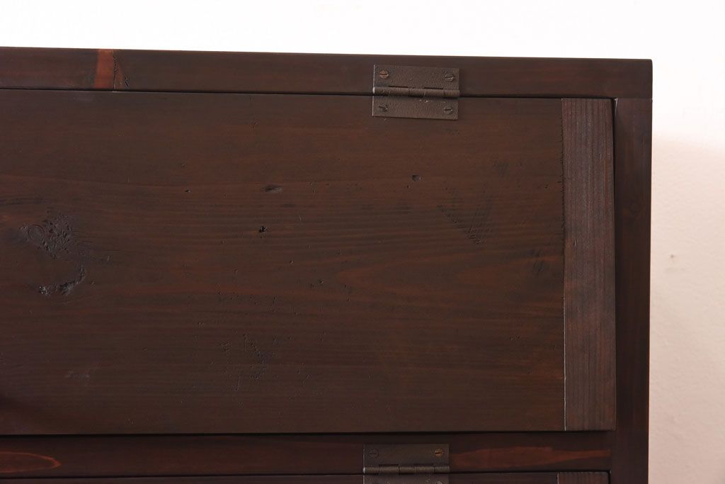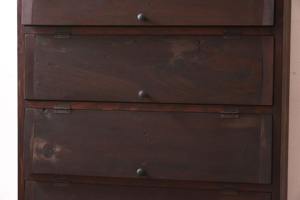 リメイク家具 前面松材 古材の風合いが味わい深いパタパタ扉の脚付きキャビネット(7段タイプ)(戸棚、下駄箱、収納棚)
