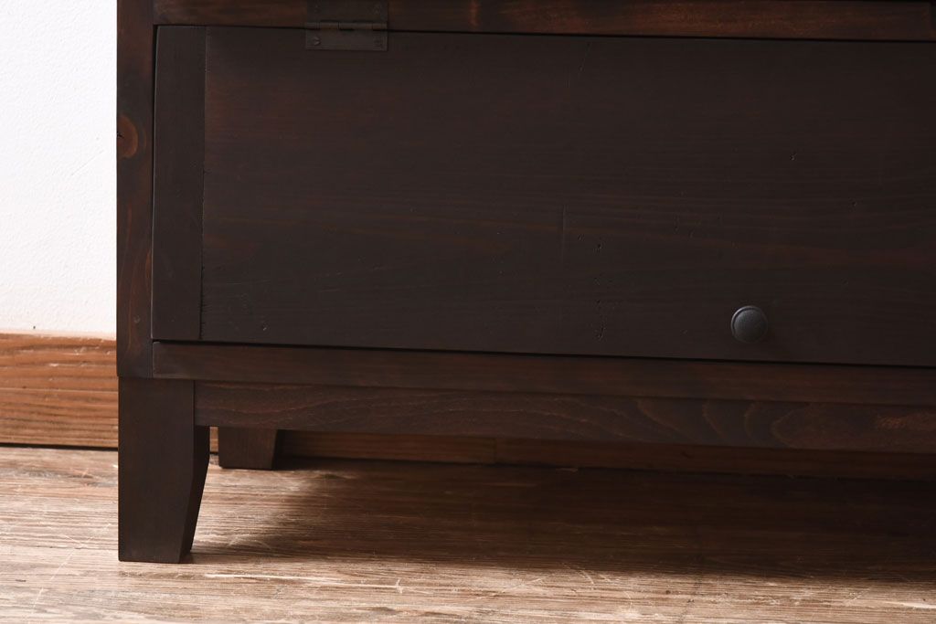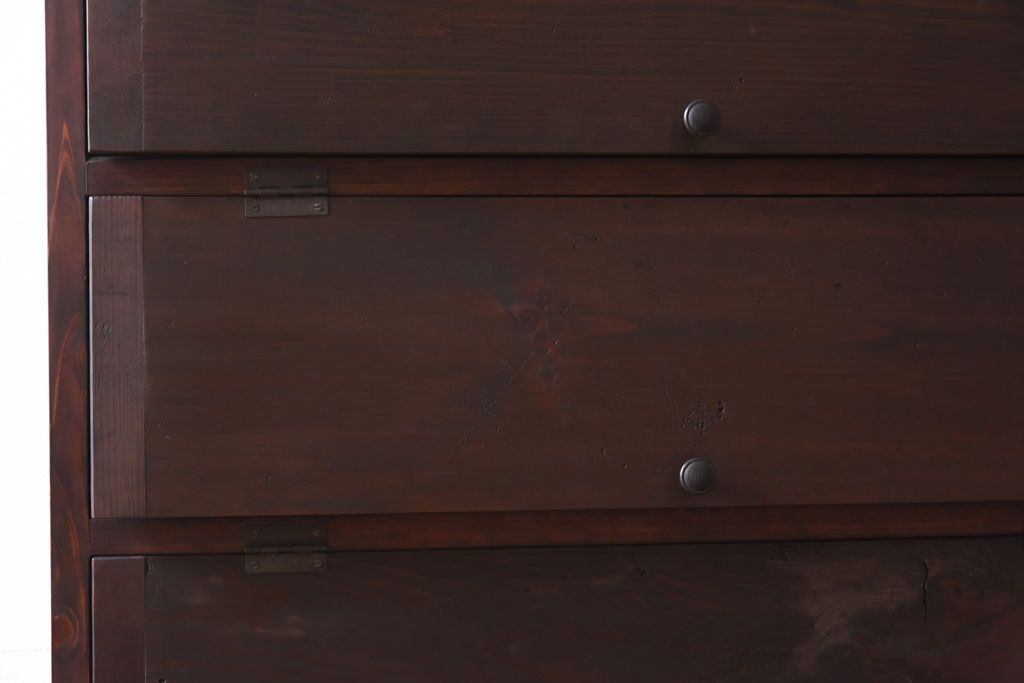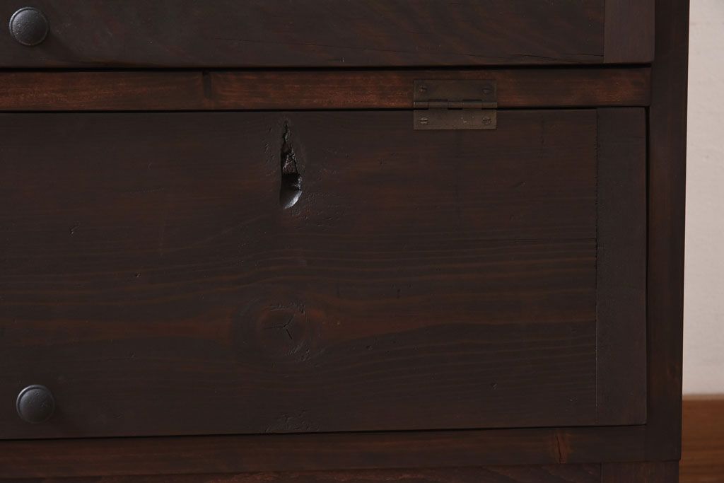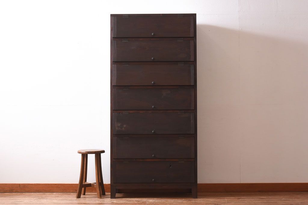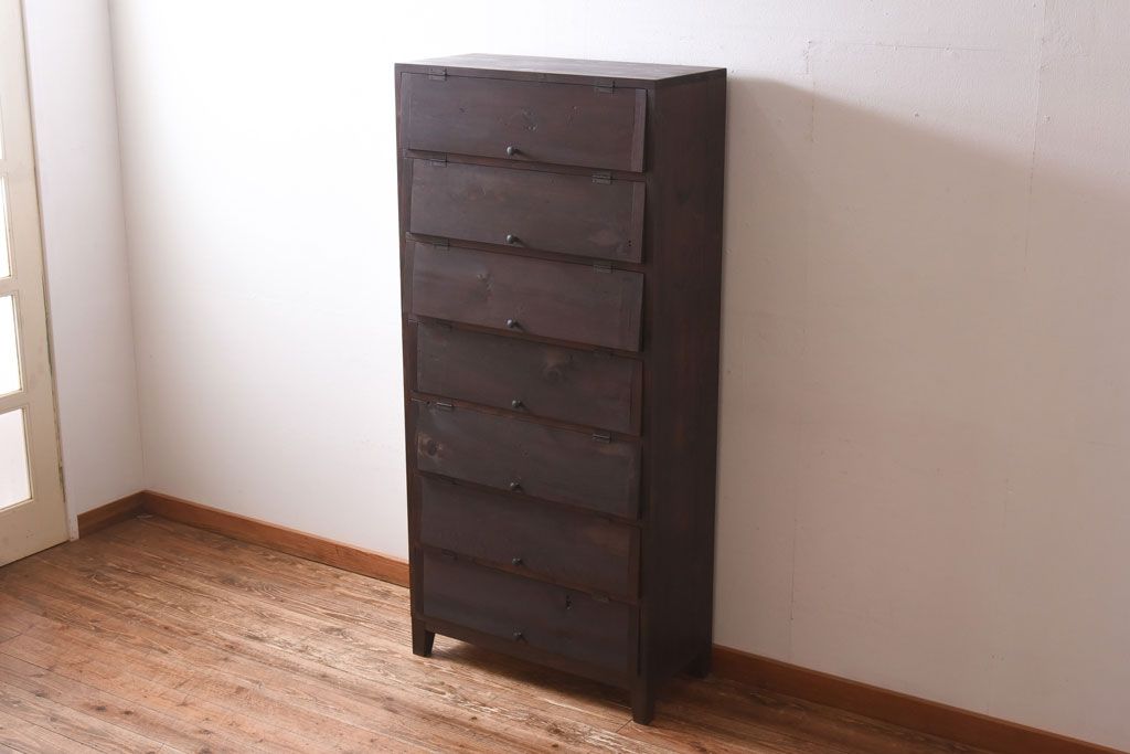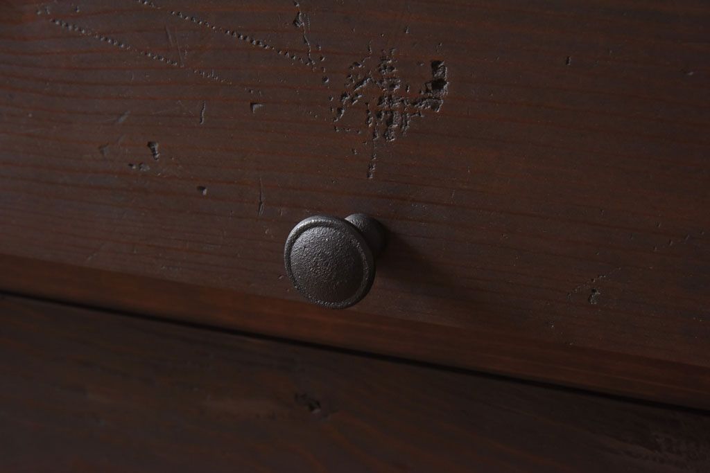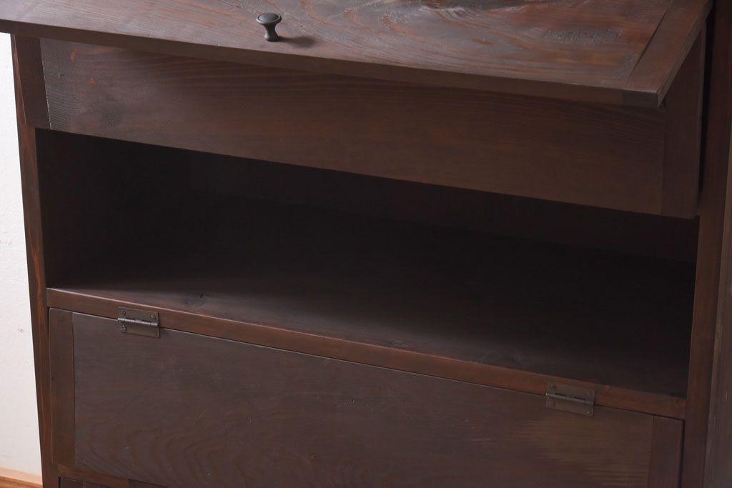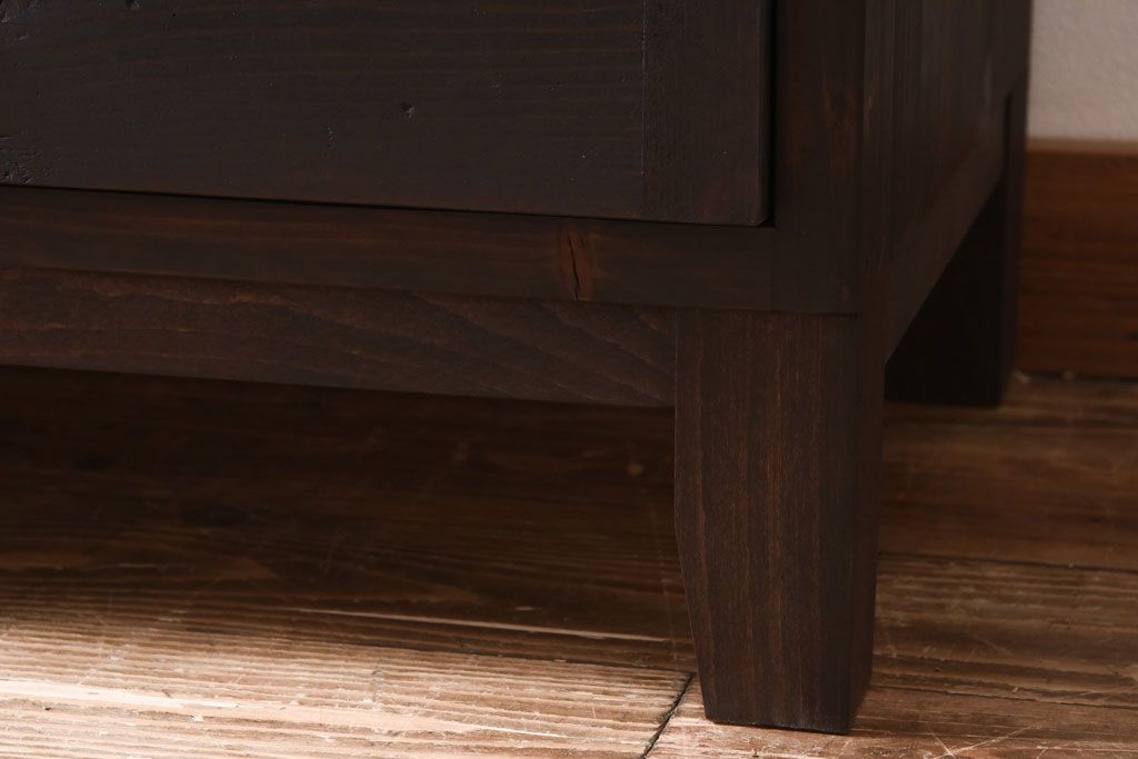 リメイク家具 前面松材 古材の風合いが味わい深いパタパタ扉の脚付きキャビネット(7段タイプ)(戸棚、下駄箱、収納棚)