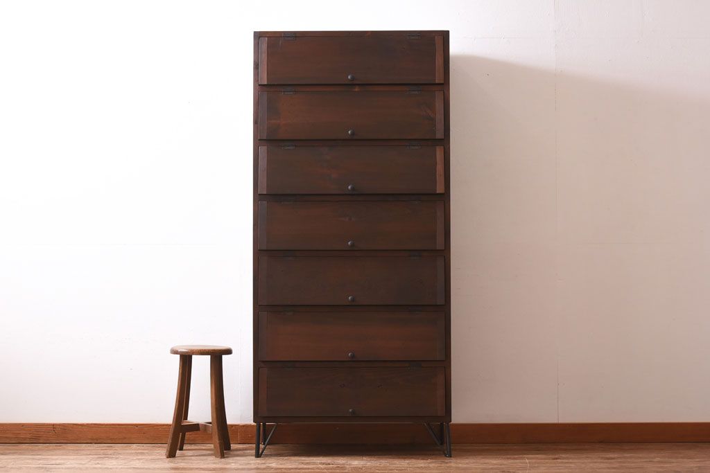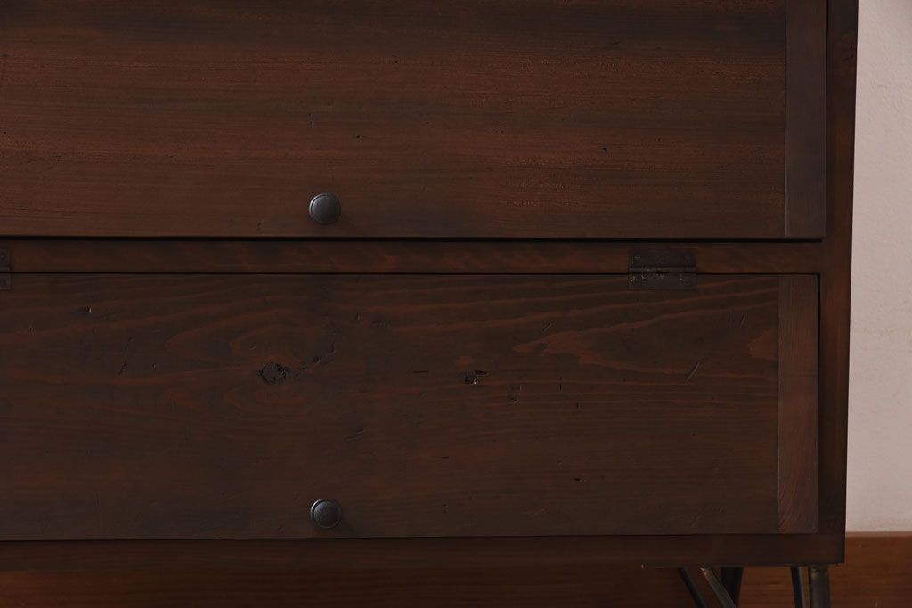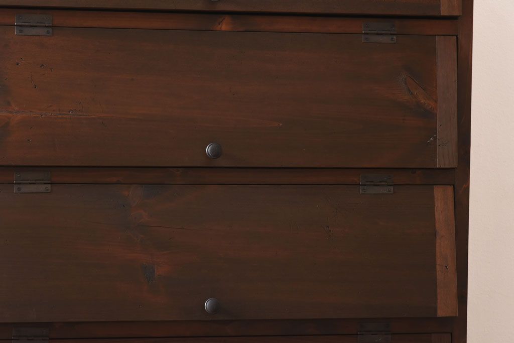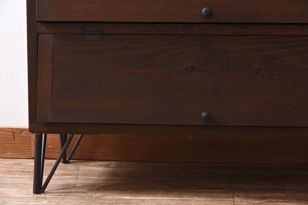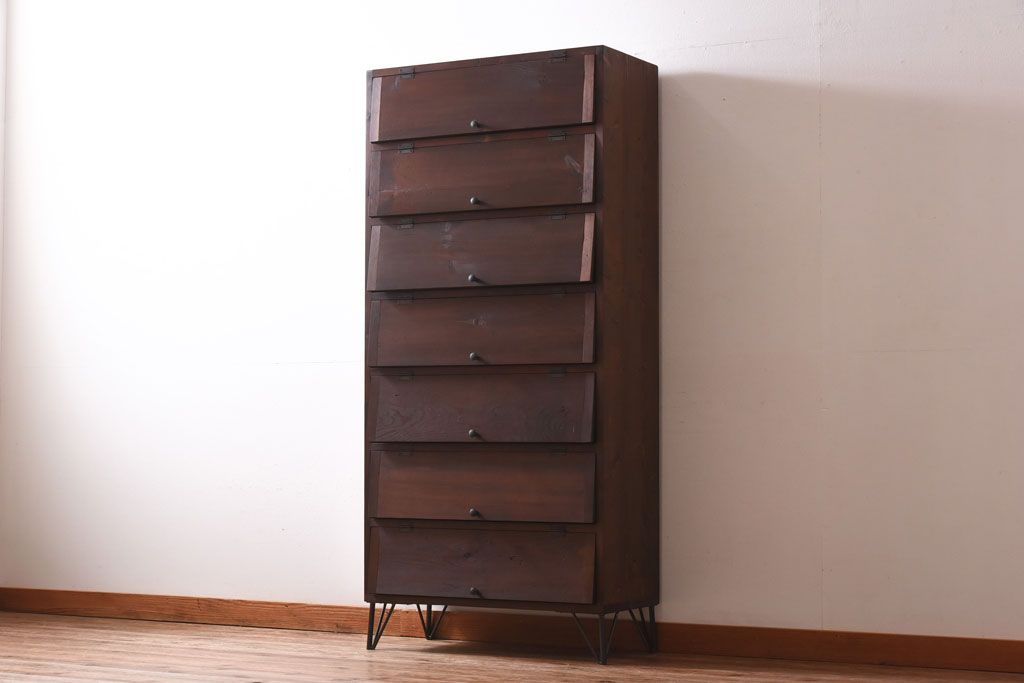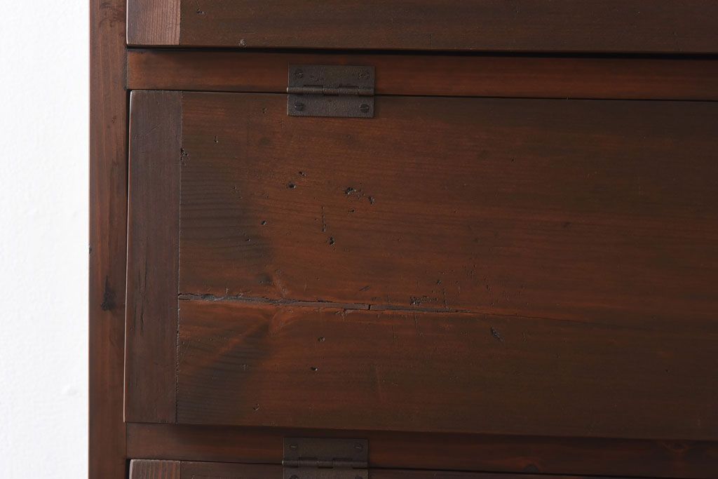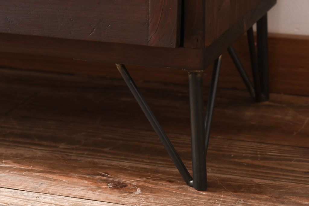 リメイク家具 前面松材 古材の風合いが味わい深いパタパタ扉の鉄脚付きキャビネット(7段タイプ)(戸棚、下駄箱、収納棚)