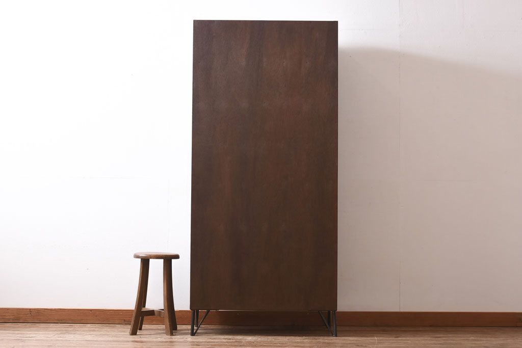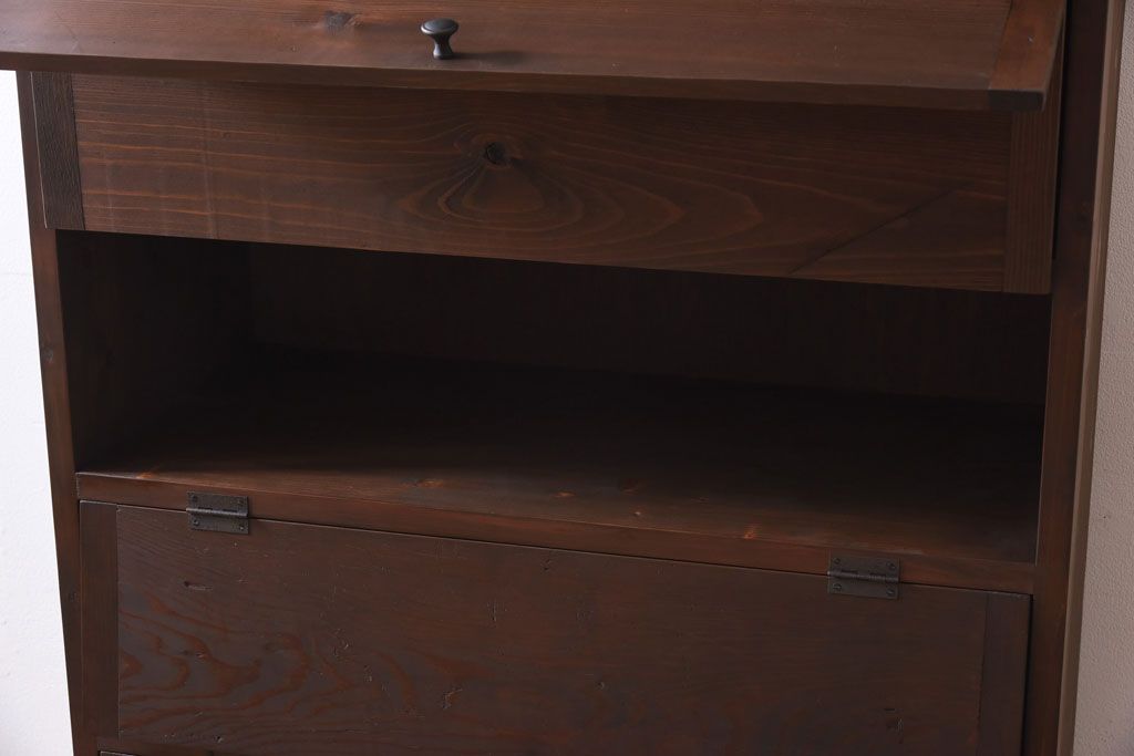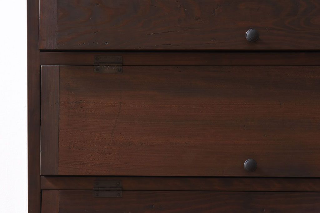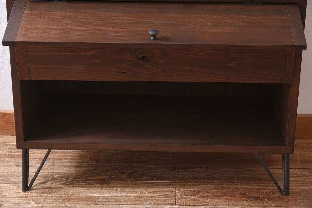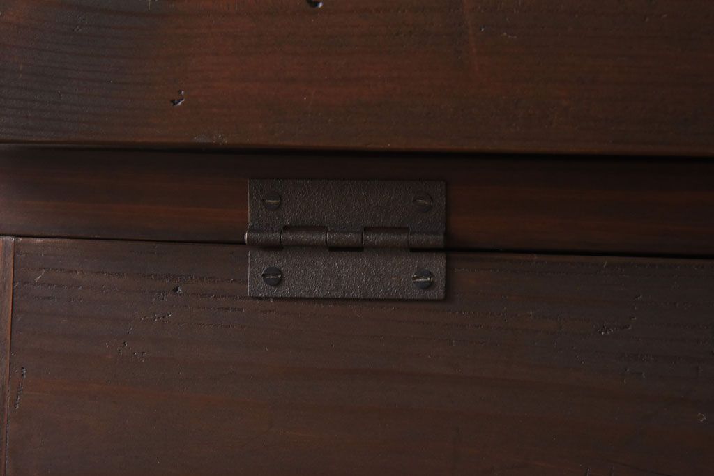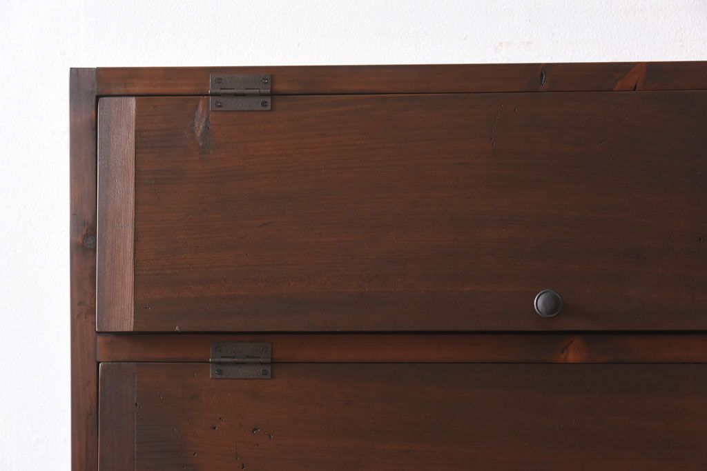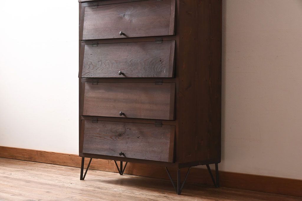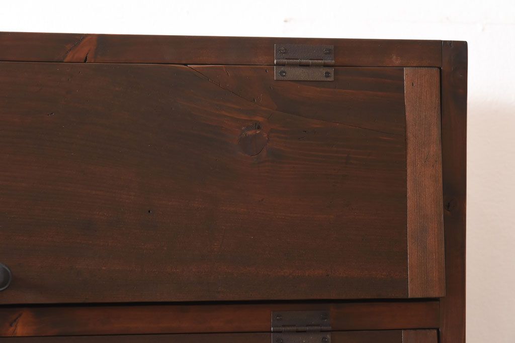 リメイク家具 前面松材 古材の風合いが味わい深いパタパタ扉の鉄脚付きキャビネット(7段タイプ)(戸棚、下駄箱、収納棚)