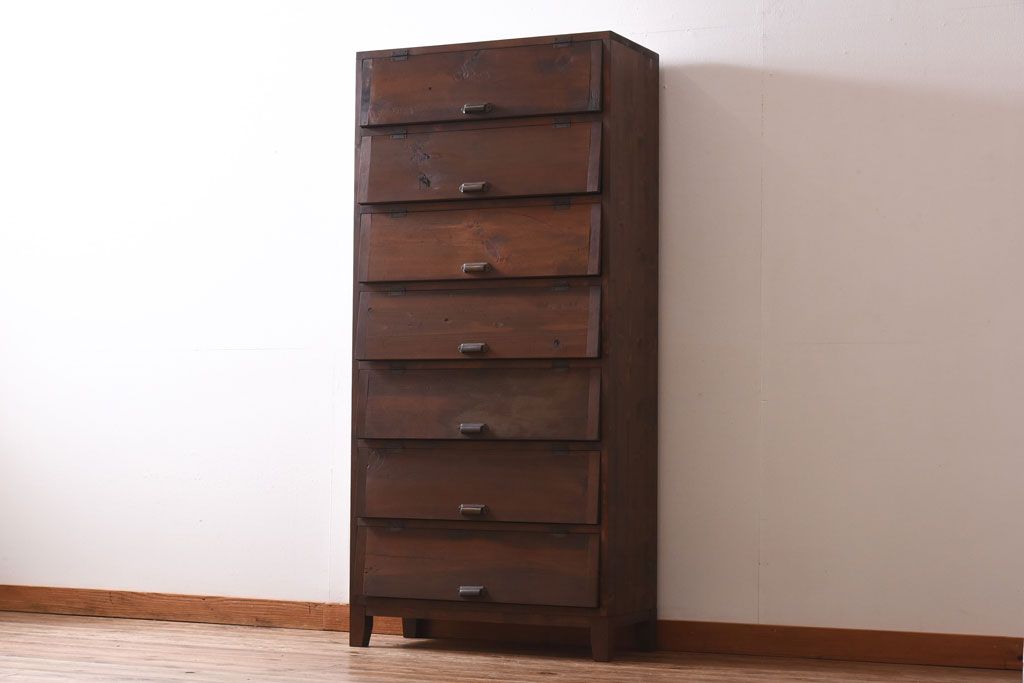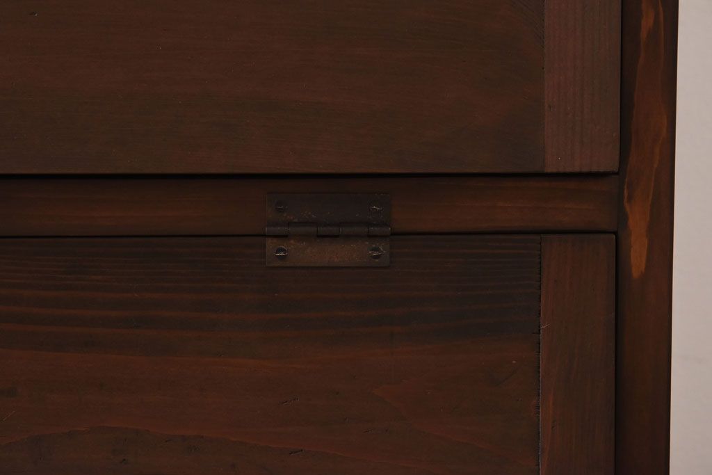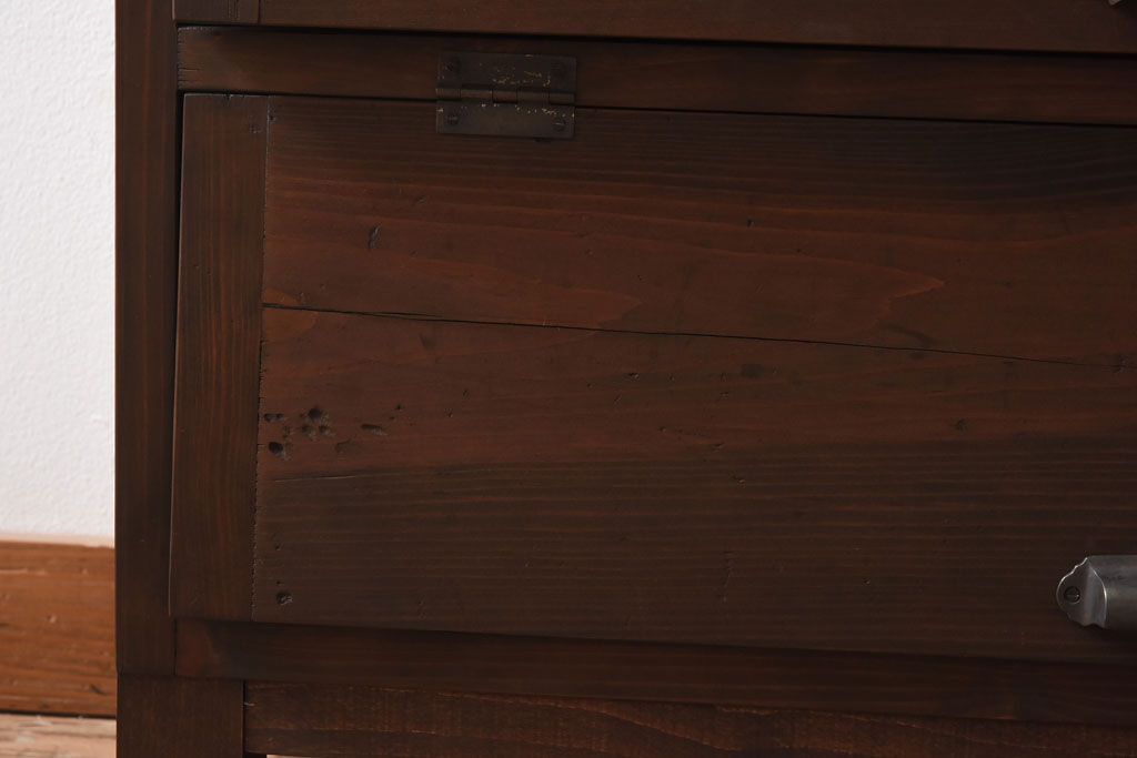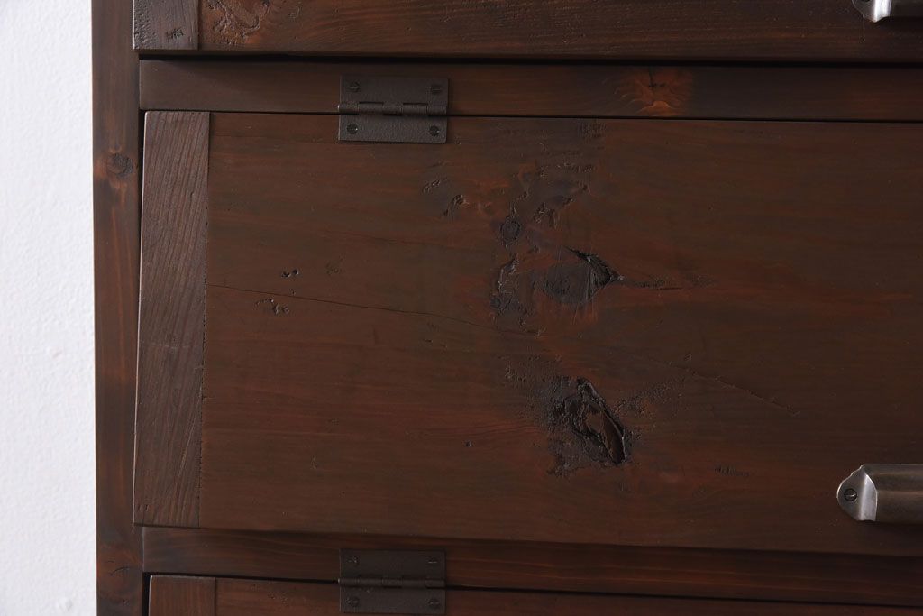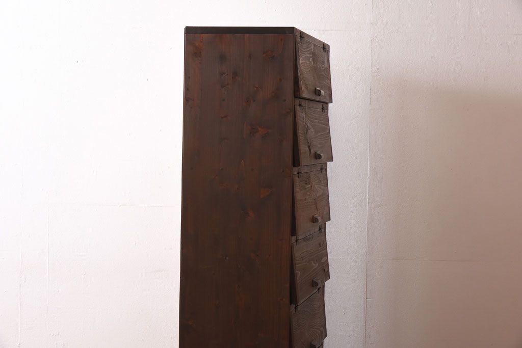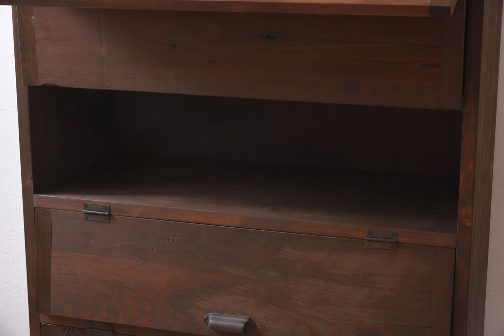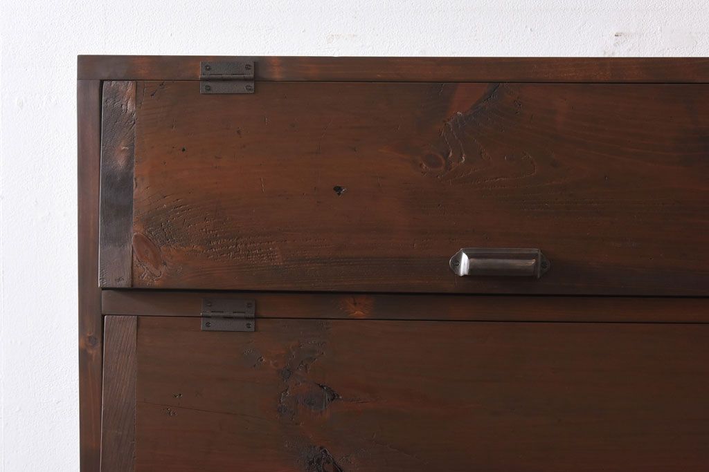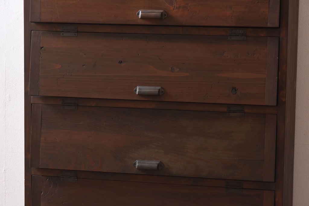 リメイク家具 前面松材 古材の風合いが味わい深いパタパタ扉の脚付きキャビネット(7段タイプ)(戸棚、下駄箱、収納棚)(1)