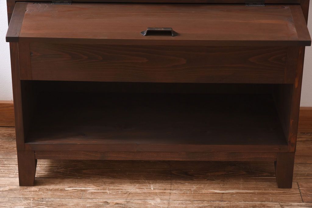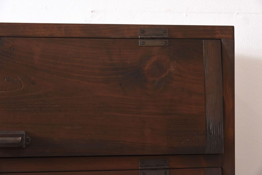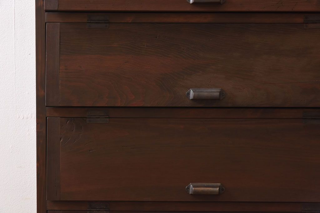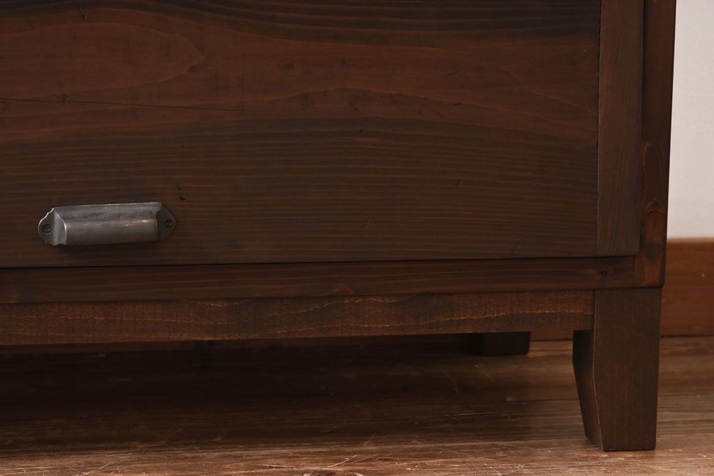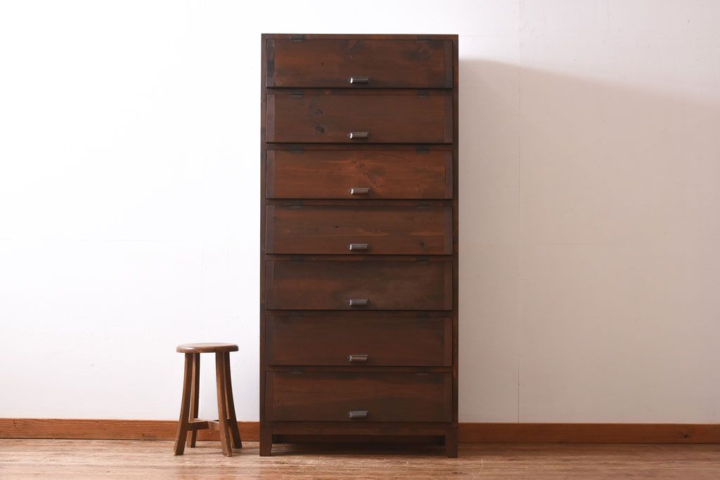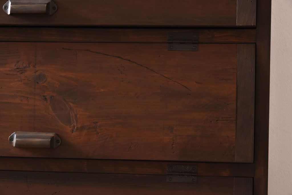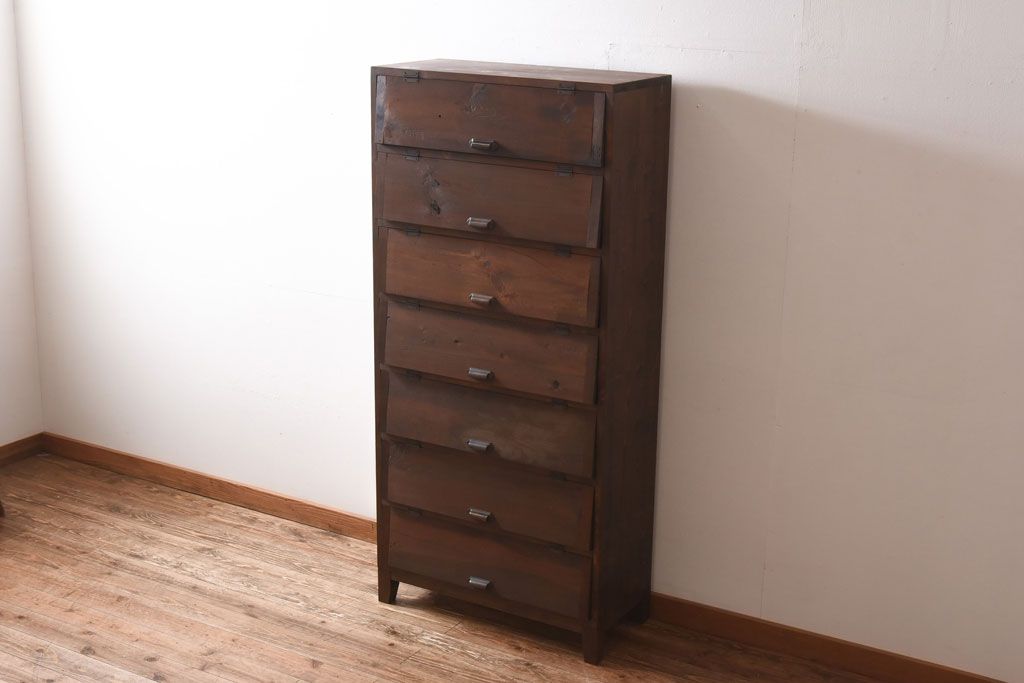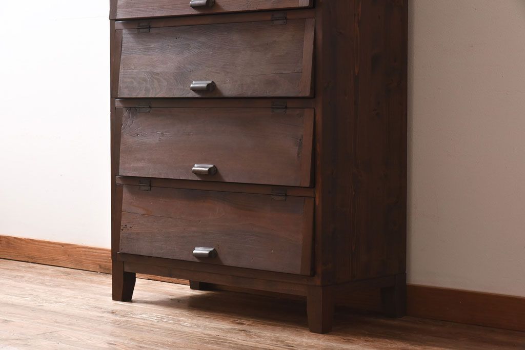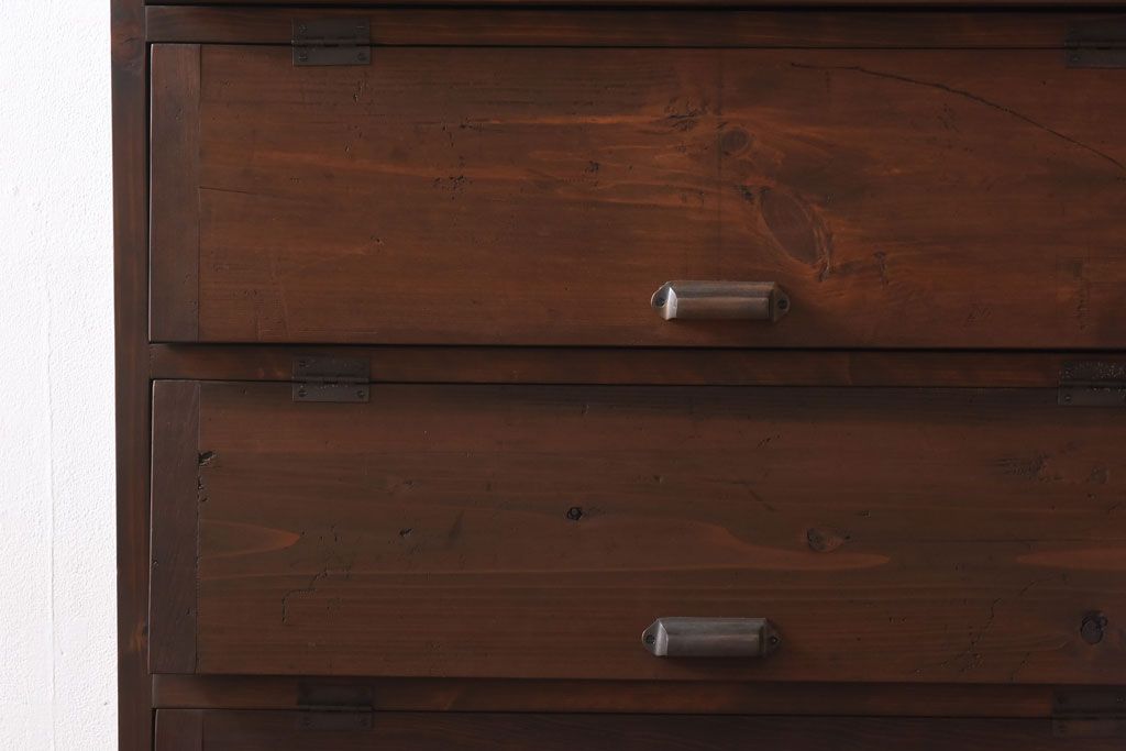 リメイク家具 前面松材 古材の風合いが味わい深いパタパタ扉の脚付きキャビネット(7段タイプ)(戸棚、下駄箱、収納棚)(1)